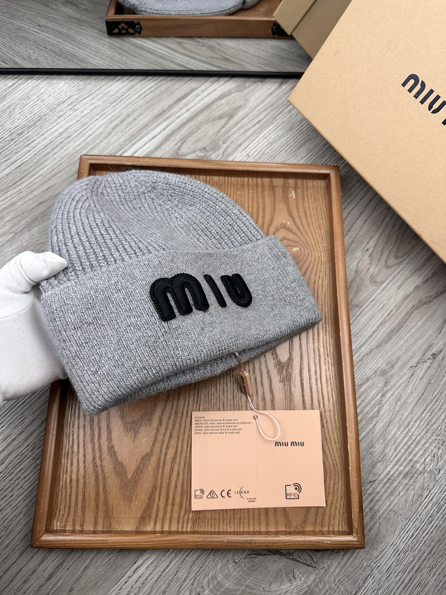 这款帽子是AAAAA 1:1 质量 (非常棒). 使用了和原版一模一样的材料. 商标部分也保持了和缪缪/Miu Miu一样. 图片拍摄是实物帽子拍摄, 您所收到的实物保证和我们图片一模一样.