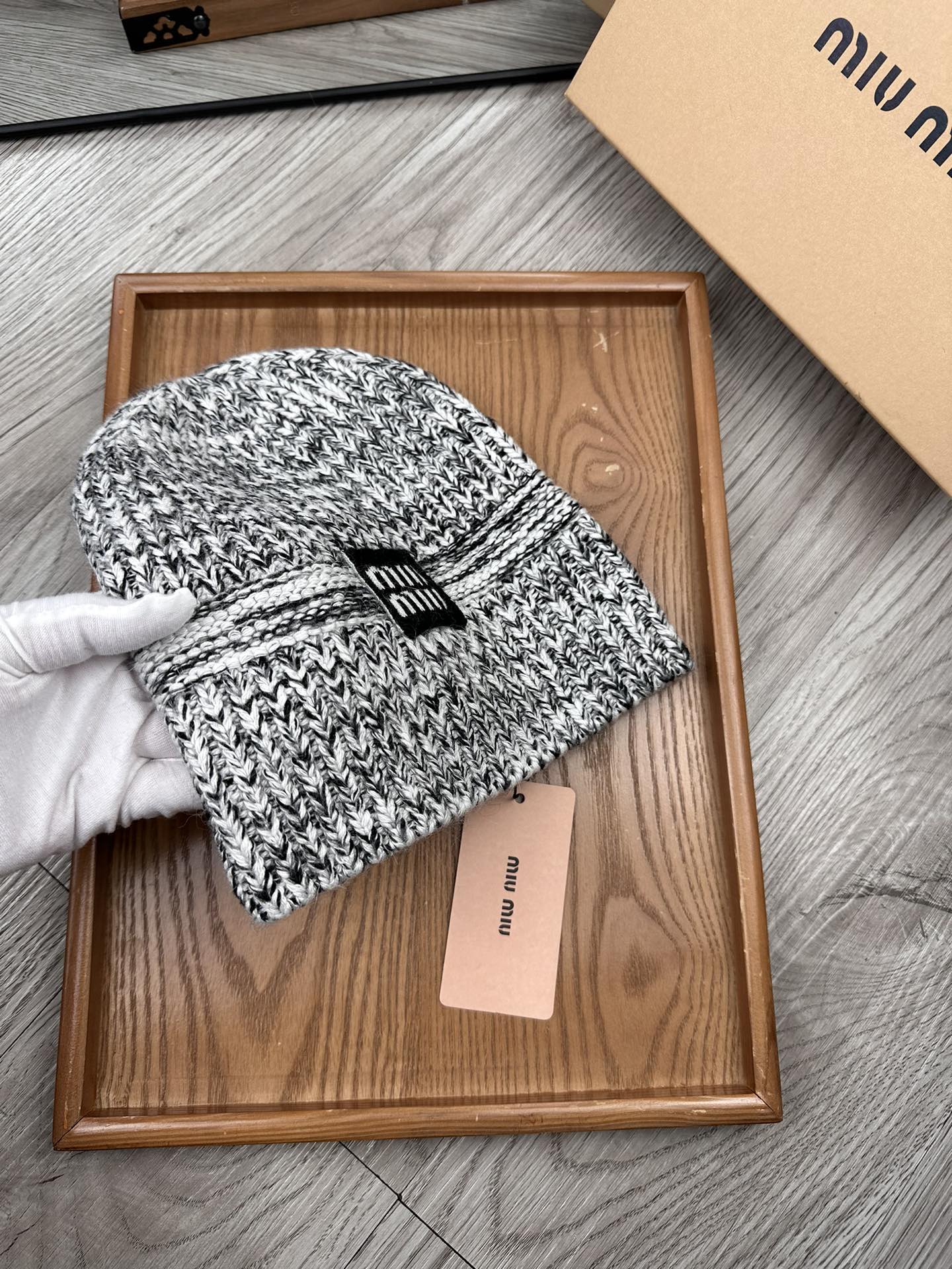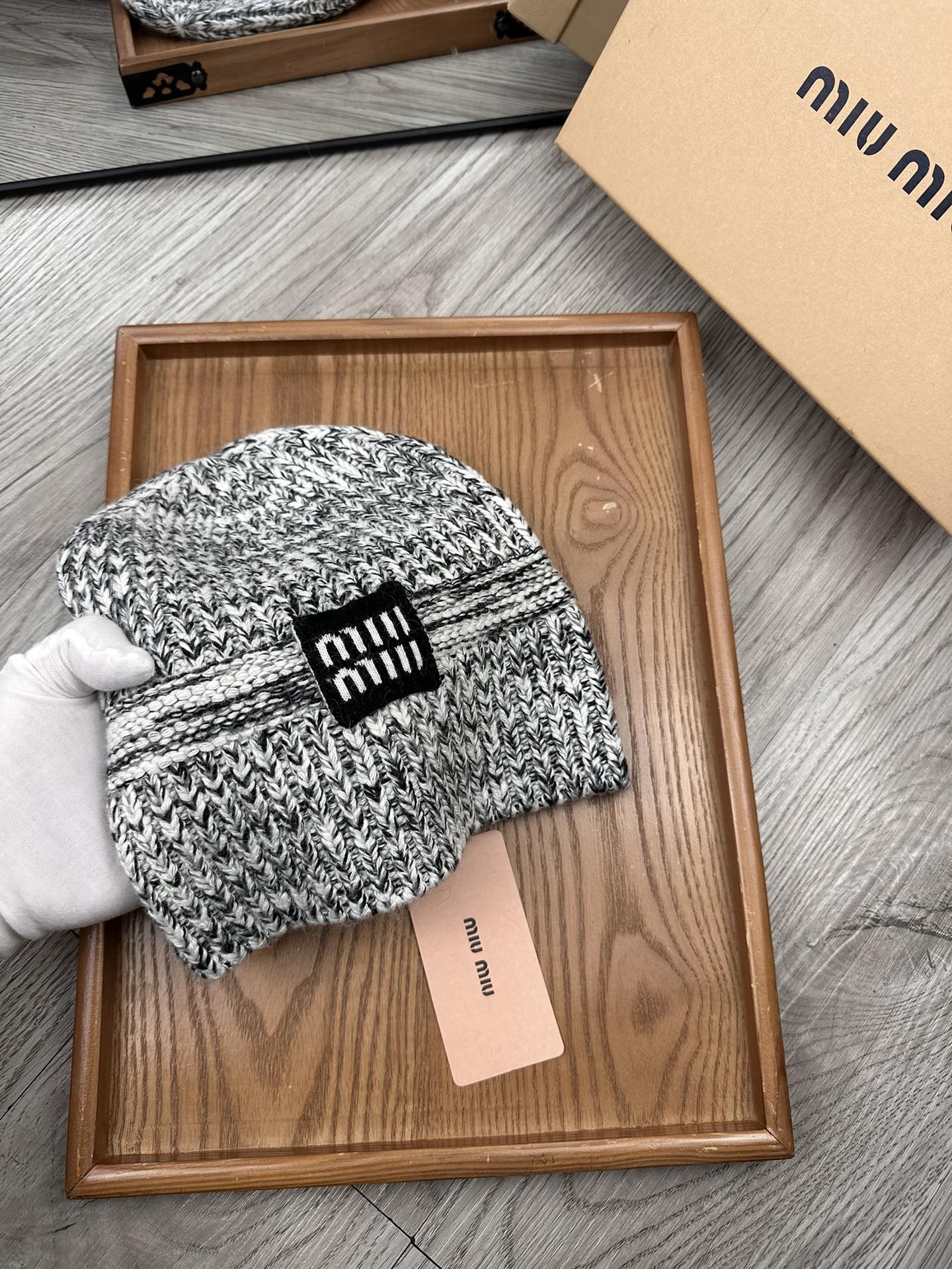 这款帽子是AAAAA 1:1 质量 (非常棒). 使用了和原版一模一样的材料. 商标部分也保持了和缪缪/Miu Miu一样. 图片拍摄是实物帽子拍摄, 您所收到的实物保证和我们图片一模一样.