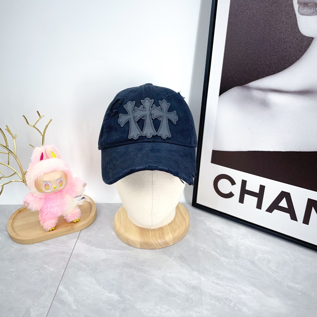 这款帽子是AAAAA 1:1 质量 (非常棒). 使用了和原版一模一样的材料. 商标部分也保持了和克罗心/Chrome Hearts一样. 图片拍摄是实物帽子拍摄, 您所收到的实物保证和我们图片一模一样.