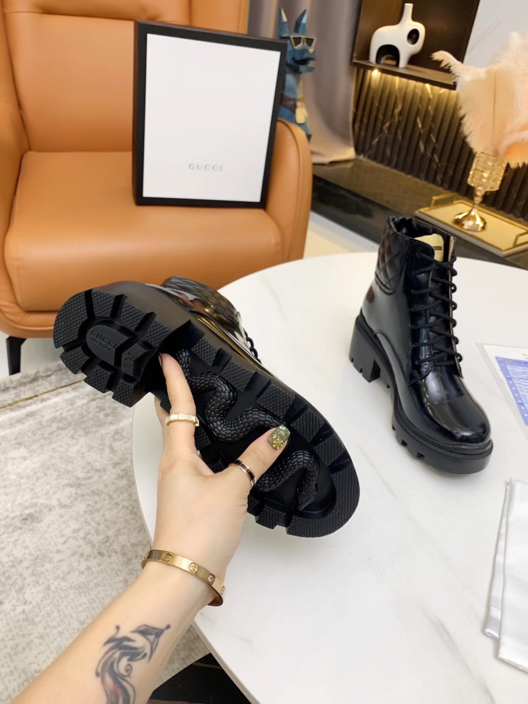 这款鞋子是AAAAA 1:1 质量 (非常棒). 使用了和原版一模一样的材料. 商标部分也保持了和古奇/Gucci一样. 图片拍摄是实物鞋子拍摄, 您所收到的实物保证和我们图片一模一样.