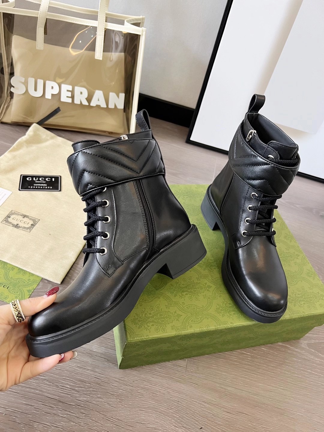 这款鞋子是AAAAA 1:1 质量 (非常棒). 使用了和原版一模一样的材料. 商标部分也保持了和古奇/Gucci一样. 图片拍摄是实物鞋子拍摄, 您所收到的实物保证和我们图片一模一样.