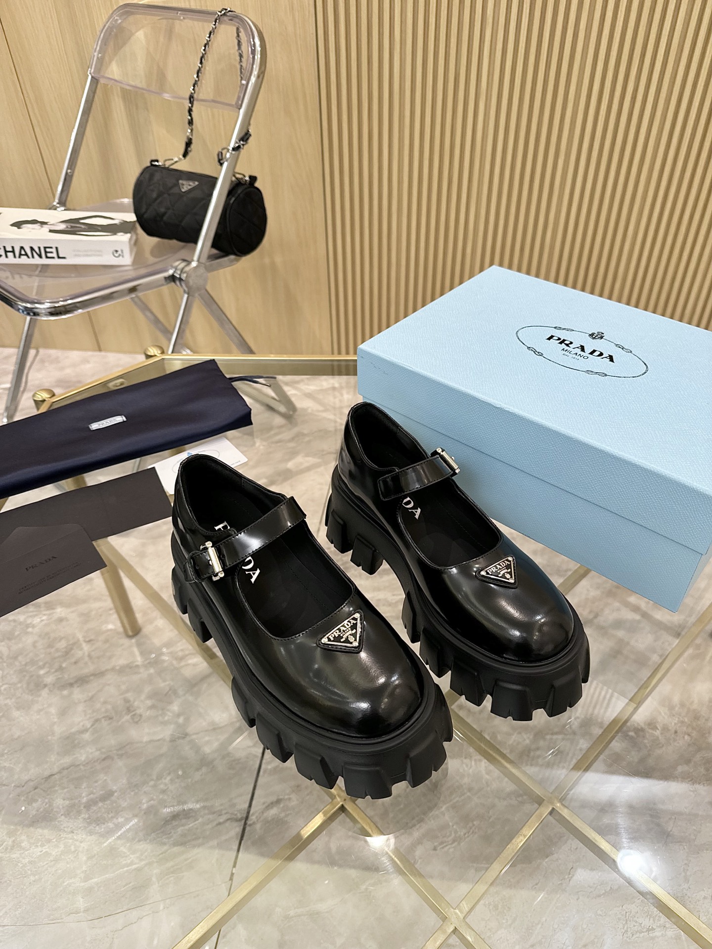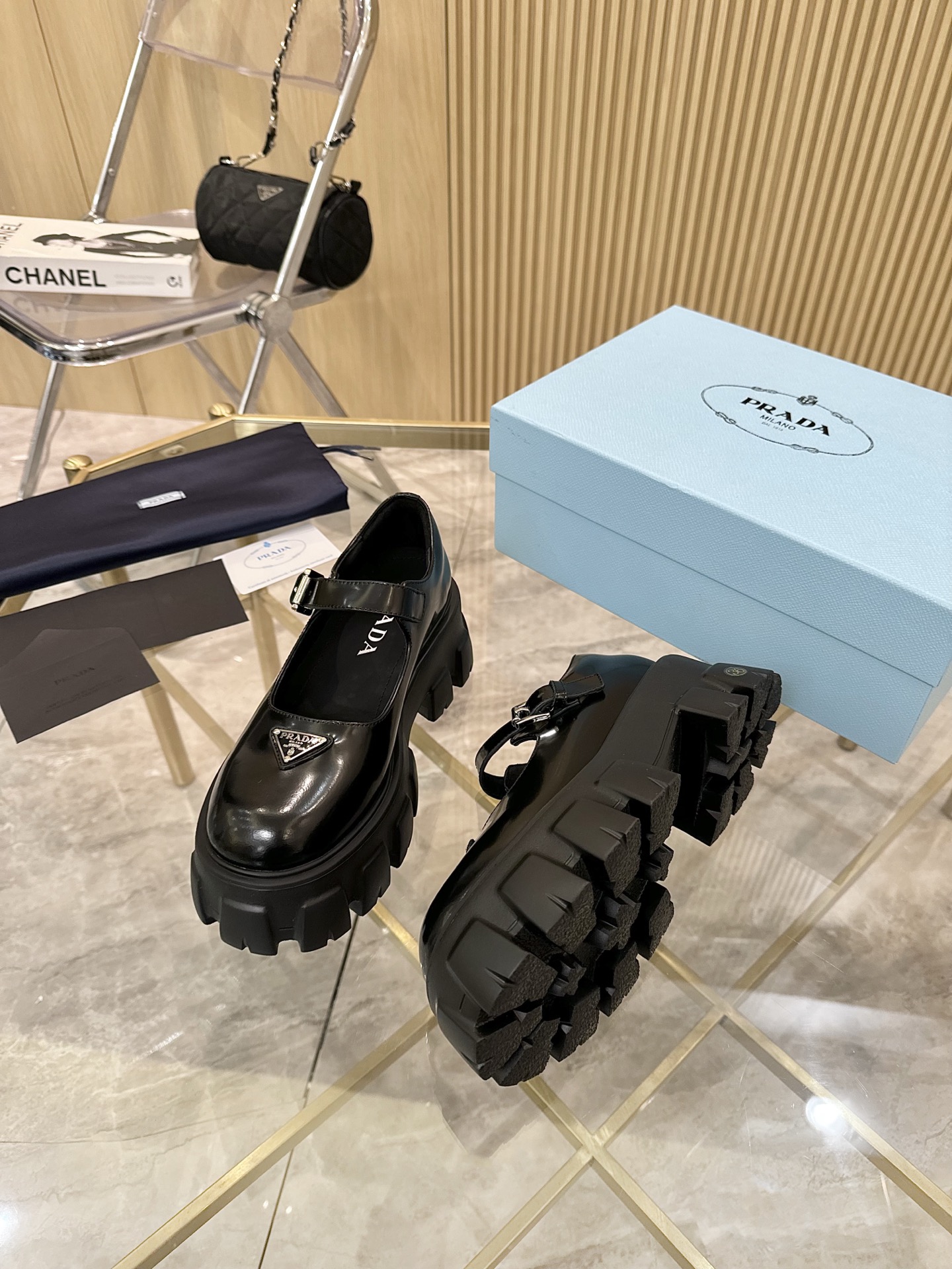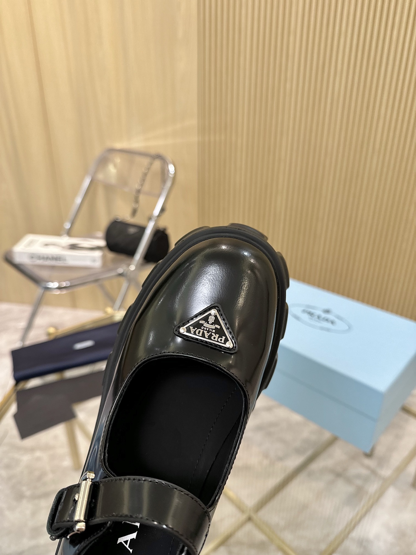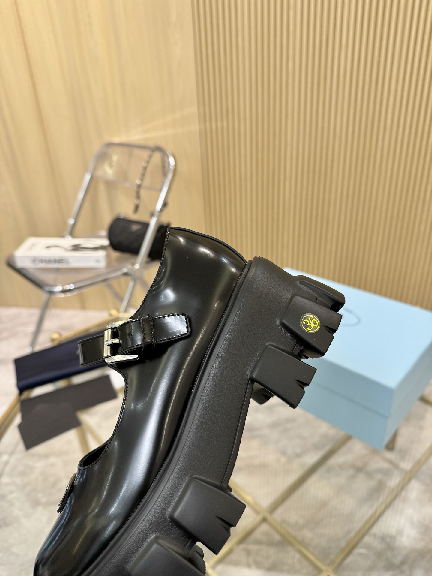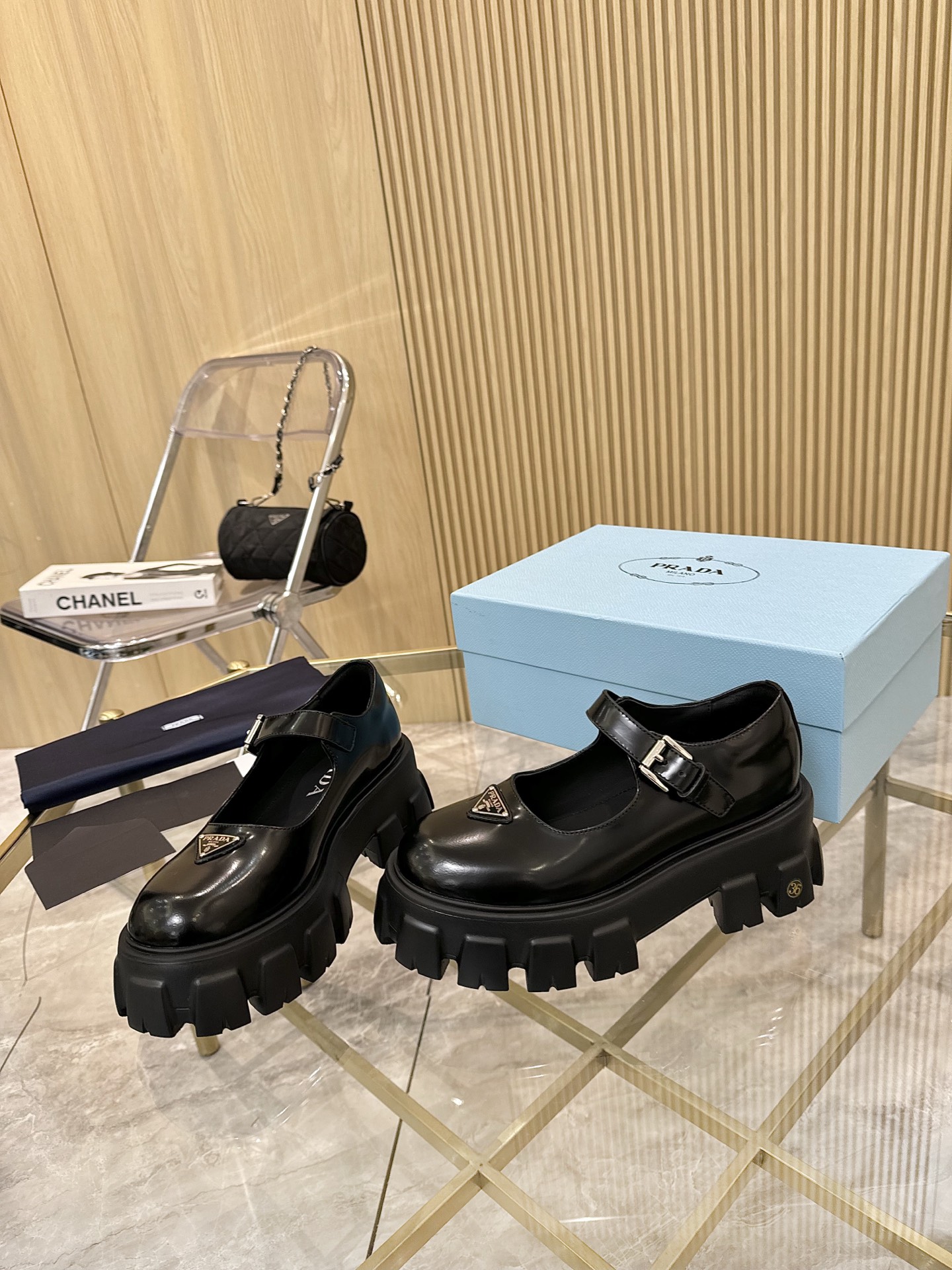 这款鞋子是AAAAA 1:1 质量 (非常棒). 使用了和原版一模一样的材料. 商标部分也保持了和普拉达/Prada一样. 图片拍摄是实物鞋子拍摄, 您所收到的实物保证和我们图片一模一样.
