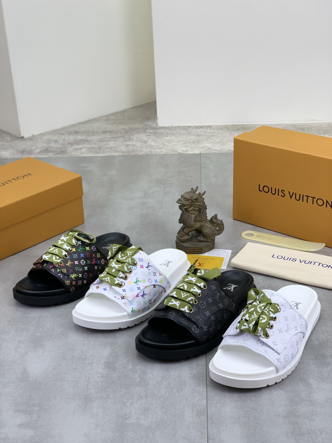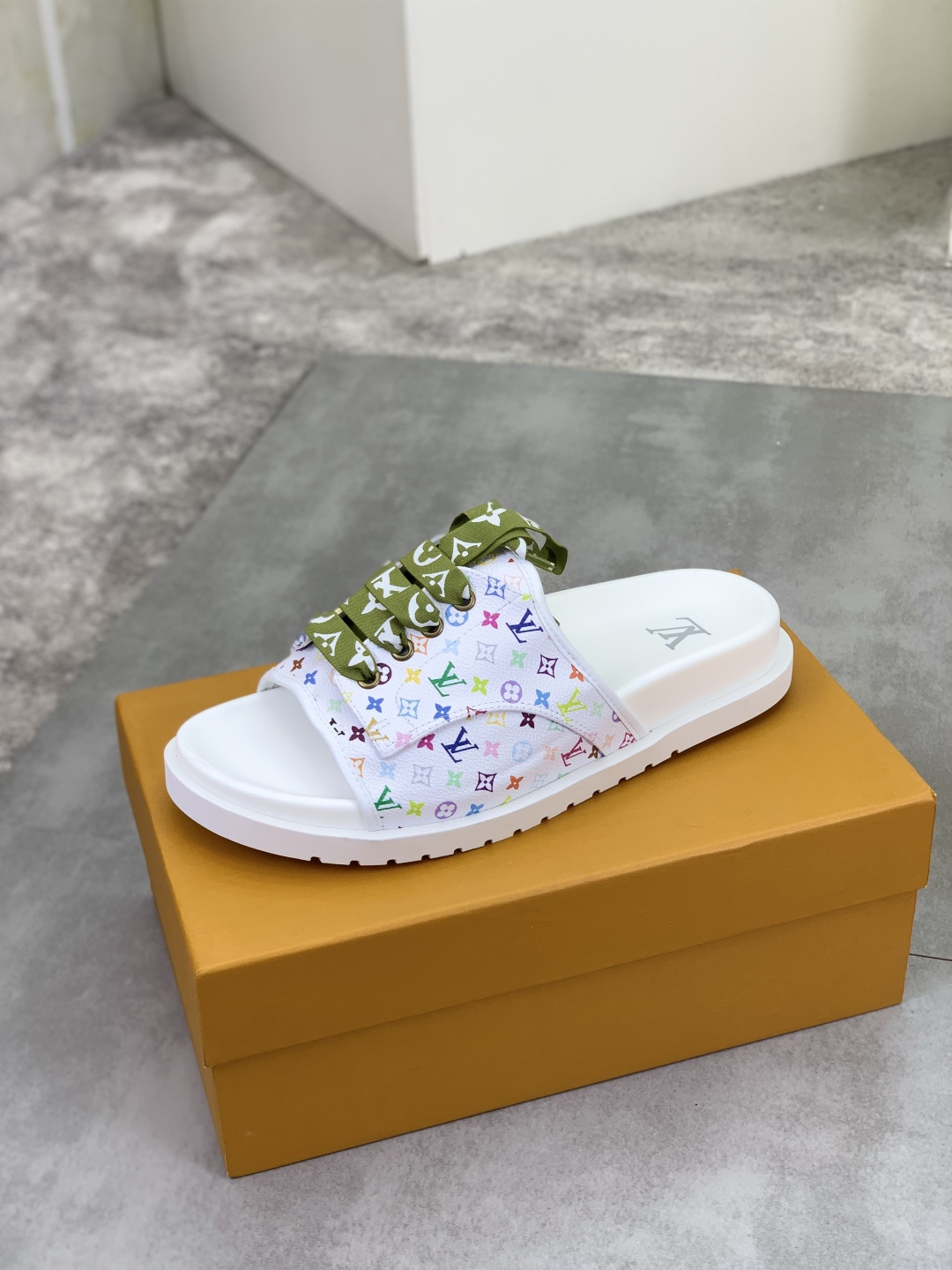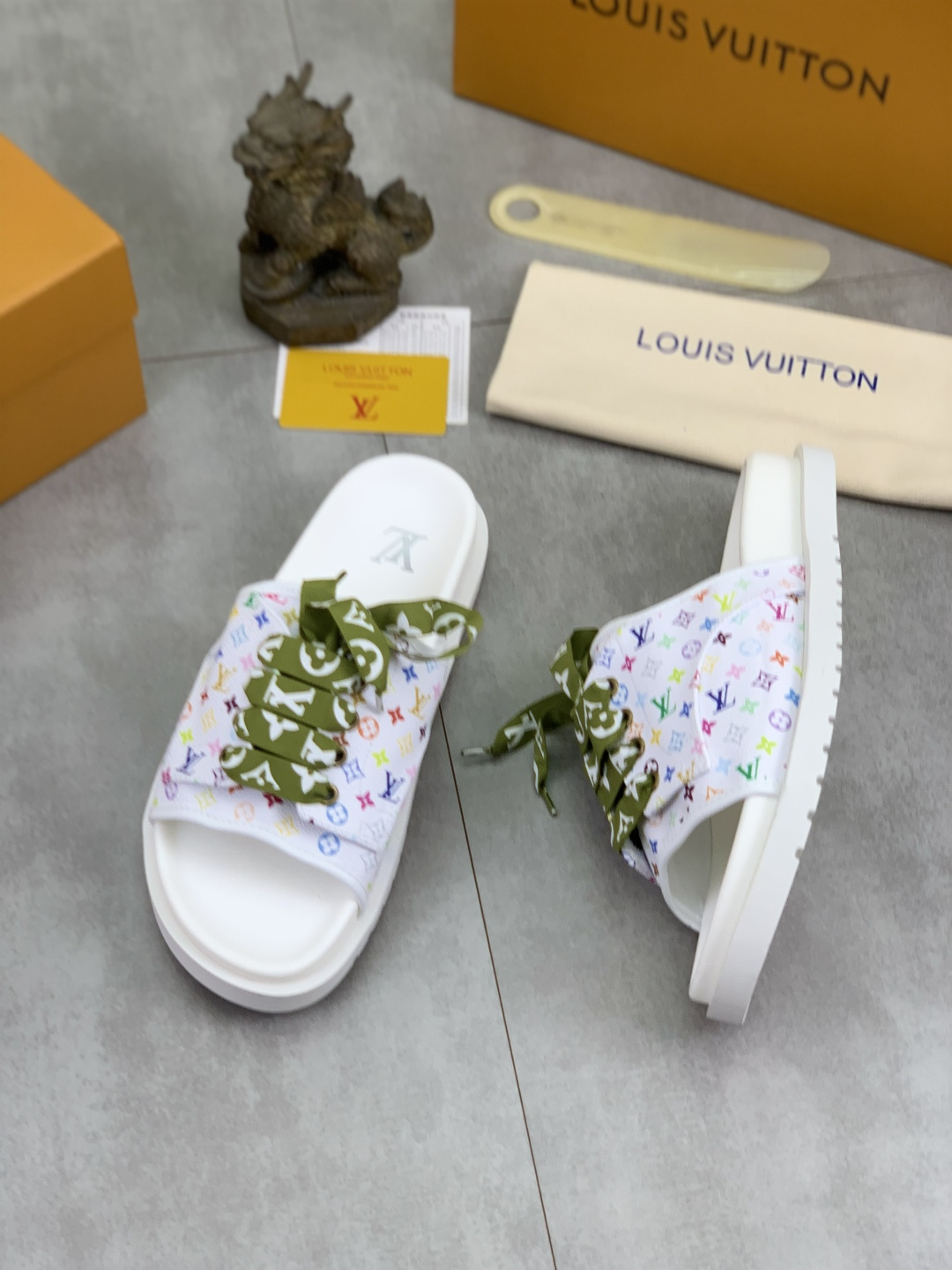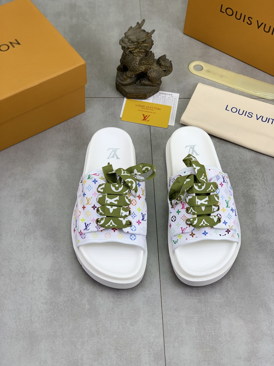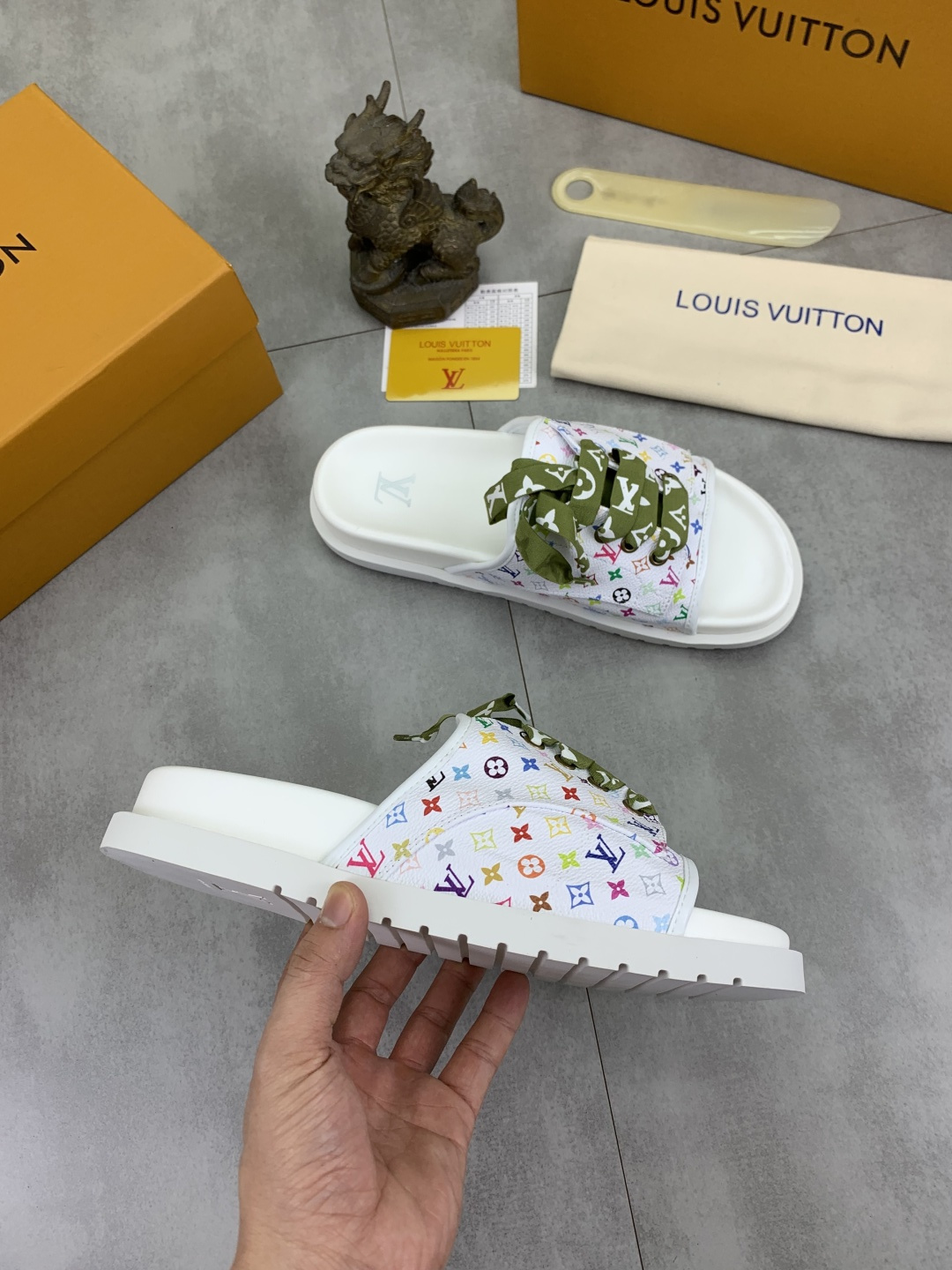 这款鞋子是AAAAA 1:1 质量 (非常棒). 使用了和原版一模一样的材料. 商标部分也保持了和路易威登/Louis Vuitton一样. 图片拍摄是实物鞋子拍摄, 您所收到的实物保证和我们图片一模一样.