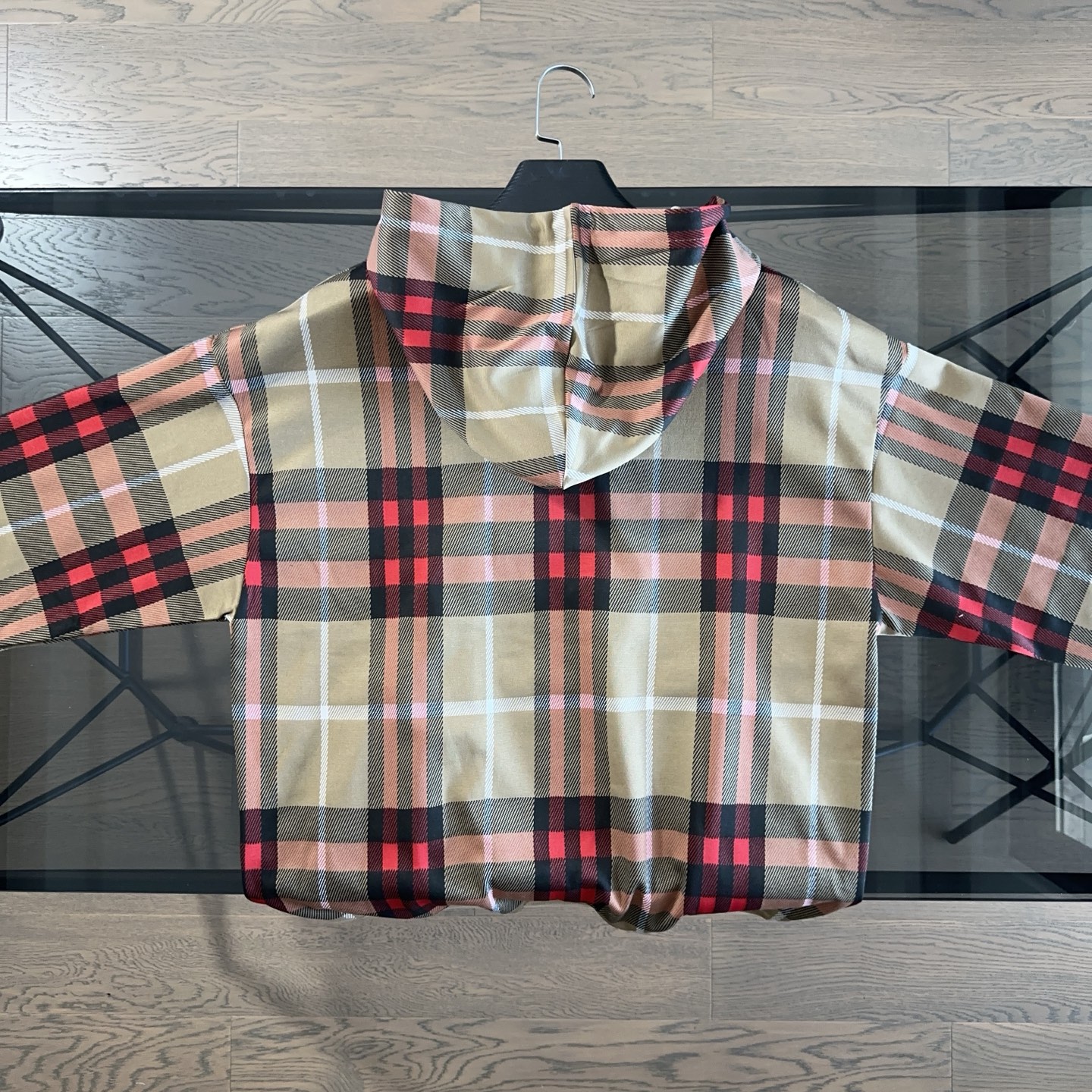 这款衣服是AAAAA 1:1 质量 (非常棒). 使用了和原版一模一样的材料. 商标部分也保持了和巴宝莉/Burberry一样. 图片拍摄是实物衣服拍摄, 您所收到的实物保证和我们图片一模一样.