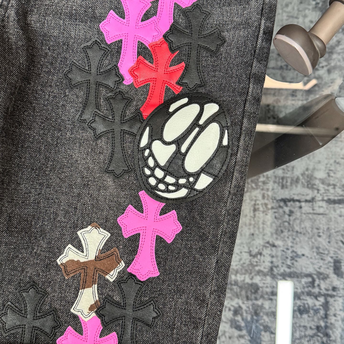 这款衣服是AAAAA 1:1 质量 (非常棒). 使用了和原版一模一样的材料. 商标部分也保持了和克罗心/Chrome Hearts一样. 图片拍摄是实物衣服拍摄, 您所收到的实物保证和我们图片一模一样.