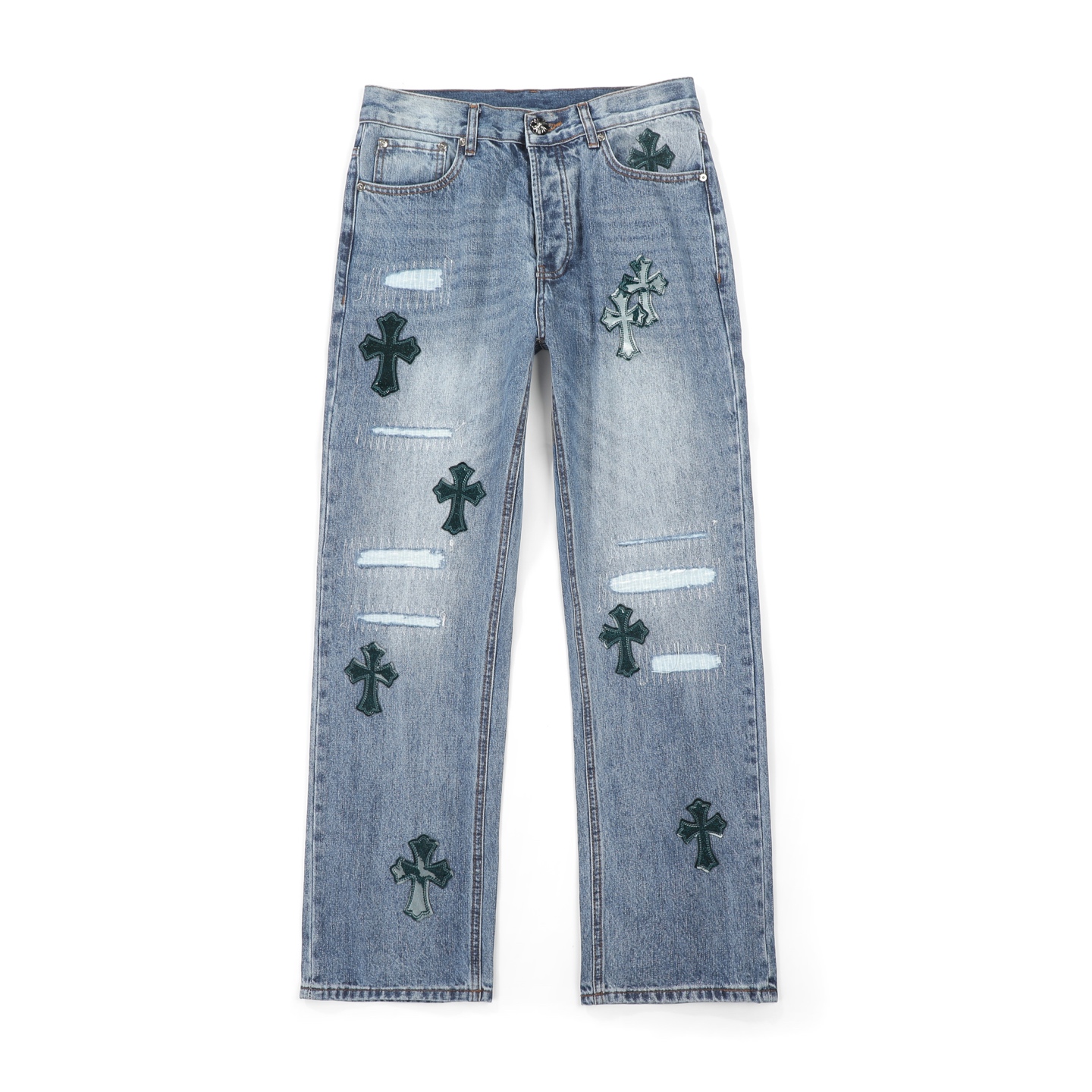 这款衣服是AAAAA 1:1 质量 (非常棒). 使用了和原版一模一样的材料. 商标部分也保持了和克罗心/Chrome Hearts一样. 图片拍摄是实物衣服拍摄, 您所收到的实物保证和我们图片一模一样.