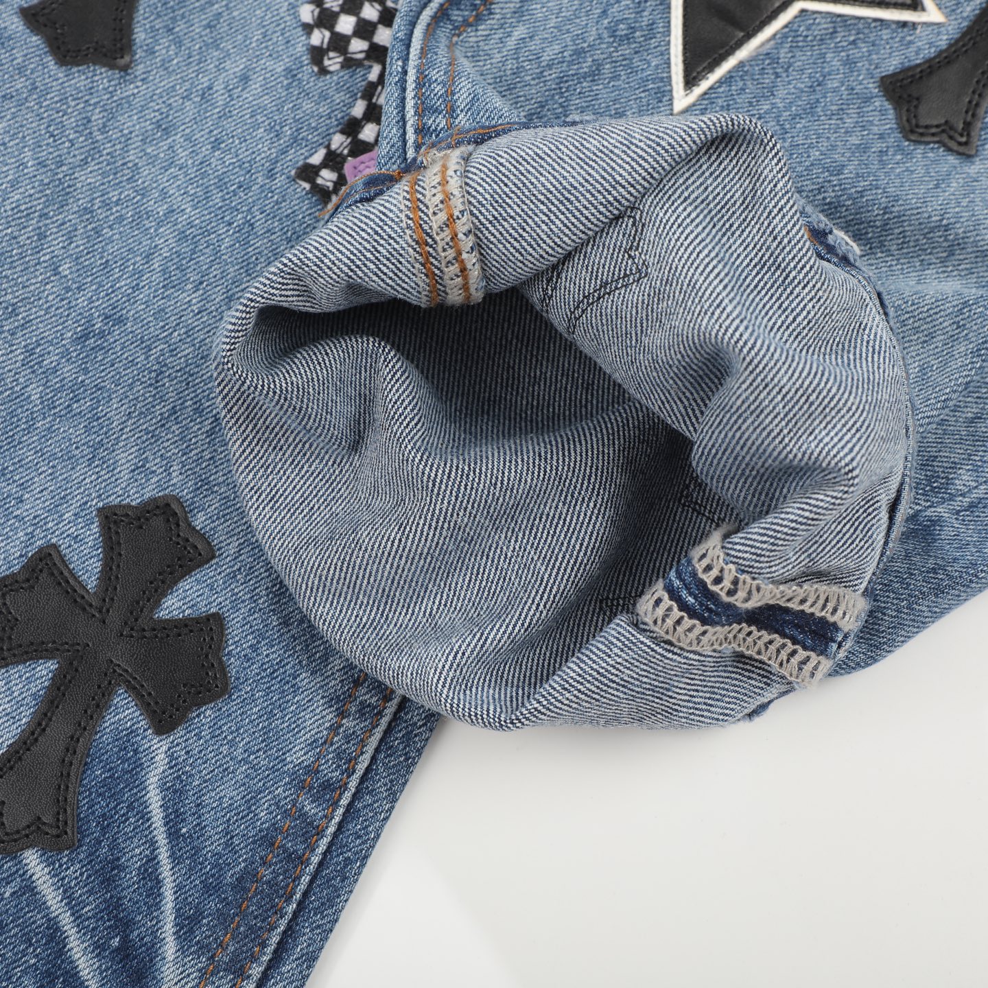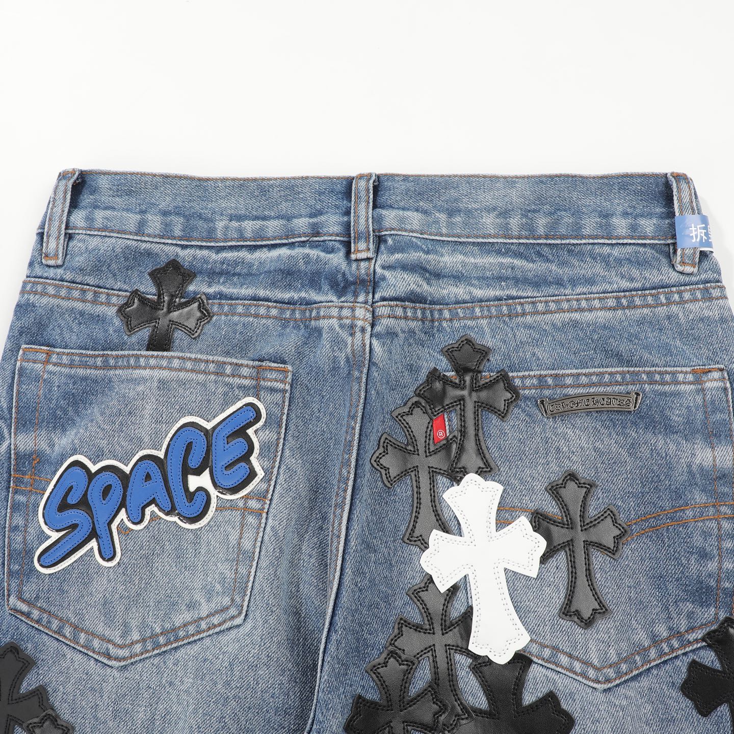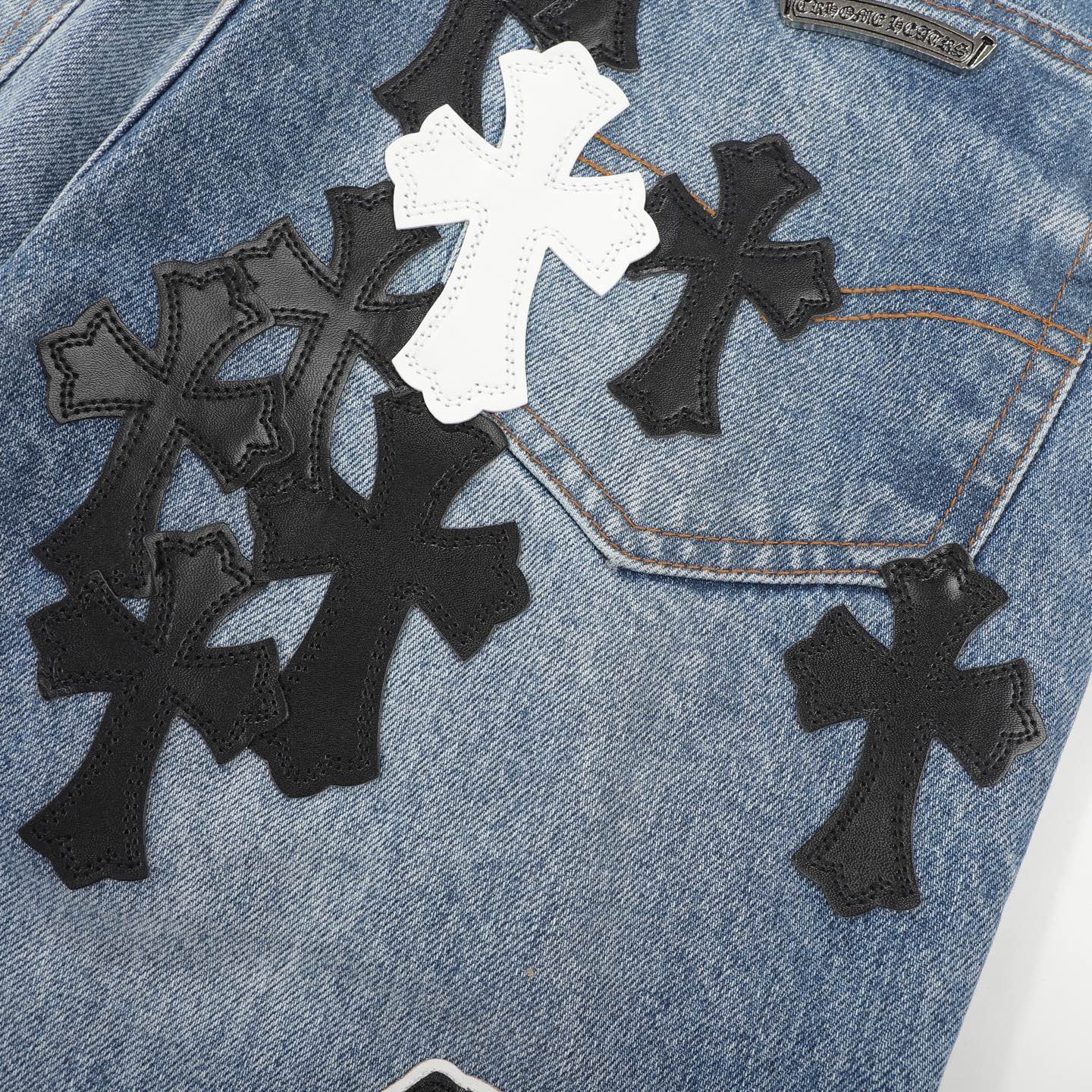 这款衣服是AAAAA 1:1 质量 (非常棒). 使用了和原版一模一样的材料. 商标部分也保持了和克罗心/Chrome Hearts一样. 图片拍摄是实物衣服拍摄, 您所收到的实物保证和我们图片一模一样.