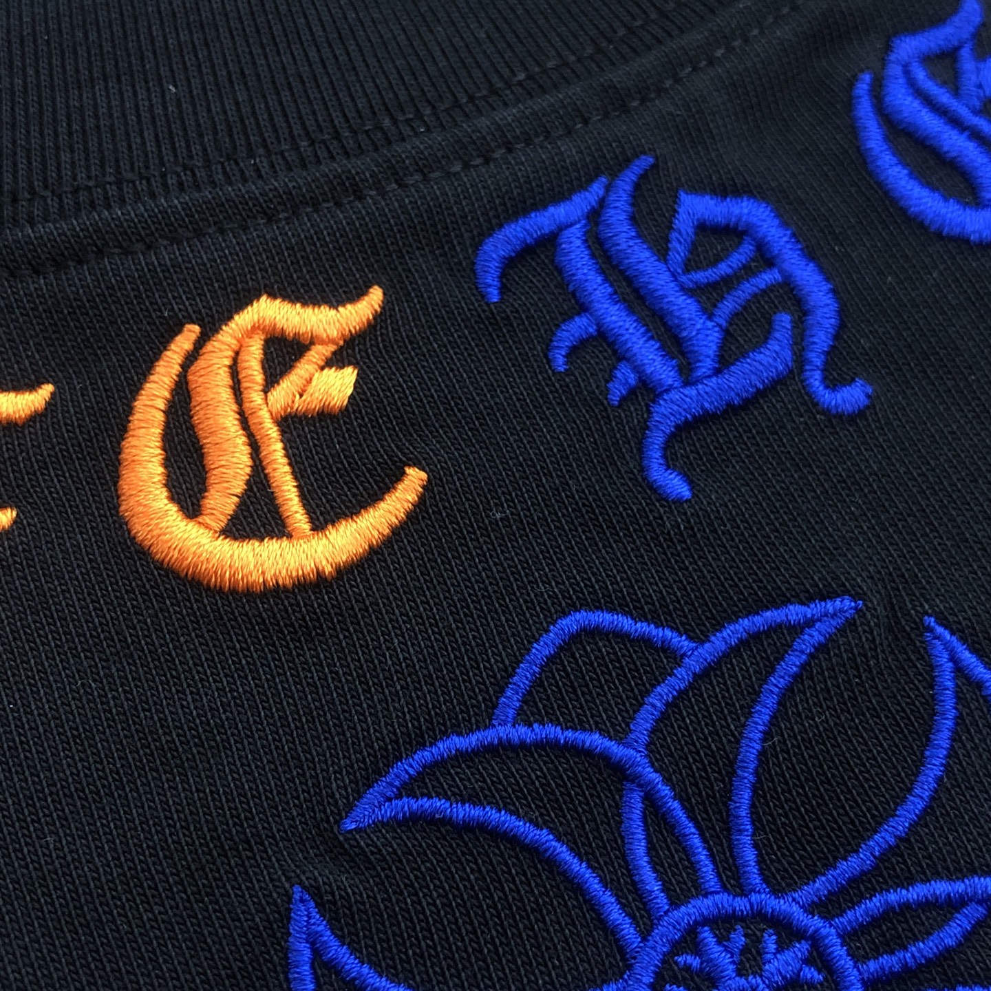 这款衣服是AAAAA 1:1 质量 (非常棒). 使用了和原版一模一样的材料. 商标部分也保持了和克罗心/Chrome Hearts一样. 图片拍摄是实物衣服拍摄, 您所收到的实物保证和我们图片一模一样.
