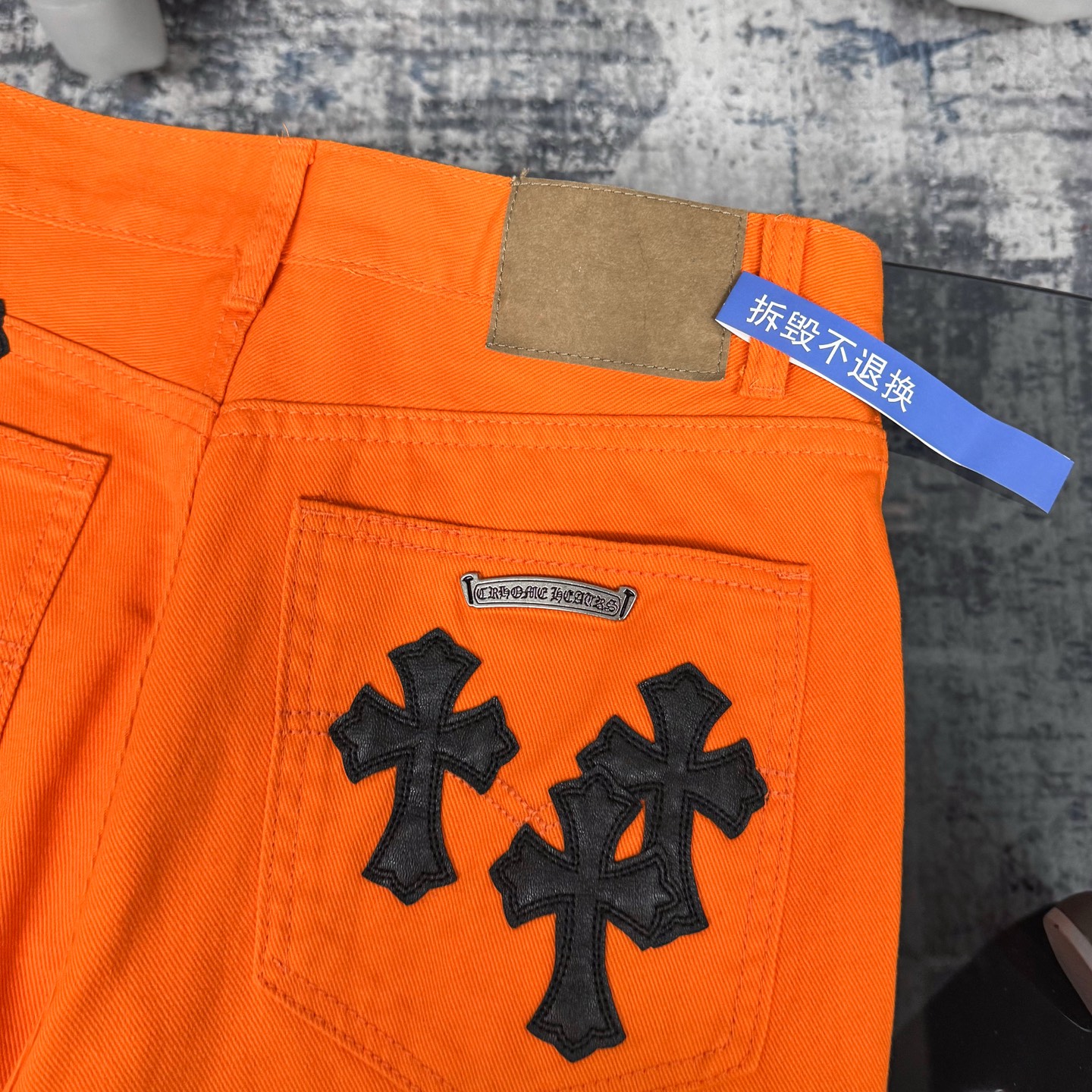 这款衣服是AAAAA 1:1 质量 (非常棒). 使用了和原版一模一样的材料. 商标部分也保持了和克罗心/Chrome Hearts一样. 图片拍摄是实物衣服拍摄, 您所收到的实物保证和我们图片一模一样.