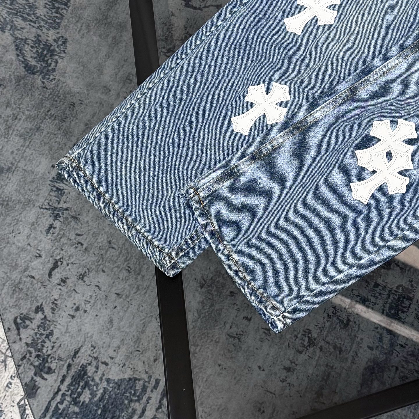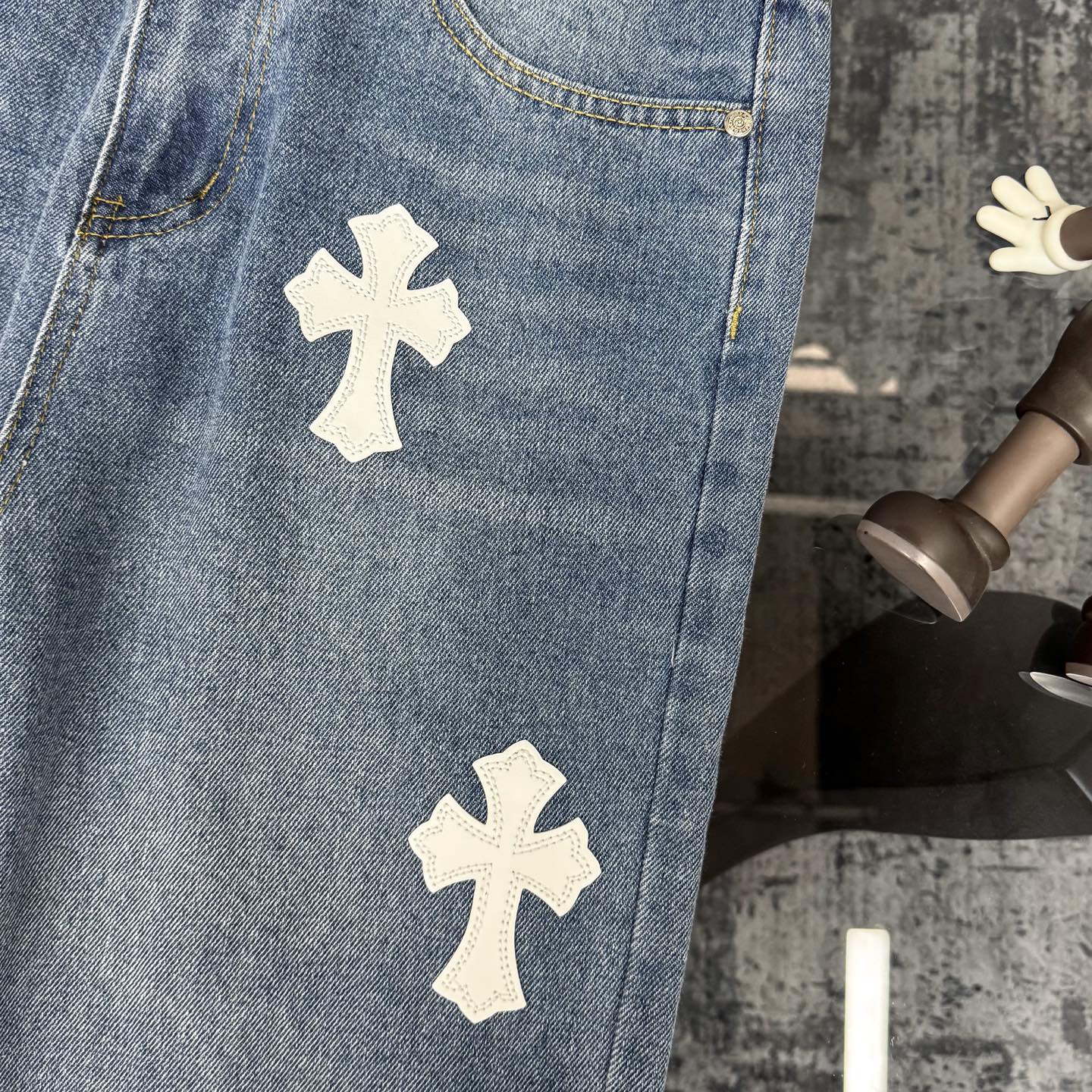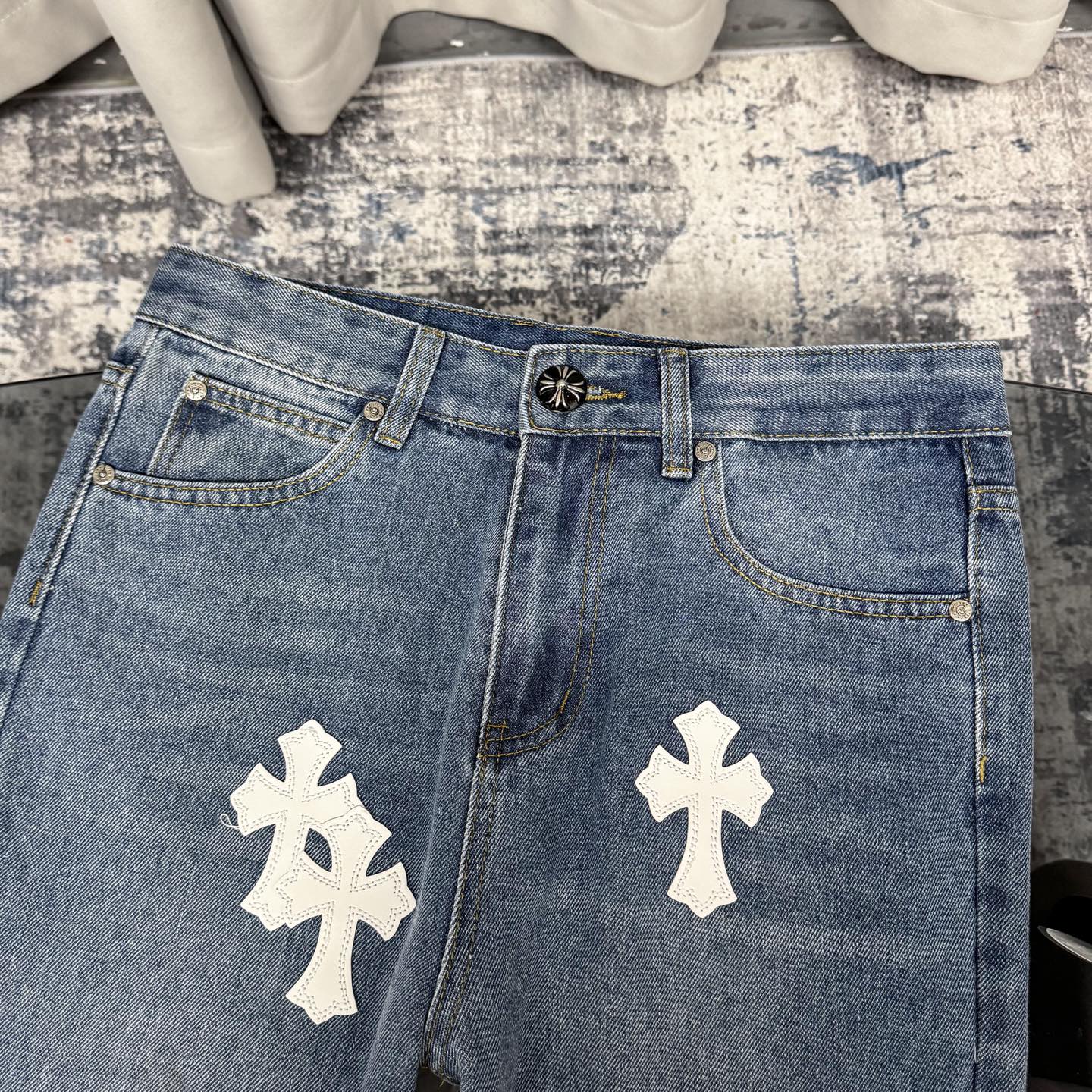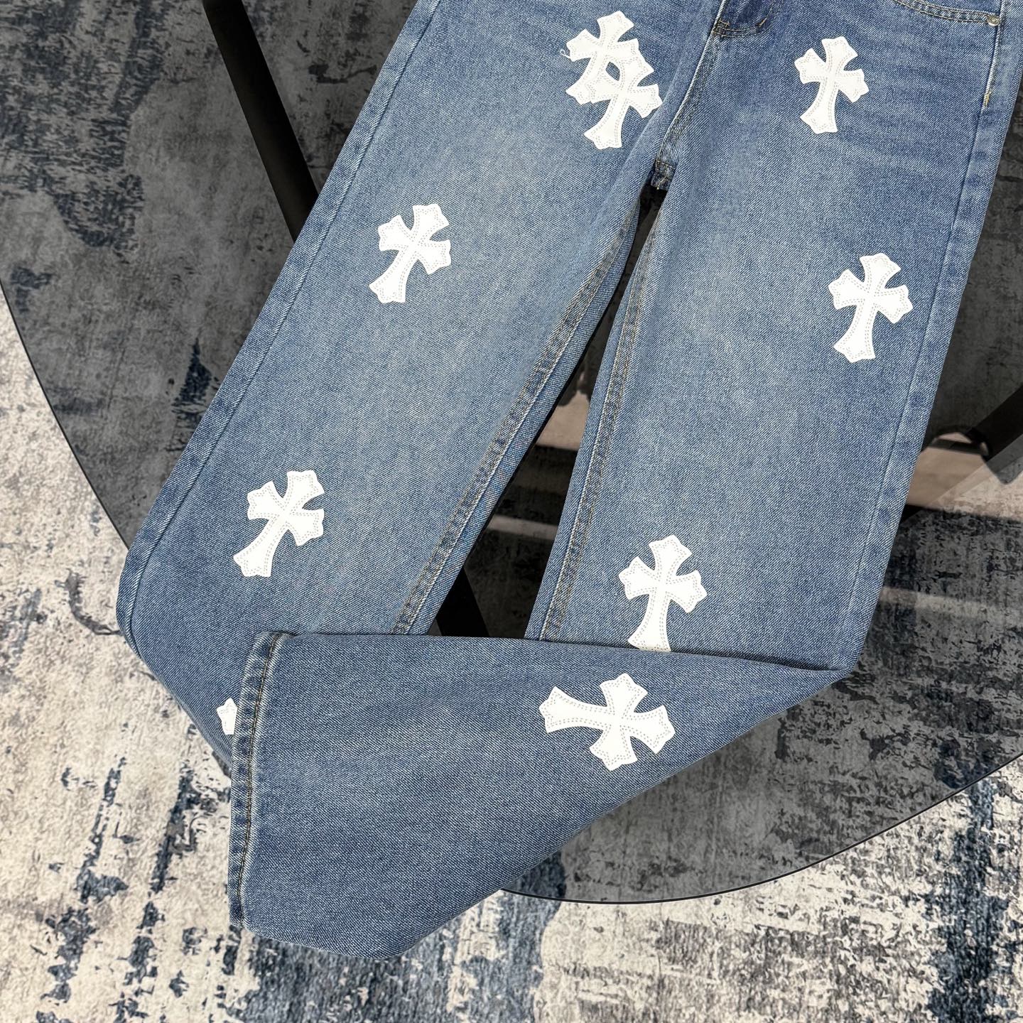 这款衣服是AAAAA 1:1 质量 (非常棒). 使用了和原版一模一样的材料. 商标部分也保持了和克罗心/Chrome Hearts一样. 图片拍摄是实物衣服拍摄, 您所收到的实物保证和我们图片一模一样.