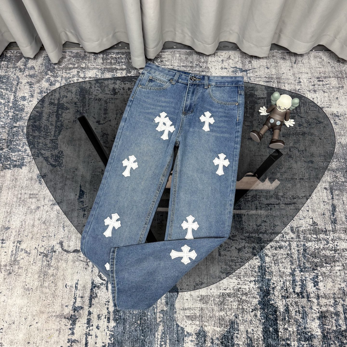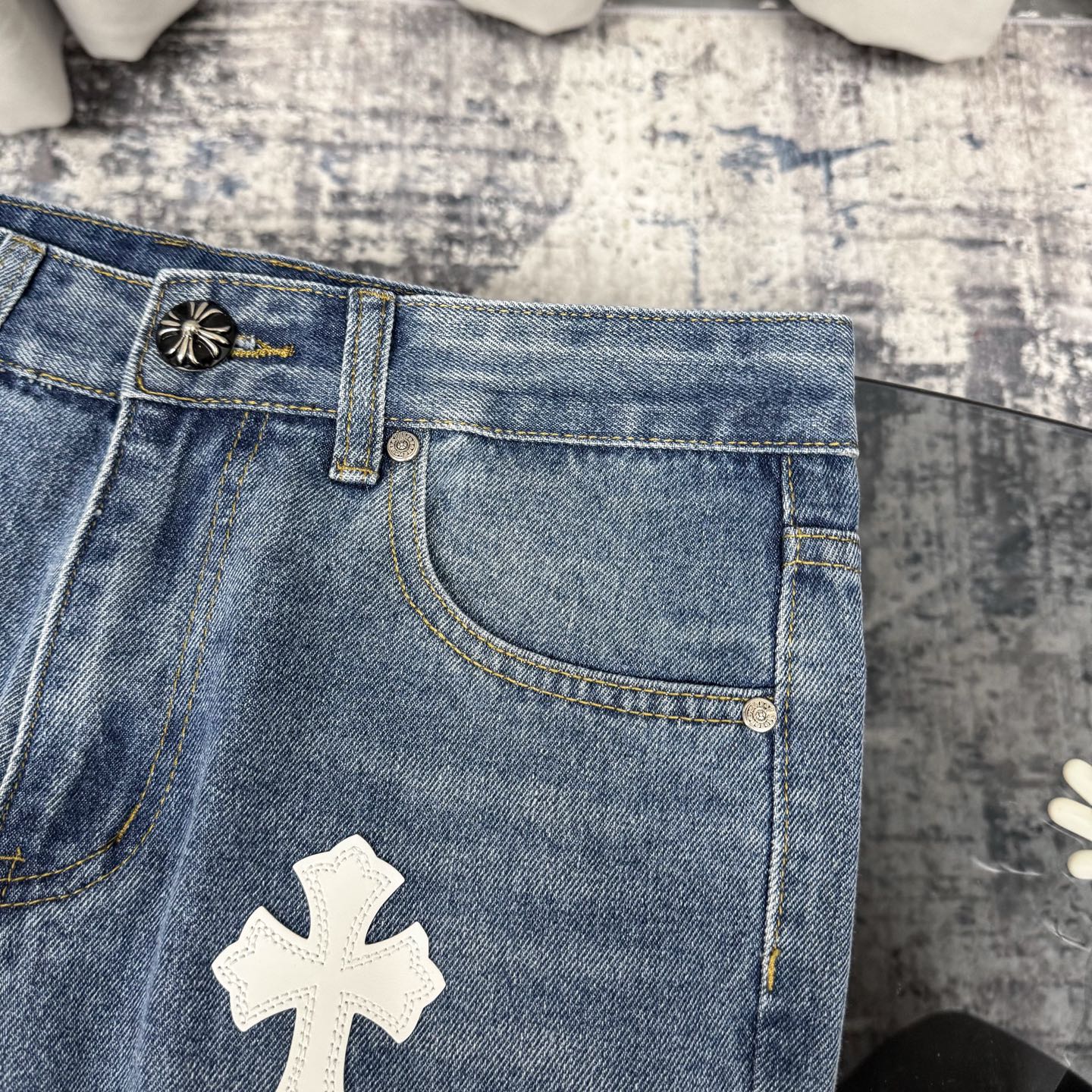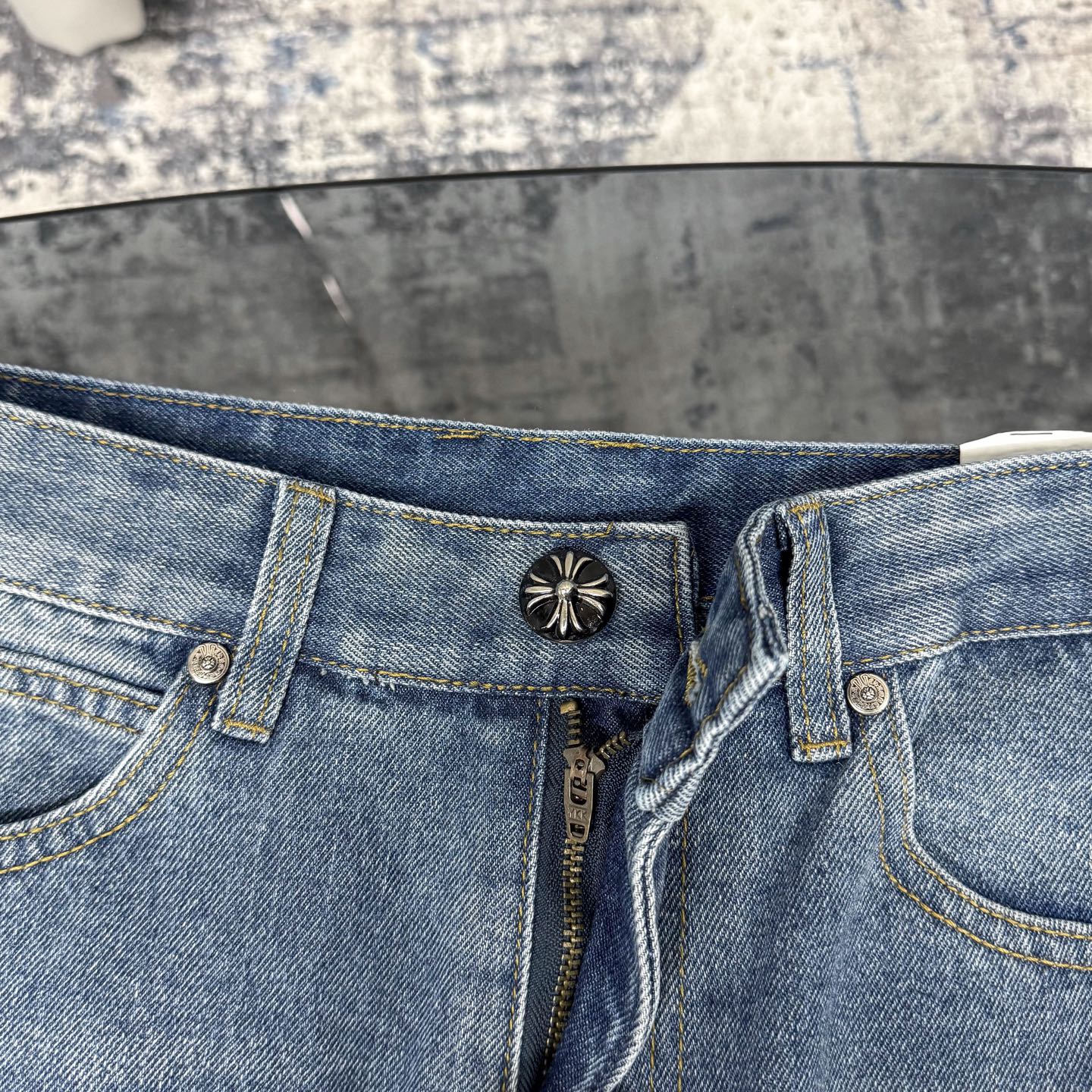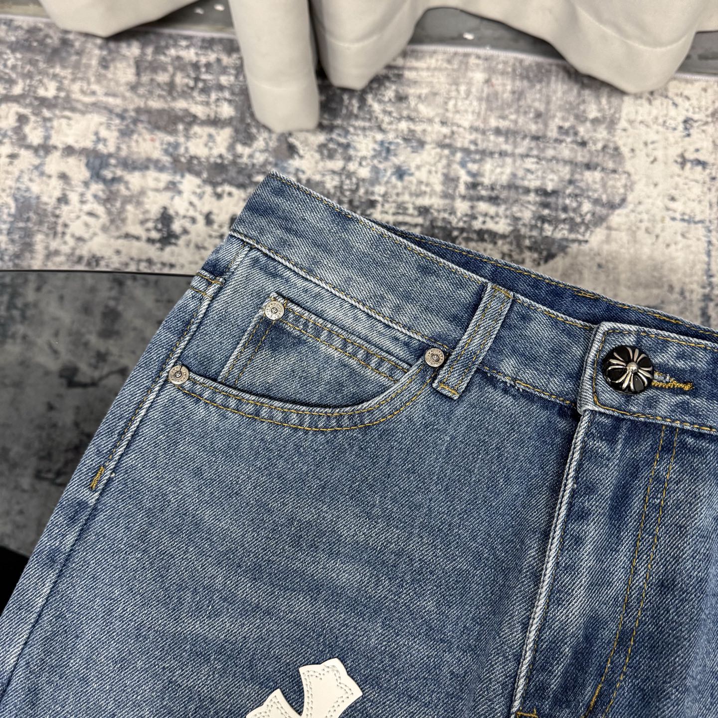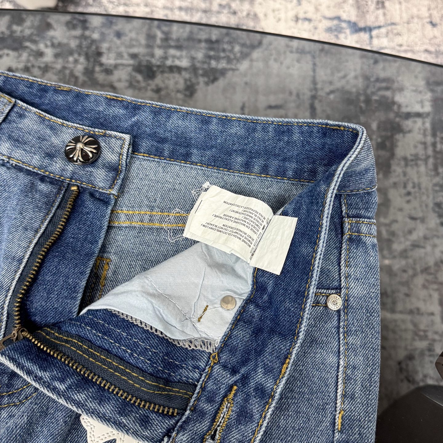 这款衣服是AAAAA 1:1 质量 (非常棒). 使用了和原版一模一样的材料. 商标部分也保持了和克罗心/Chrome Hearts一样. 图片拍摄是实物衣服拍摄, 您所收到的实物保证和我们图片一模一样.