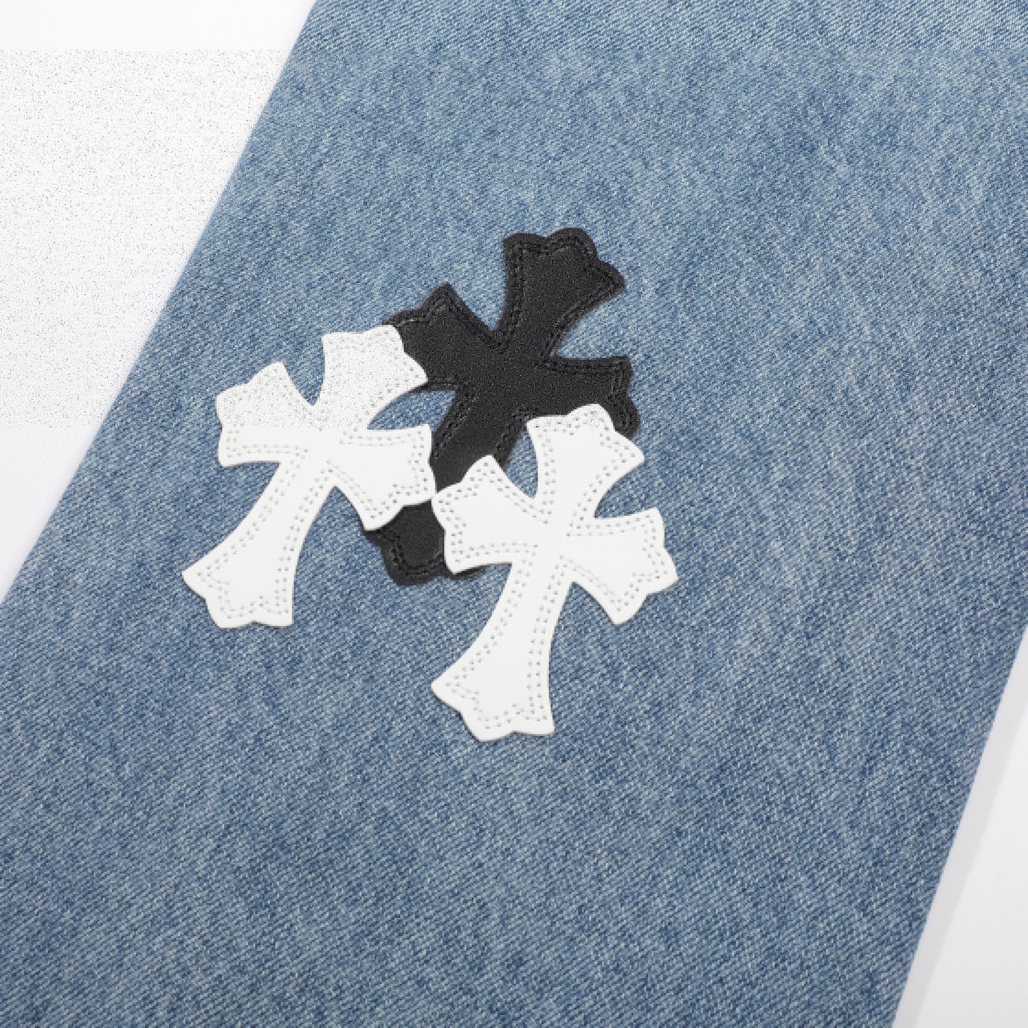 这款衣服是AAAAA 1:1 质量 (非常棒). 使用了和原版一模一样的材料. 商标部分也保持了和克罗心/Chrome Hearts一样. 图片拍摄是实物衣服拍摄, 您所收到的实物保证和我们图片一模一样.