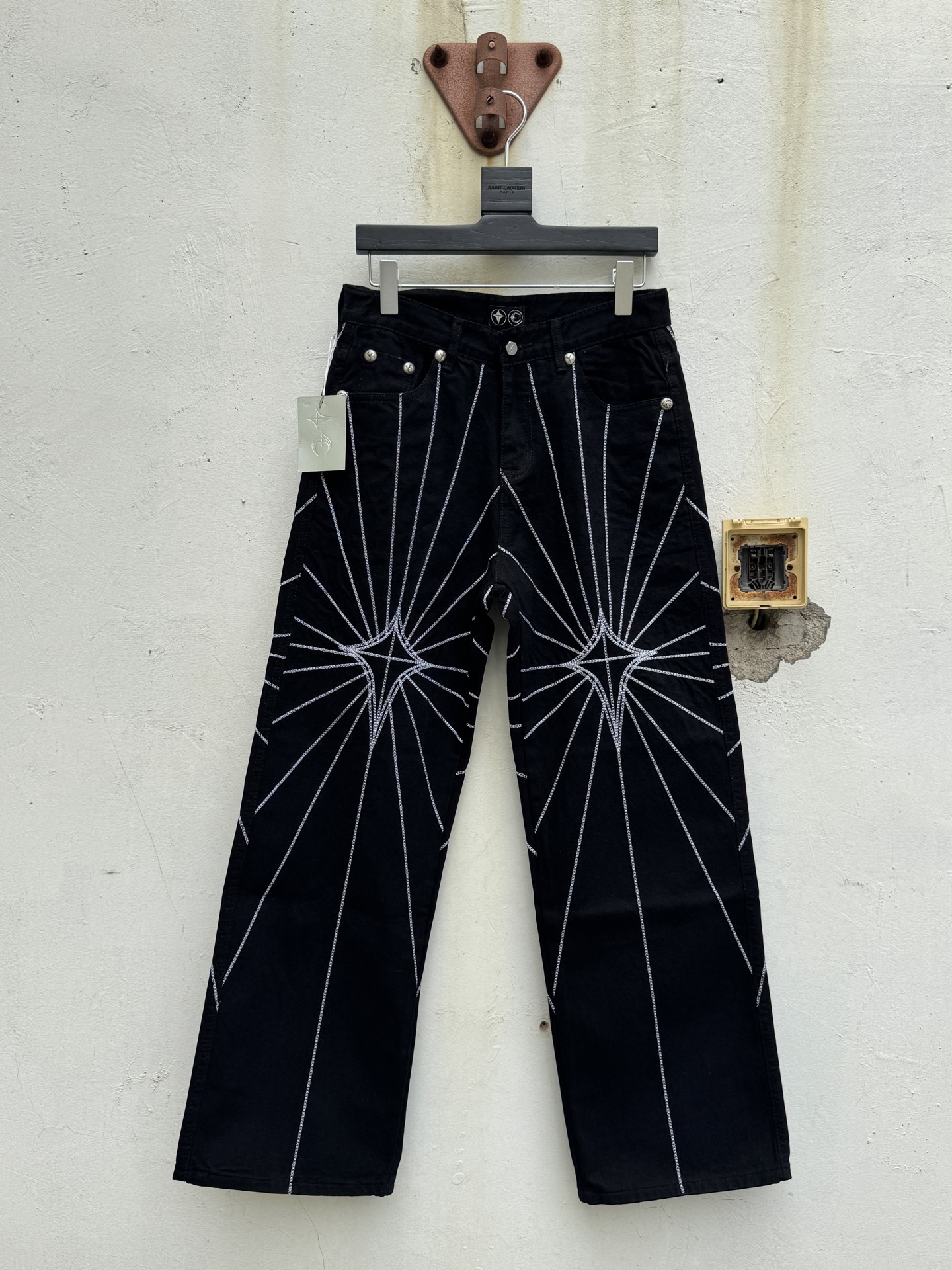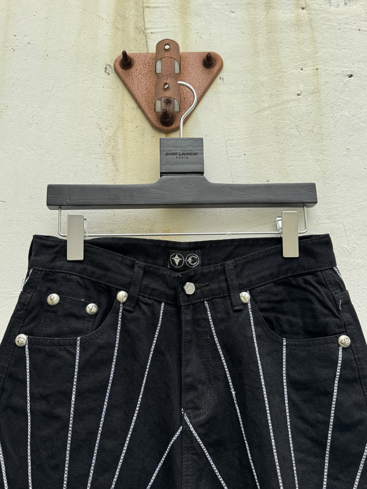 这款衣服是AAAAA 1:1 质量 (非常棒). 使用了和原版一模一样的材料. 商标部分也保持了和克罗心/Chrome Hearts一样. 图片拍摄是实物衣服拍摄, 您所收到的实物保证和我们图片一模一样.