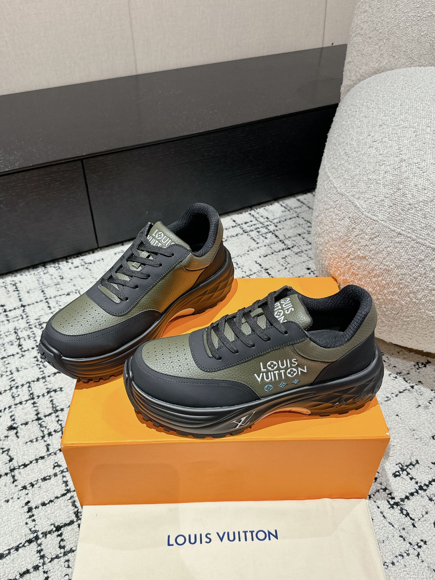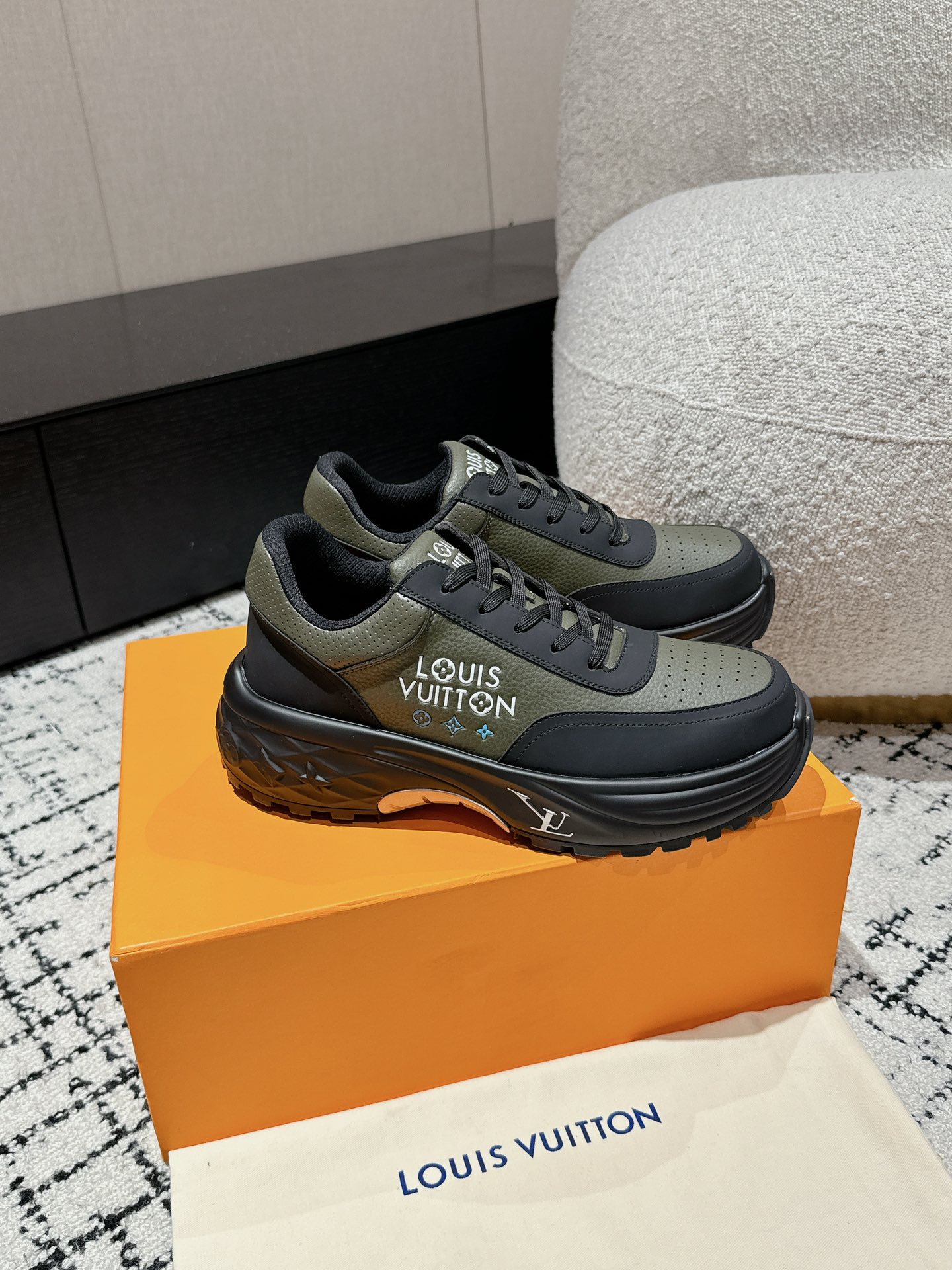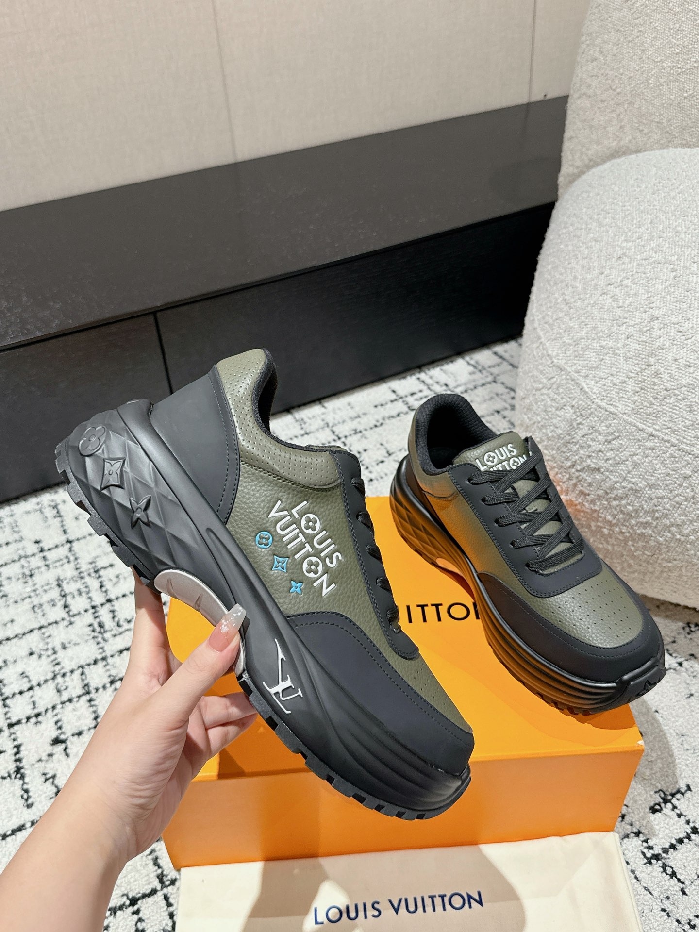 这款鞋子是AAAAA 1:1 质量 (非常棒). 使用了和原版一模一样的材料. 商标部分也保持了和路易威登/Louis Vuitton一样. 图片拍摄是实物鞋子拍摄, 您所收到的实物保证和我们图片一模一样.