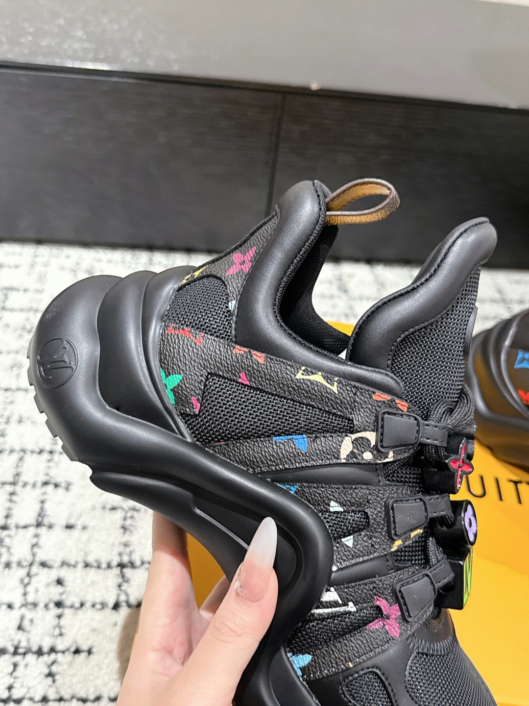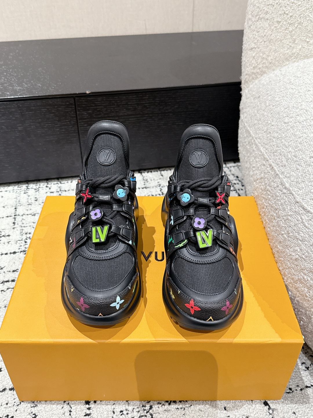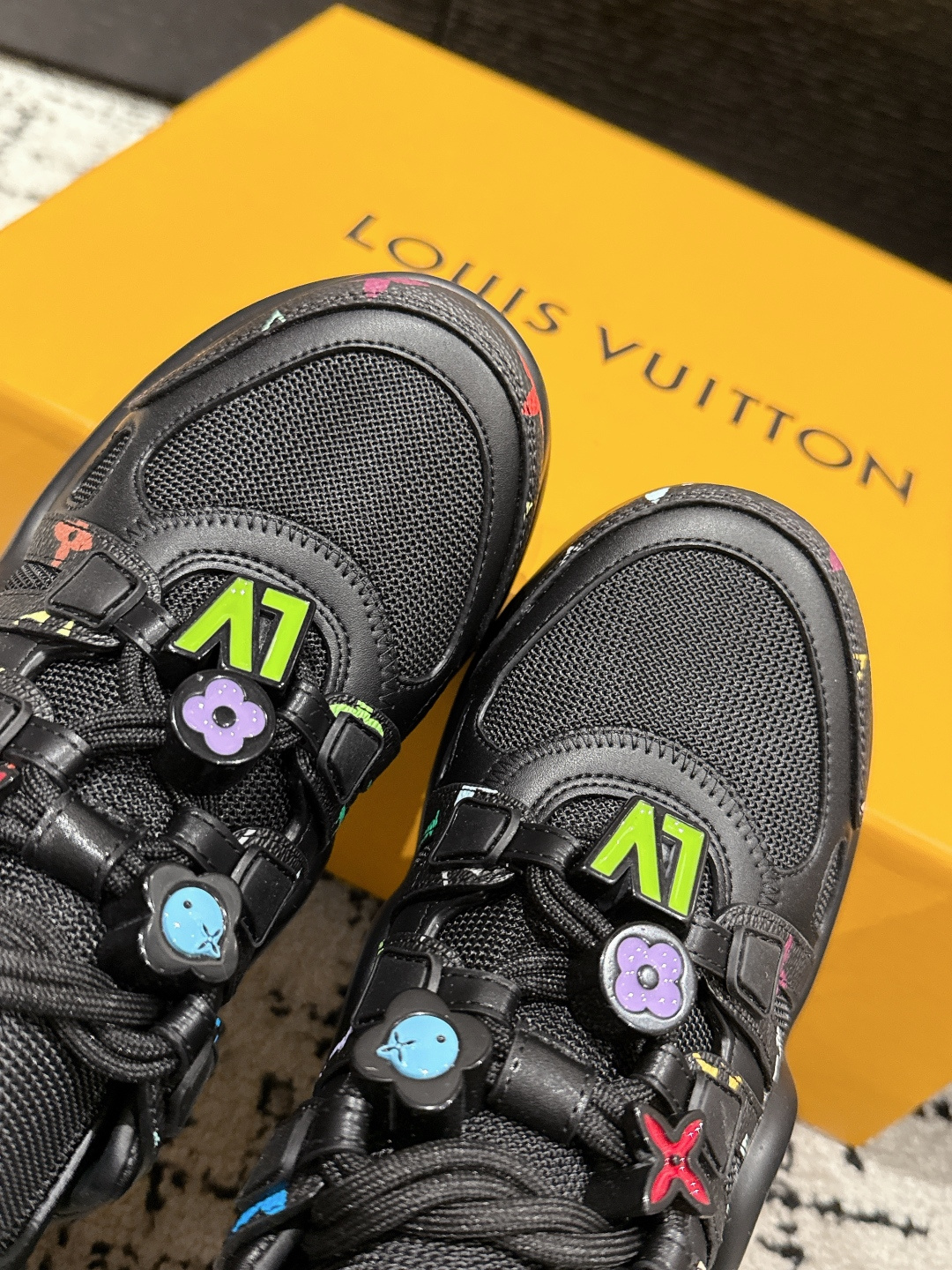 这款鞋子是AAAAA 1:1 质量 (非常棒). 使用了和原版一模一样的材料. 商标部分也保持了和路易威登/Louis Vuitton一样. 图片拍摄是实物鞋子拍摄, 您所收到的实物保证和我们图片一模一样.