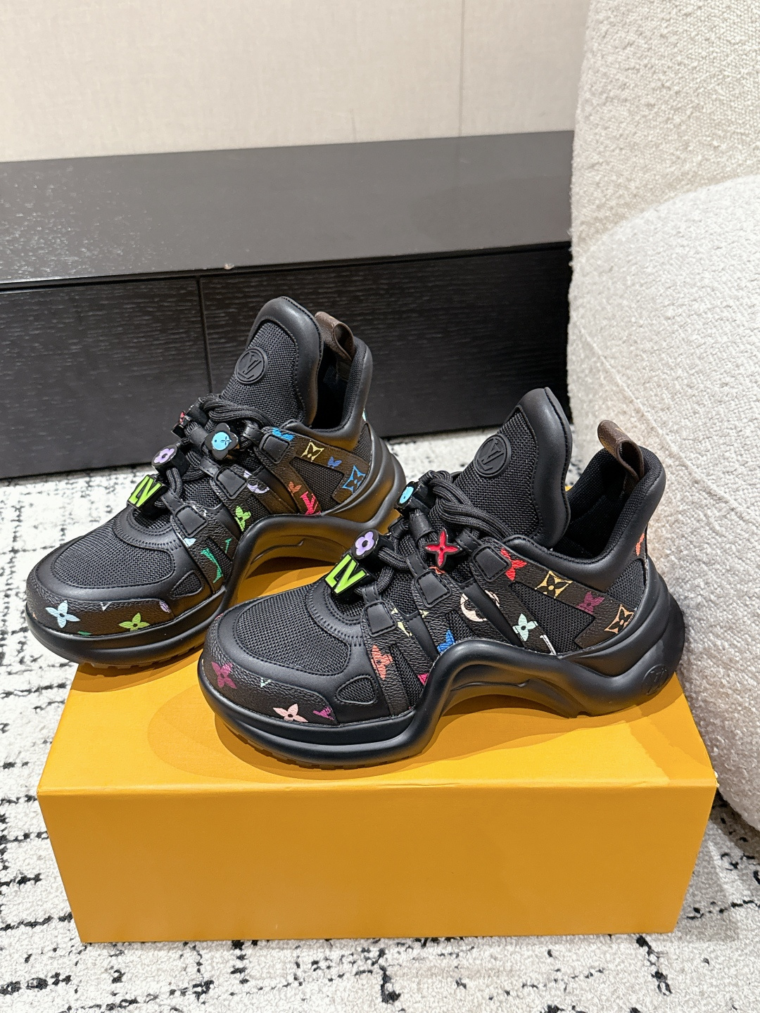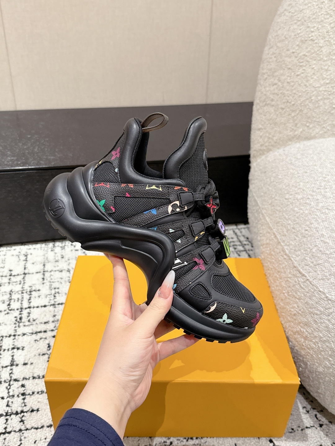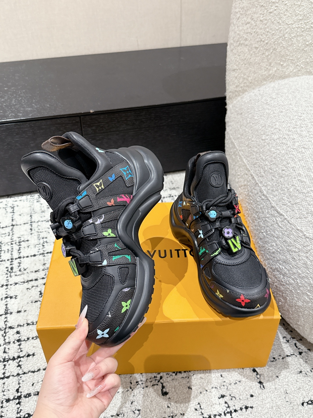 这款鞋子是AAAAA 1:1 质量 (非常棒). 使用了和原版一模一样的材料. 商标部分也保持了和路易威登/Louis Vuitton一样. 图片拍摄是实物鞋子拍摄, 您所收到的实物保证和我们图片一模一样.