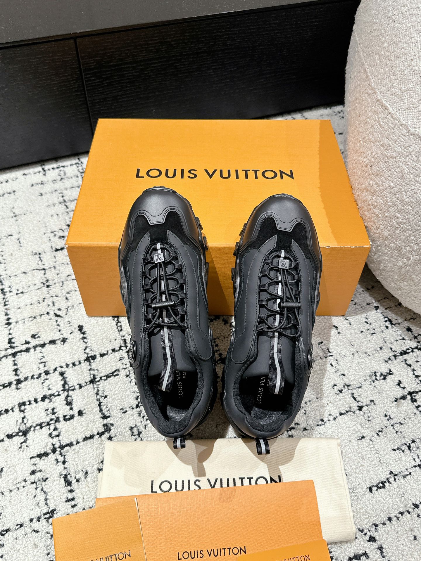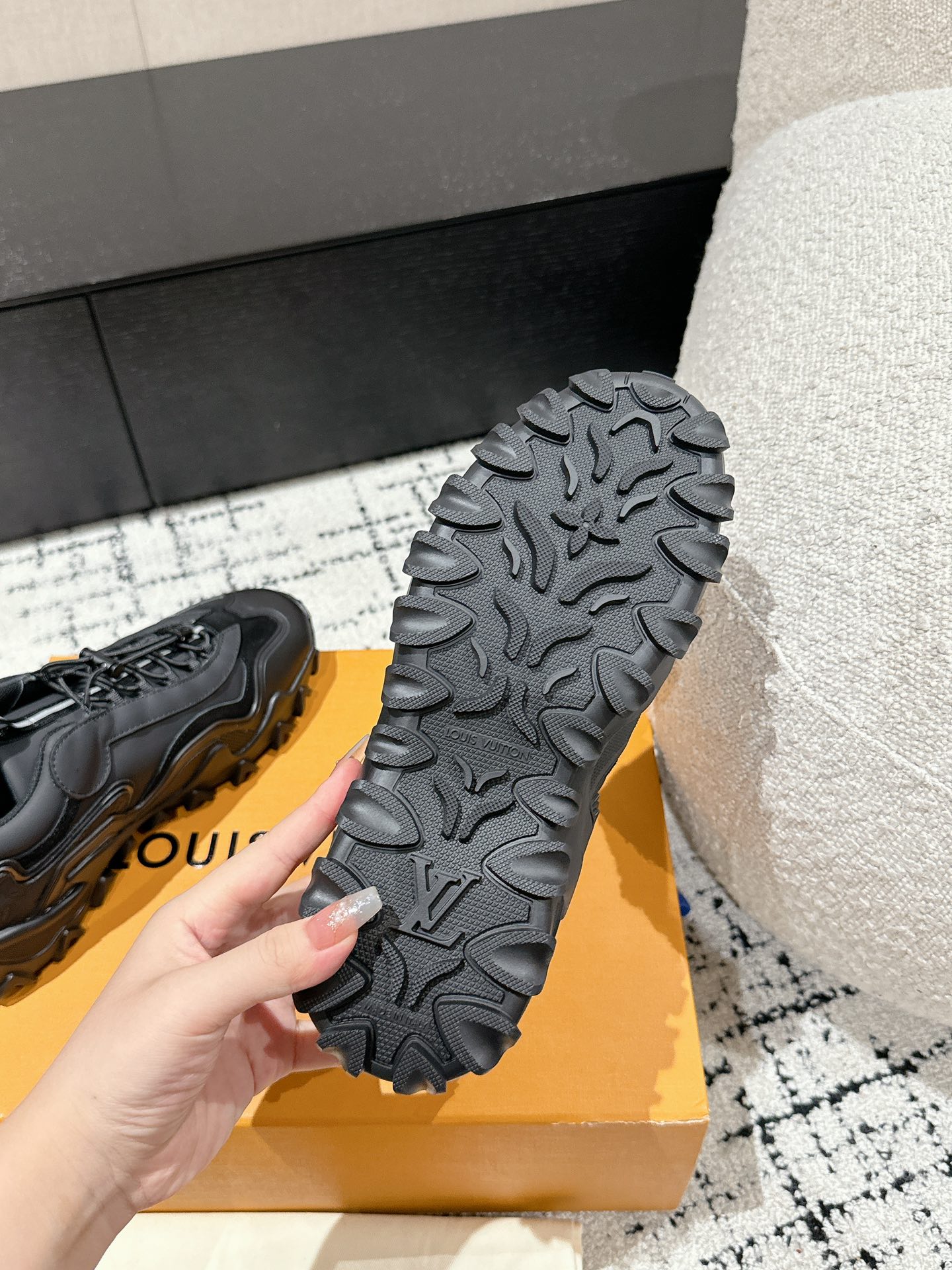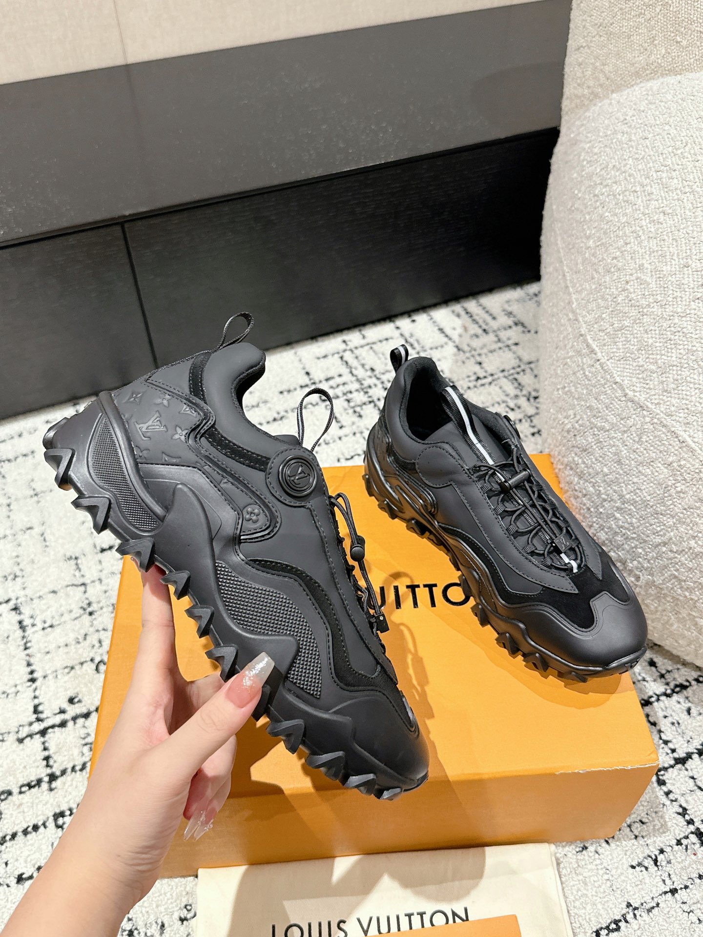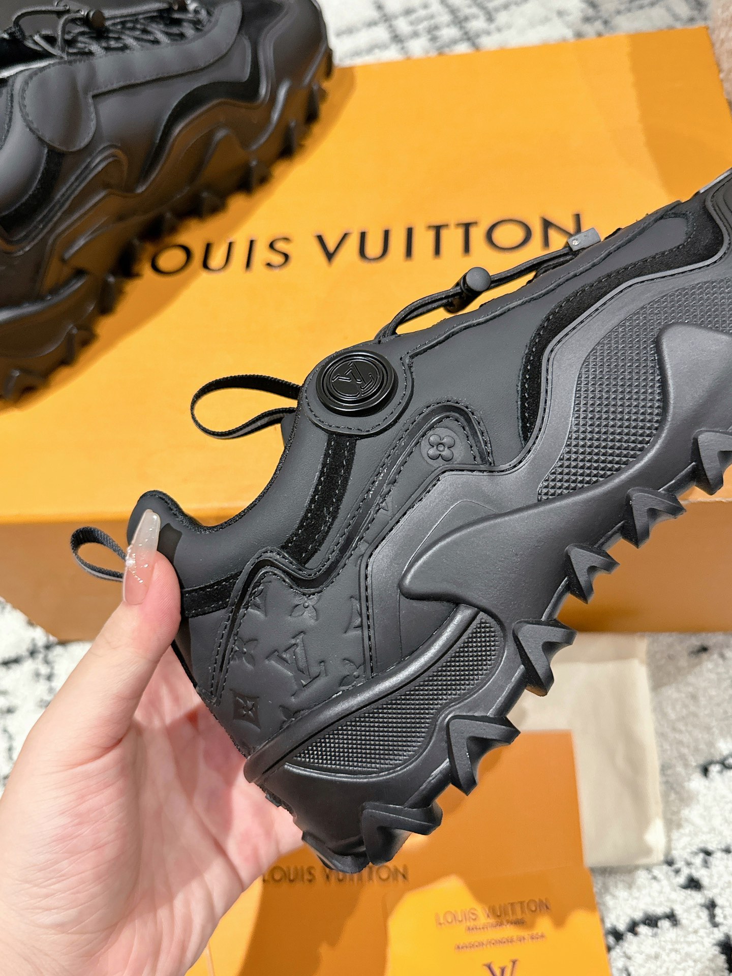 这款鞋子是AAAAA 1:1 质量 (非常棒). 使用了和原版一模一样的材料. 商标部分也保持了和路易威登/Louis Vuitton一样. 图片拍摄是实物鞋子拍摄, 您所收到的实物保证和我们图片一模一样.
