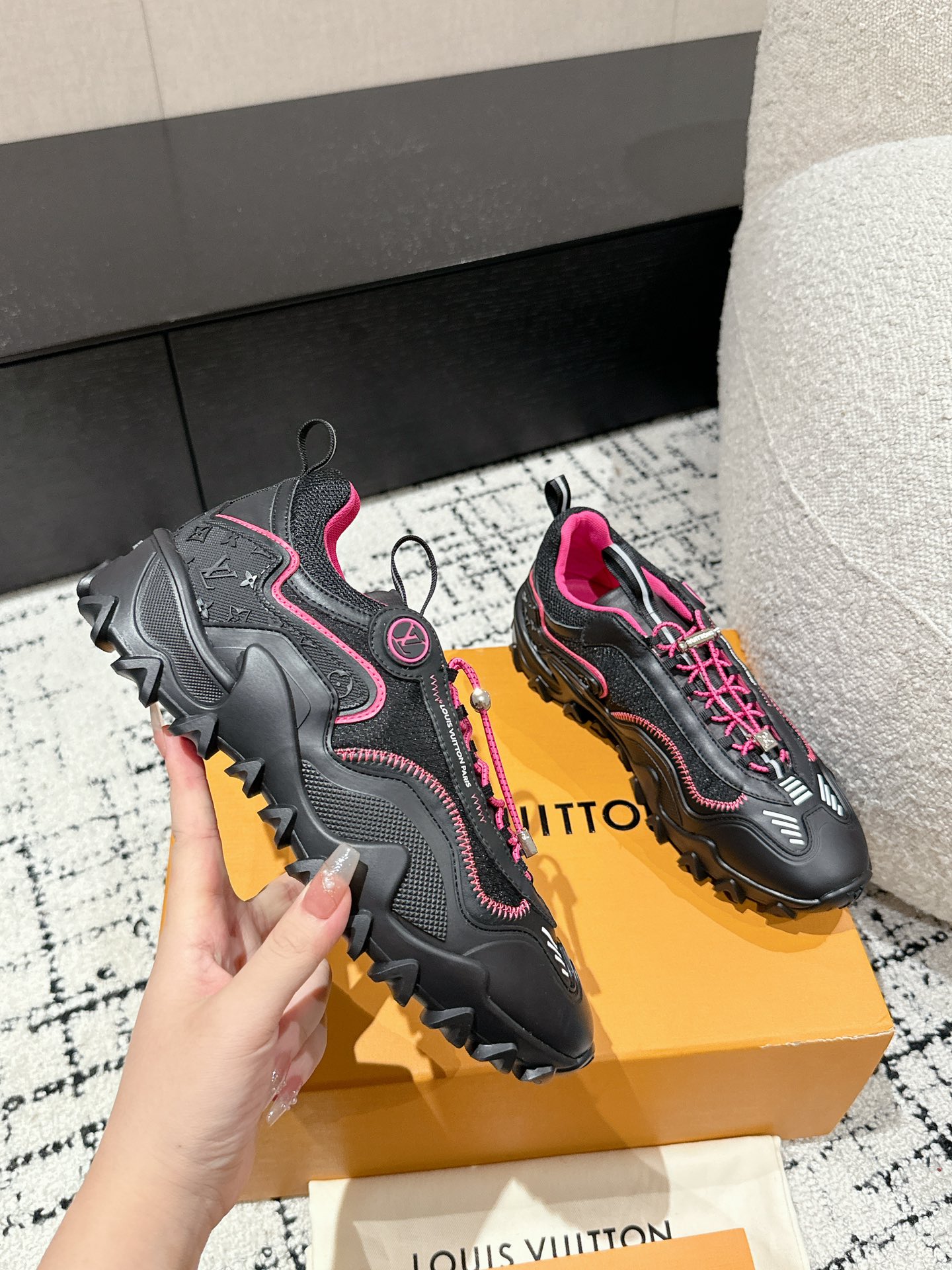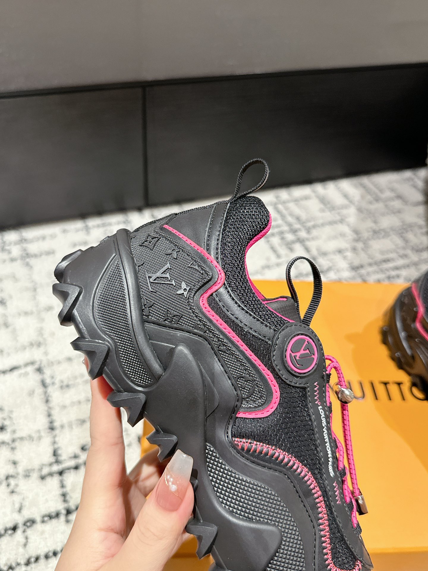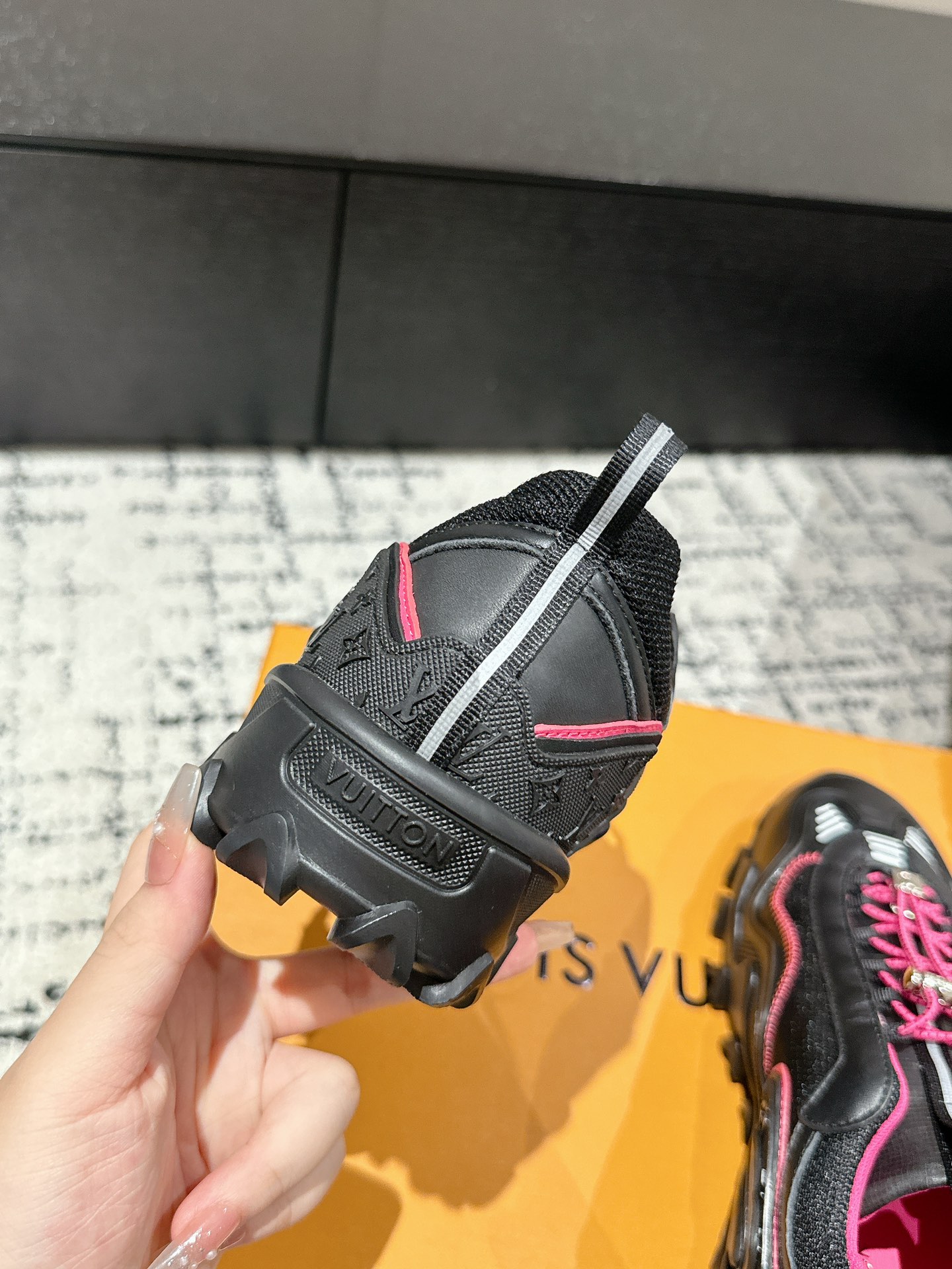 这款鞋子是AAAAA 1:1 质量 (非常棒). 使用了和原版一模一样的材料. 商标部分也保持了和路易威登/Louis Vuitton一样. 图片拍摄是实物鞋子拍摄, 您所收到的实物保证和我们图片一模一样.