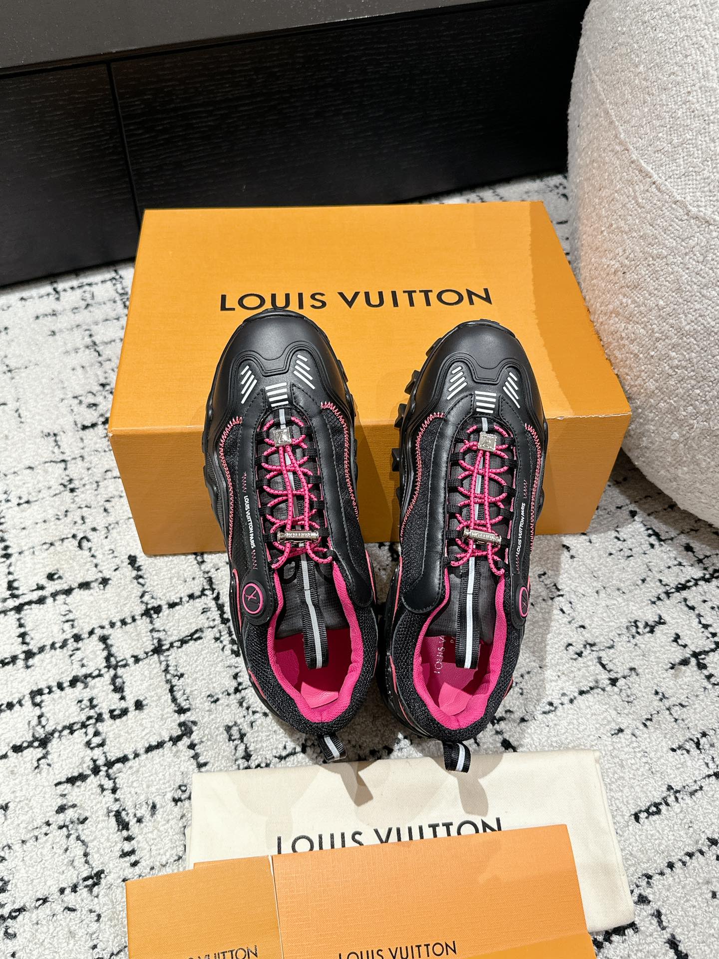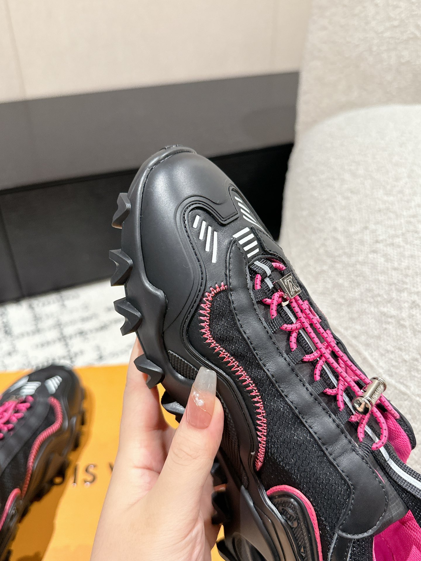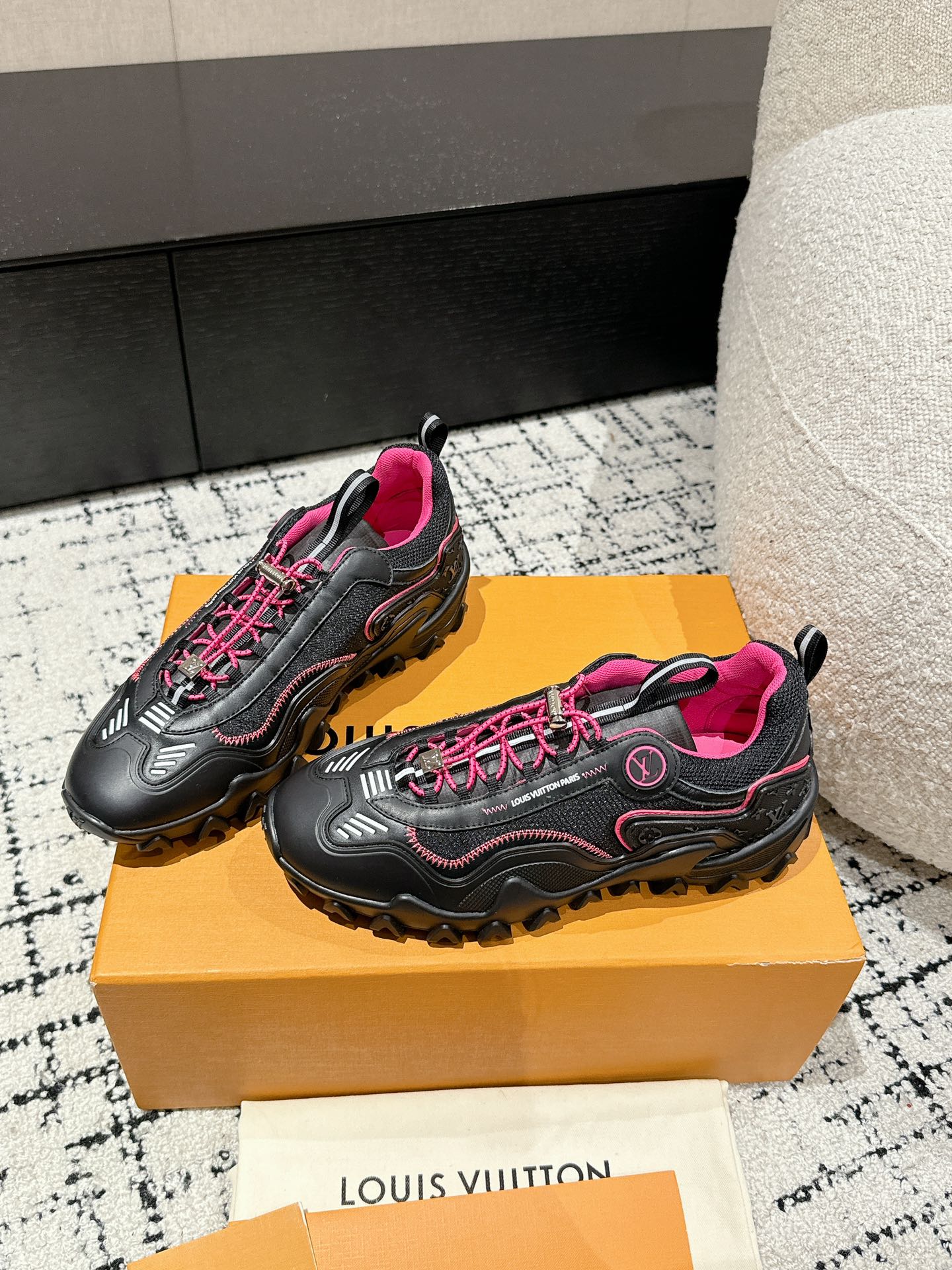这款鞋子是AAAAA 1:1 质量 (非常棒). 使用了和原版一模一样的材料. 商标部分也保持了和路易威登/Louis Vuitton一样. 图片拍摄是实物鞋子拍摄, 您所收到的实物保证和我们图片一模一样.