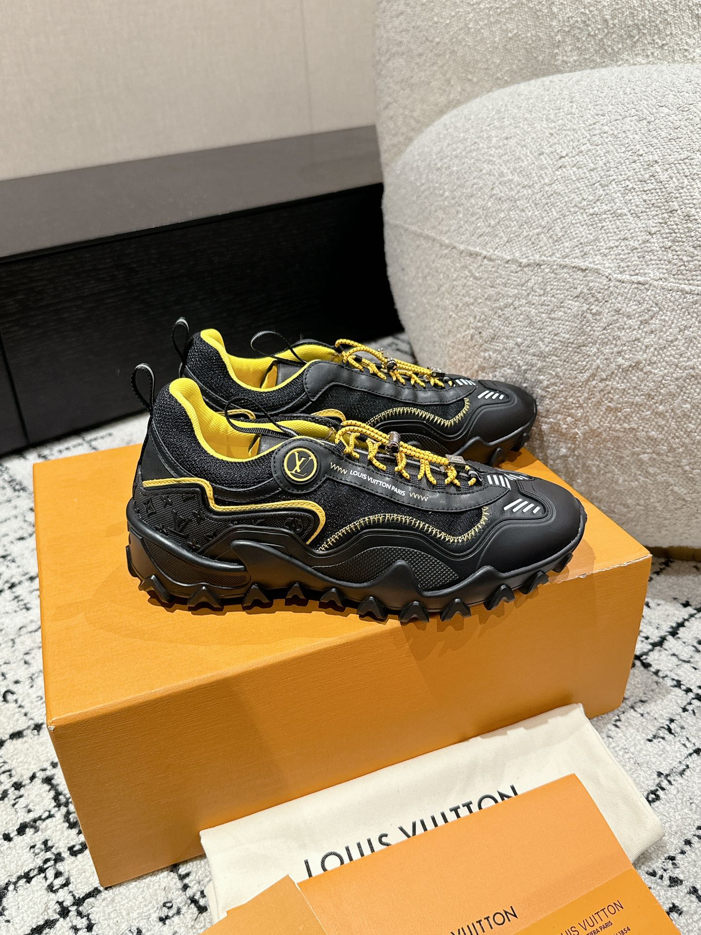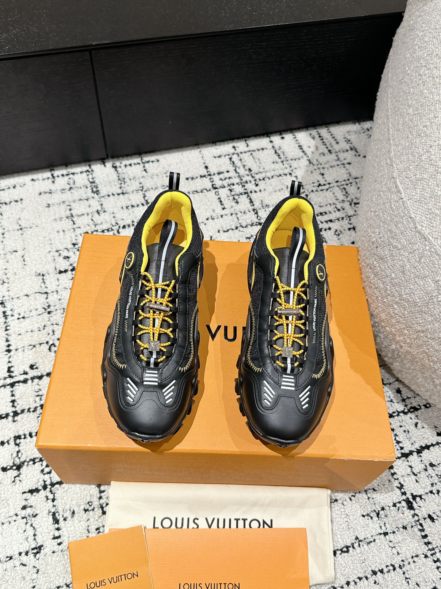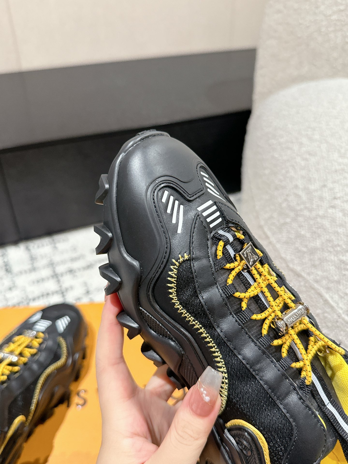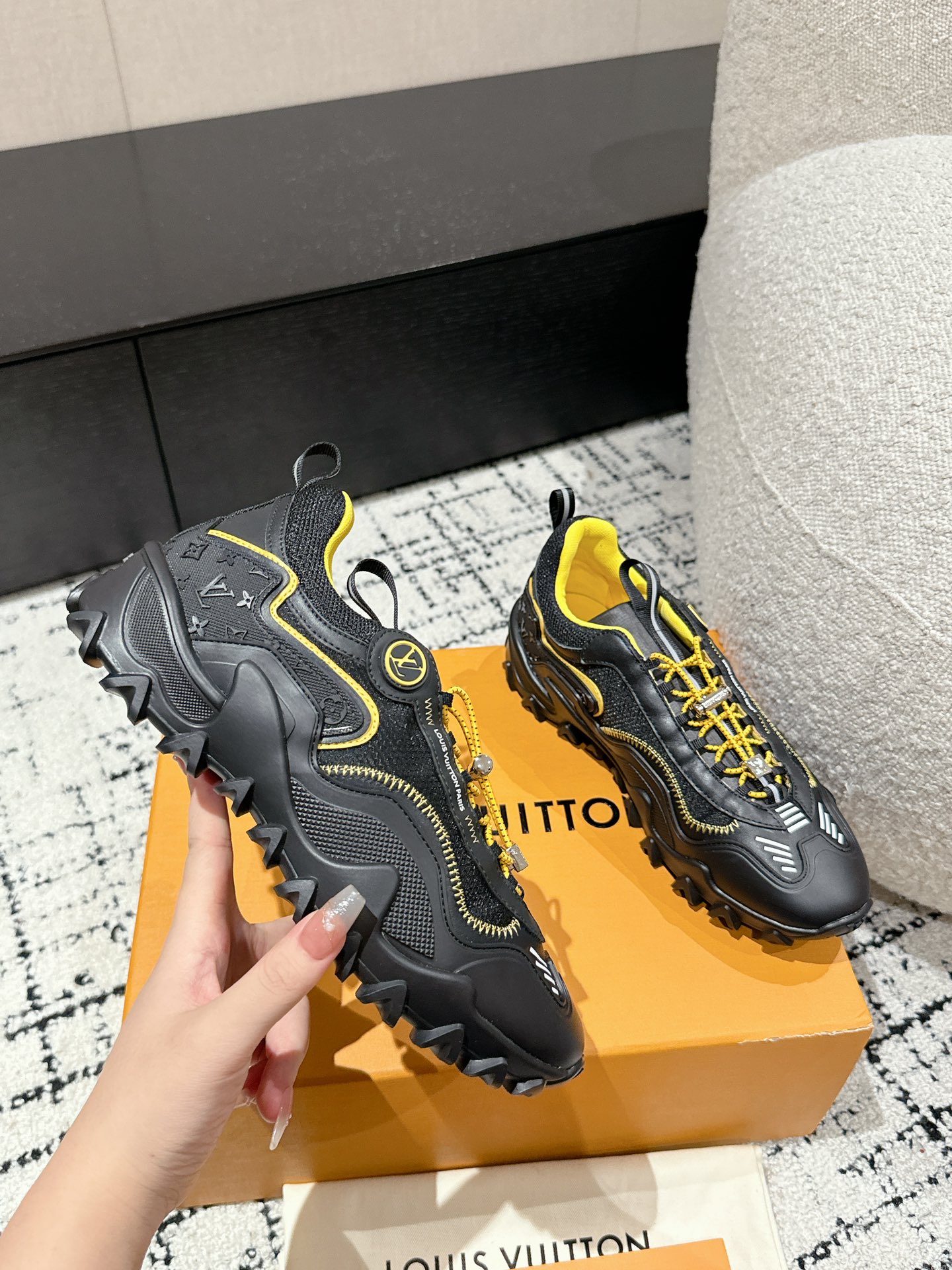 这款鞋子是AAAAA 1:1 质量 (非常棒). 使用了和原版一模一样的材料. 商标部分也保持了和路易威登/Louis Vuitton一样. 图片拍摄是实物鞋子拍摄, 您所收到的实物保证和我们图片一模一样.