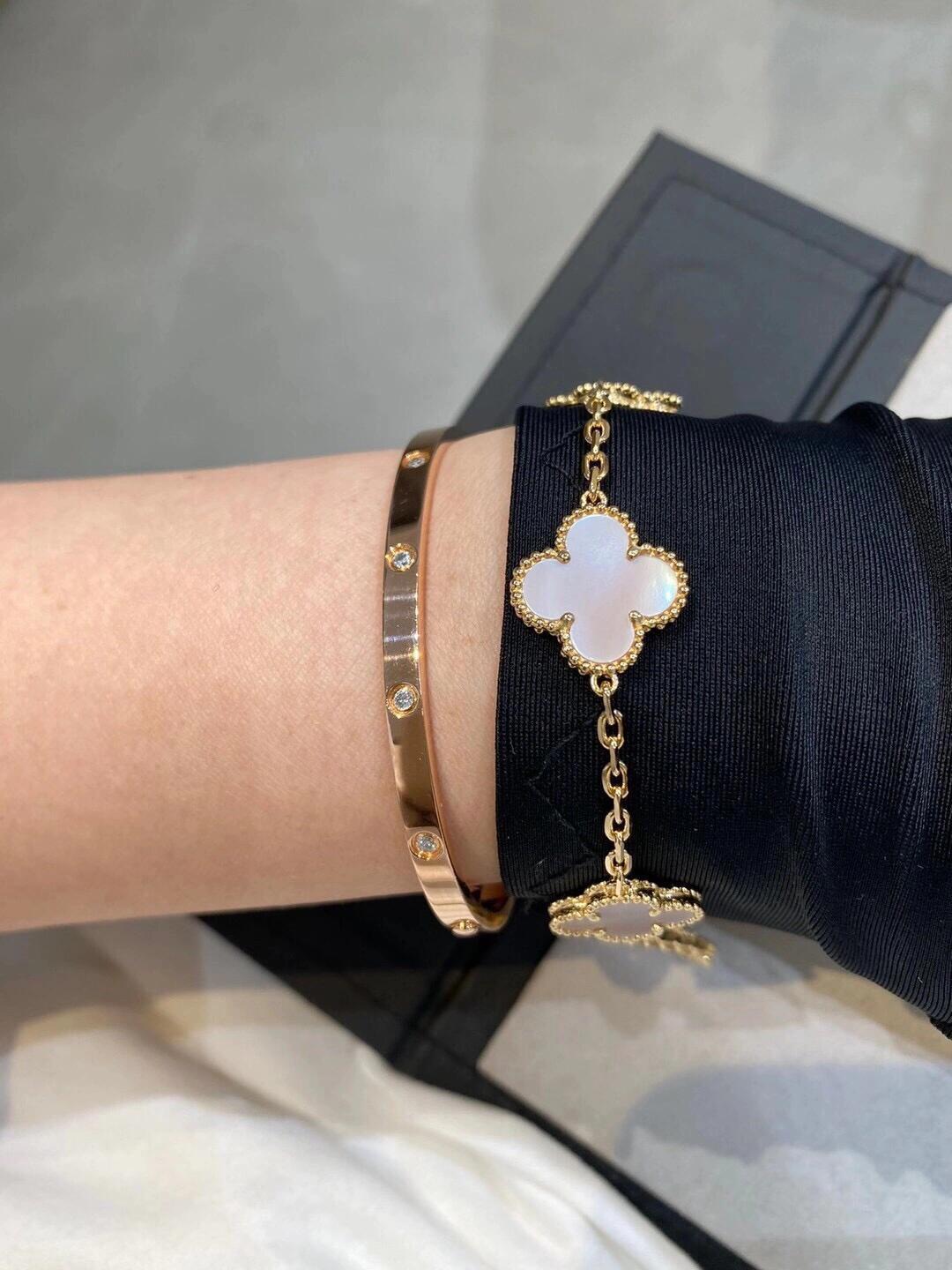 这款首饰是AAAAA 1:1 质量 (非常棒). 使用了和原版一模一样的材料. 商标部分也保持了和梵克雅宝/Van Cleef & Arpels一样. 图片拍摄是实物首饰拍摄, 您所收到的实物保证和我们图片一模一样.