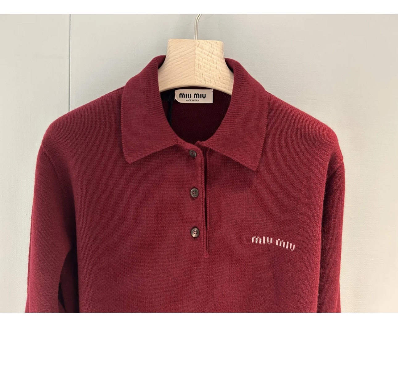 这款衣服是AAAAA 1:1 质量 (非常棒). 使用了和原版一模一样的材料. 商标部分也保持了和缪缪/Miu Miu一样. 图片拍摄是实物衣服拍摄, 您所收到的实物保证和我们图片一模一样.