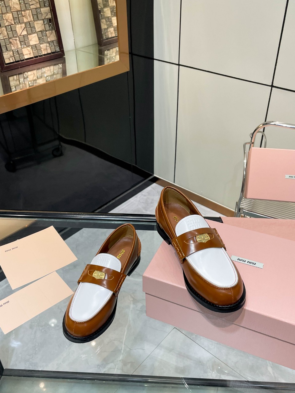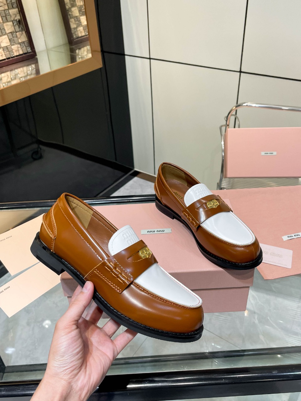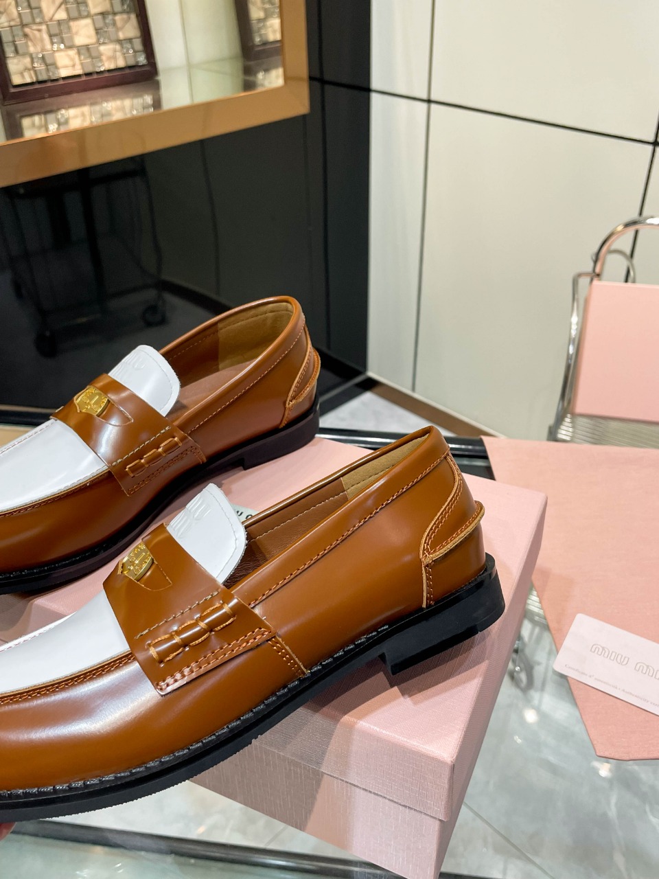 这款鞋子是AAAAA 1:1 质量 (非常棒). 使用了和原版一模一样的材料. 商标部分也保持了和缪缪/Miu Miu一样. 图片拍摄是实物鞋子拍摄, 您所收到的实物保证和我们图片一模一样.