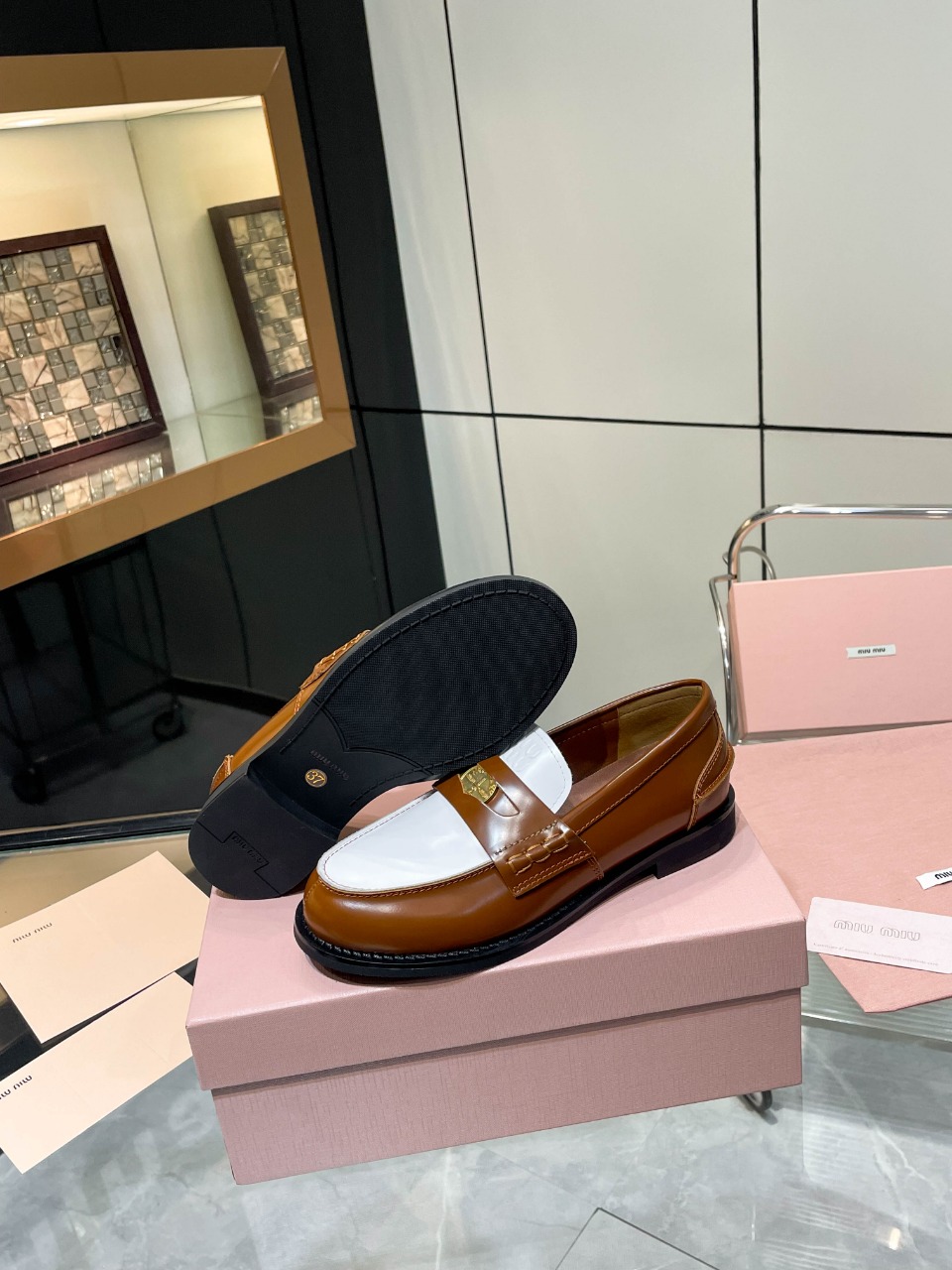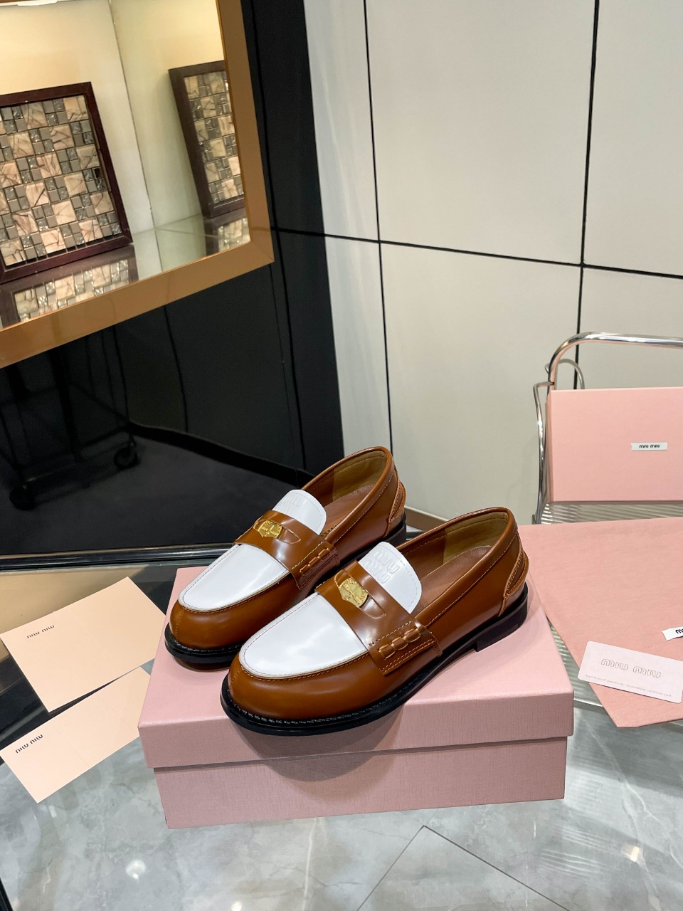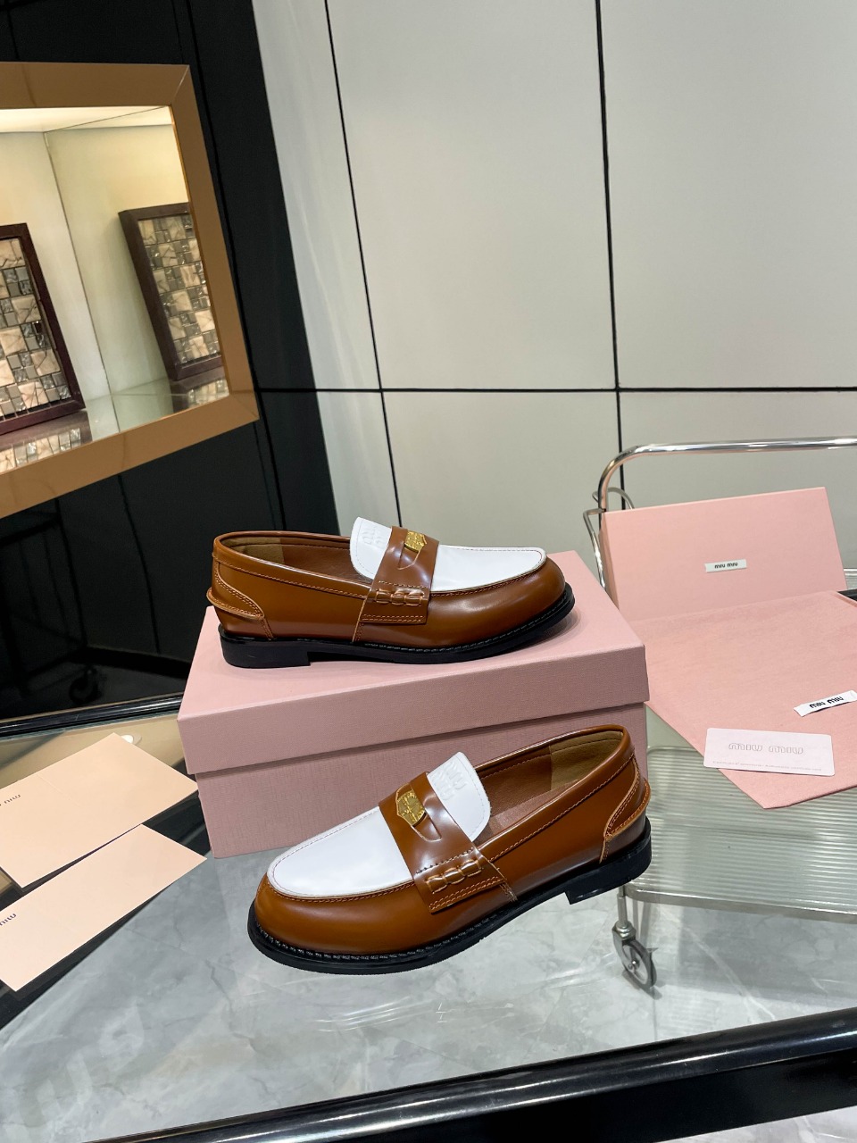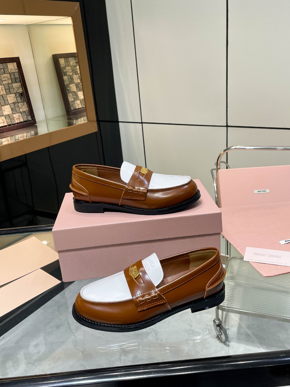 这款鞋子是AAAAA 1:1 质量 (非常棒). 使用了和原版一模一样的材料. 商标部分也保持了和缪缪/Miu Miu一样. 图片拍摄是实物鞋子拍摄, 您所收到的实物保证和我们图片一模一样.