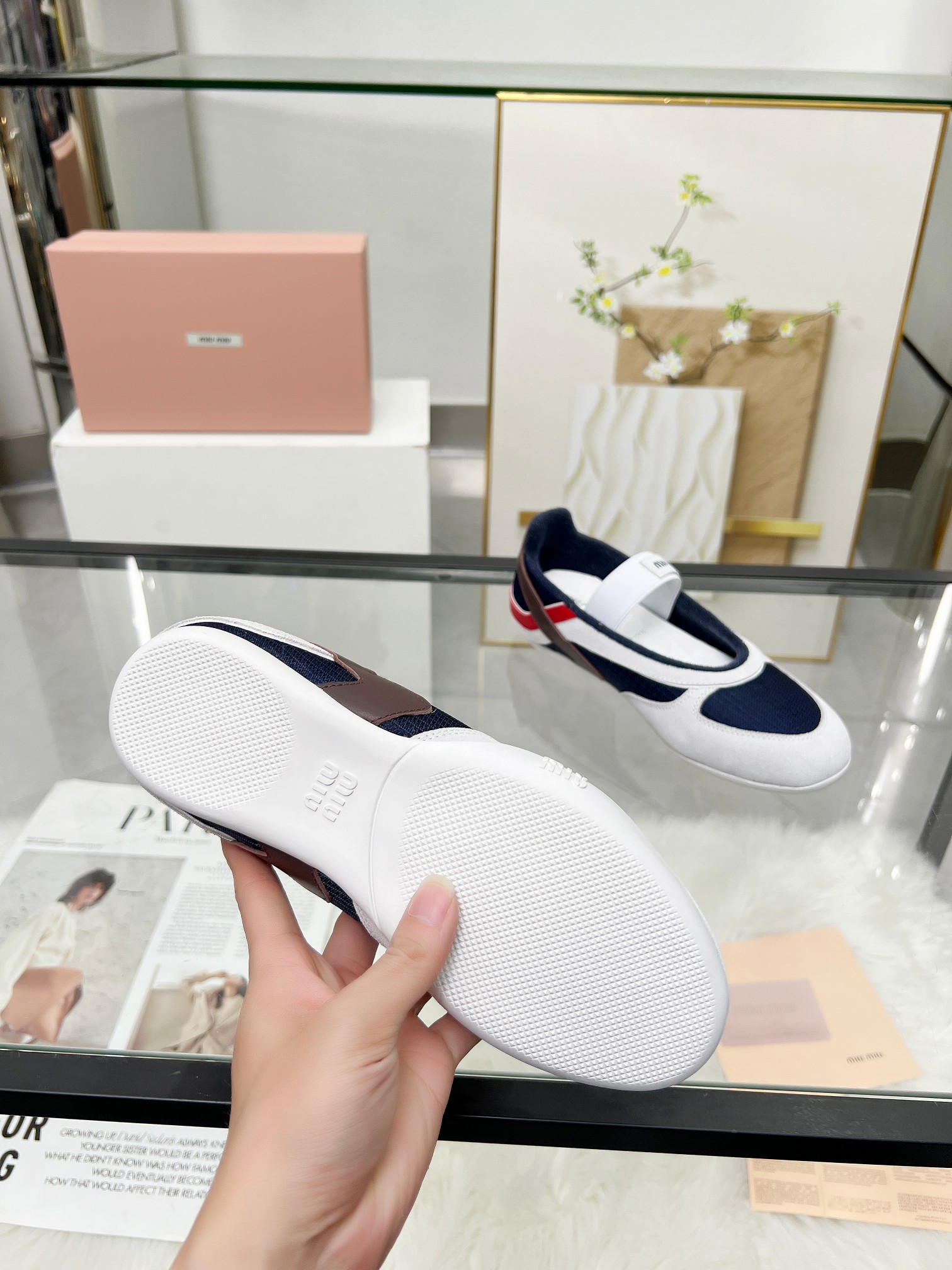 这款鞋子是AAAAA 1:1 质量 (非常棒). 使用了和原版一模一样的材料. 商标部分也保持了和缪缪/Miu Miu一样. 图片拍摄是实物鞋子拍摄, 您所收到的实物保证和我们图片一模一样.