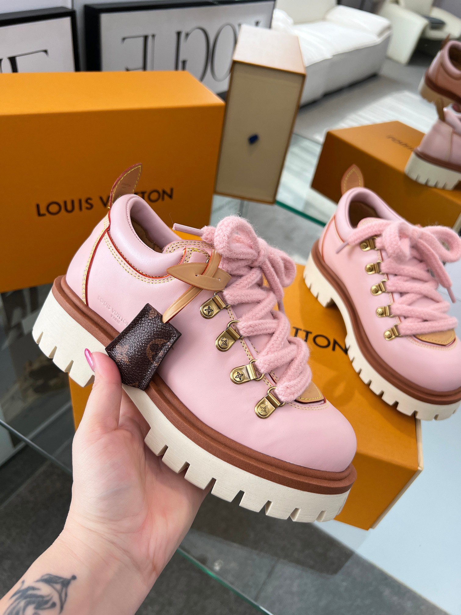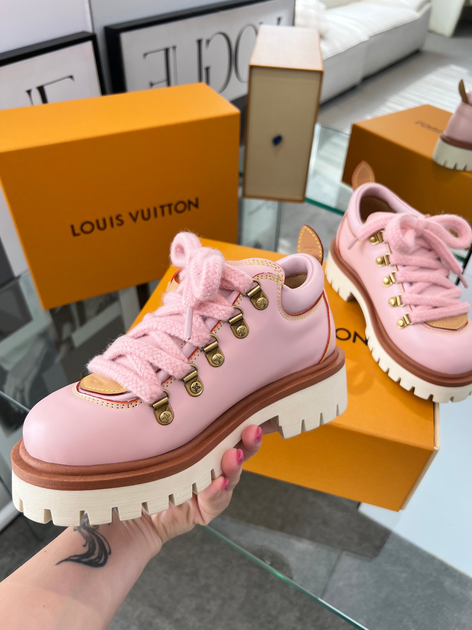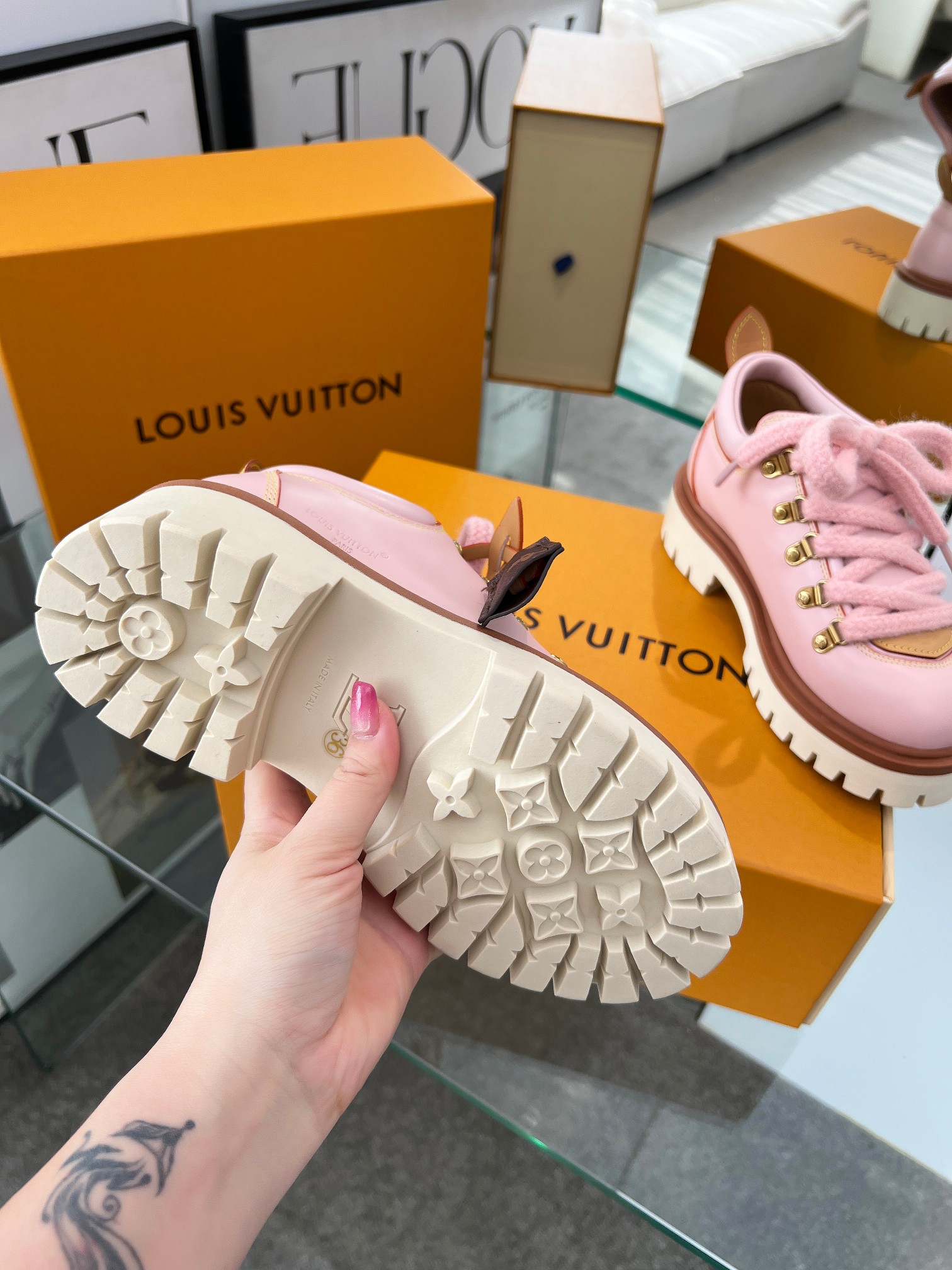 这款鞋子是AAAAA 1:1 质量 (非常棒). 使用了和原版一模一样的材料. 商标部分也保持了和路易威登/Louis Vuitton一样. 图片拍摄是实物鞋子拍摄, 您所收到的实物保证和我们图片一模一样.