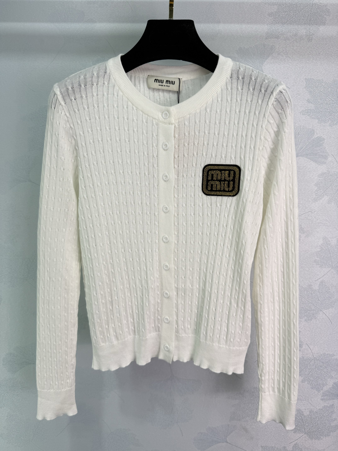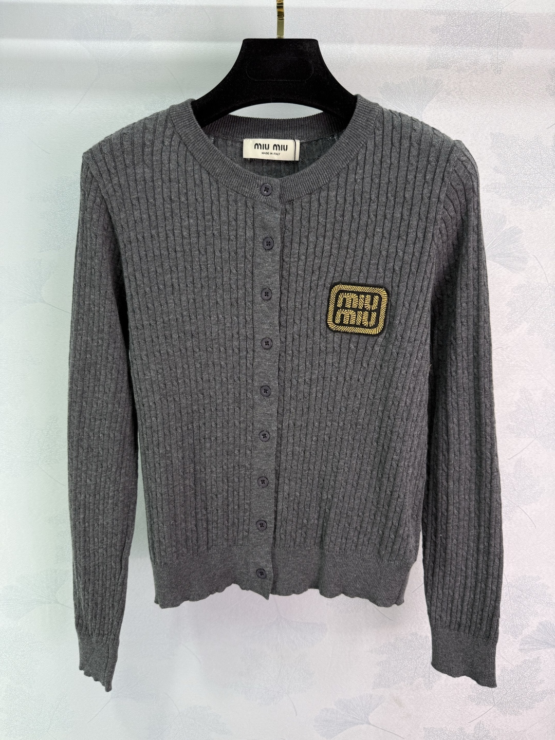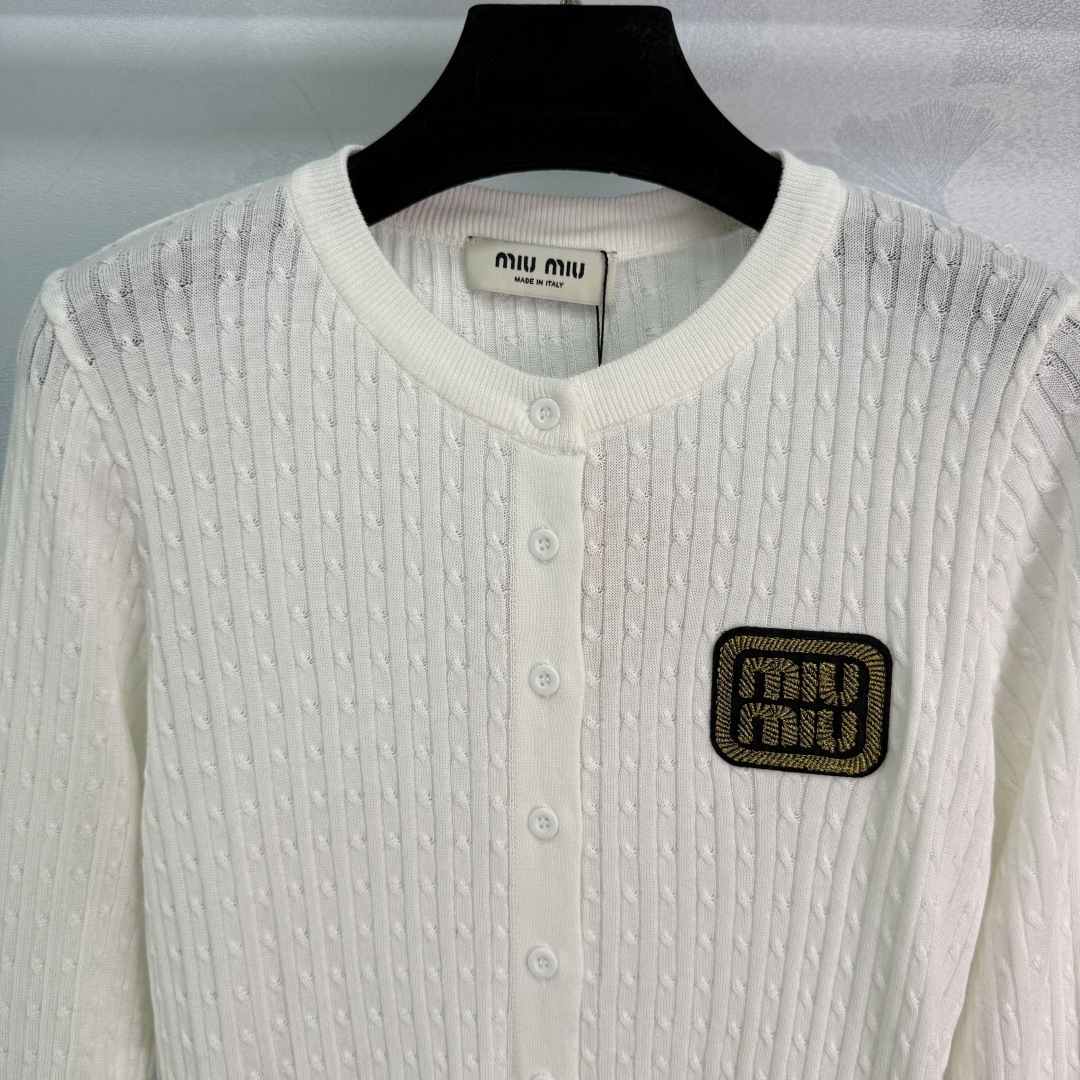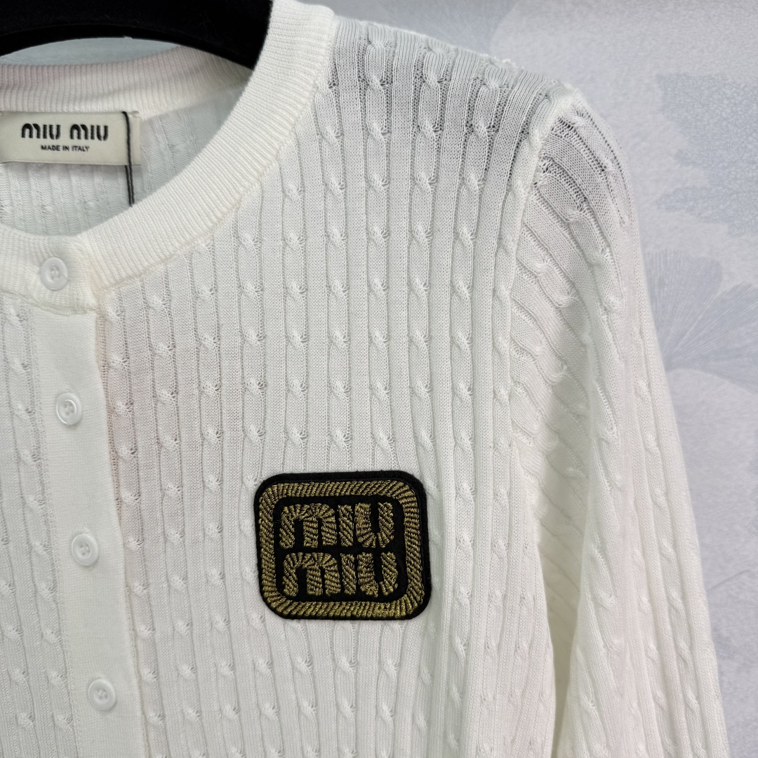 这款衣服是AAAAA 1:1 质量 (非常棒). 使用了和原版一模一样的材料. 商标部分也保持了和缪缪/Miu Miu一样. 图片拍摄是实物衣服拍摄, 您所收到的实物保证和我们图片一模一样.