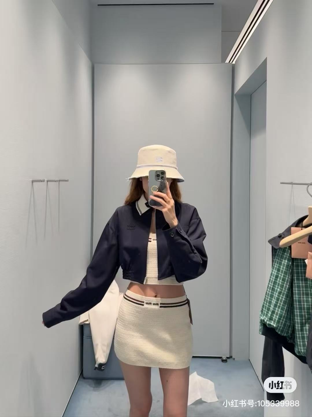 这款衣服是AAAAA 1:1 质量 (非常棒). 使用了和原版一模一样的材料. 商标部分也保持了和缪缪/Miu Miu一样. 图片拍摄是实物衣服拍摄, 您所收到的实物保证和我们图片一模一样.