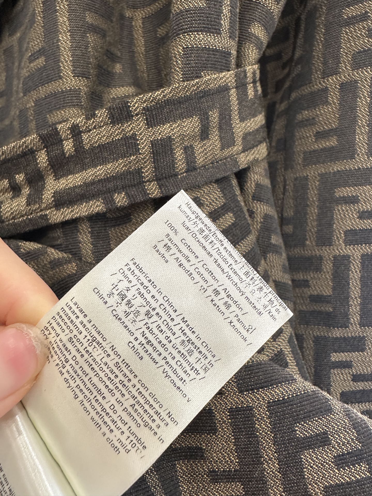 这款衣服是AAAAA 1:1 质量 (非常棒). 使用了和原版一模一样的材料. 商标部分也保持了和芬迪/Fendi一样. 图片拍摄是实物衣服拍摄, 您所收到的实物保证和我们图片一模一样.