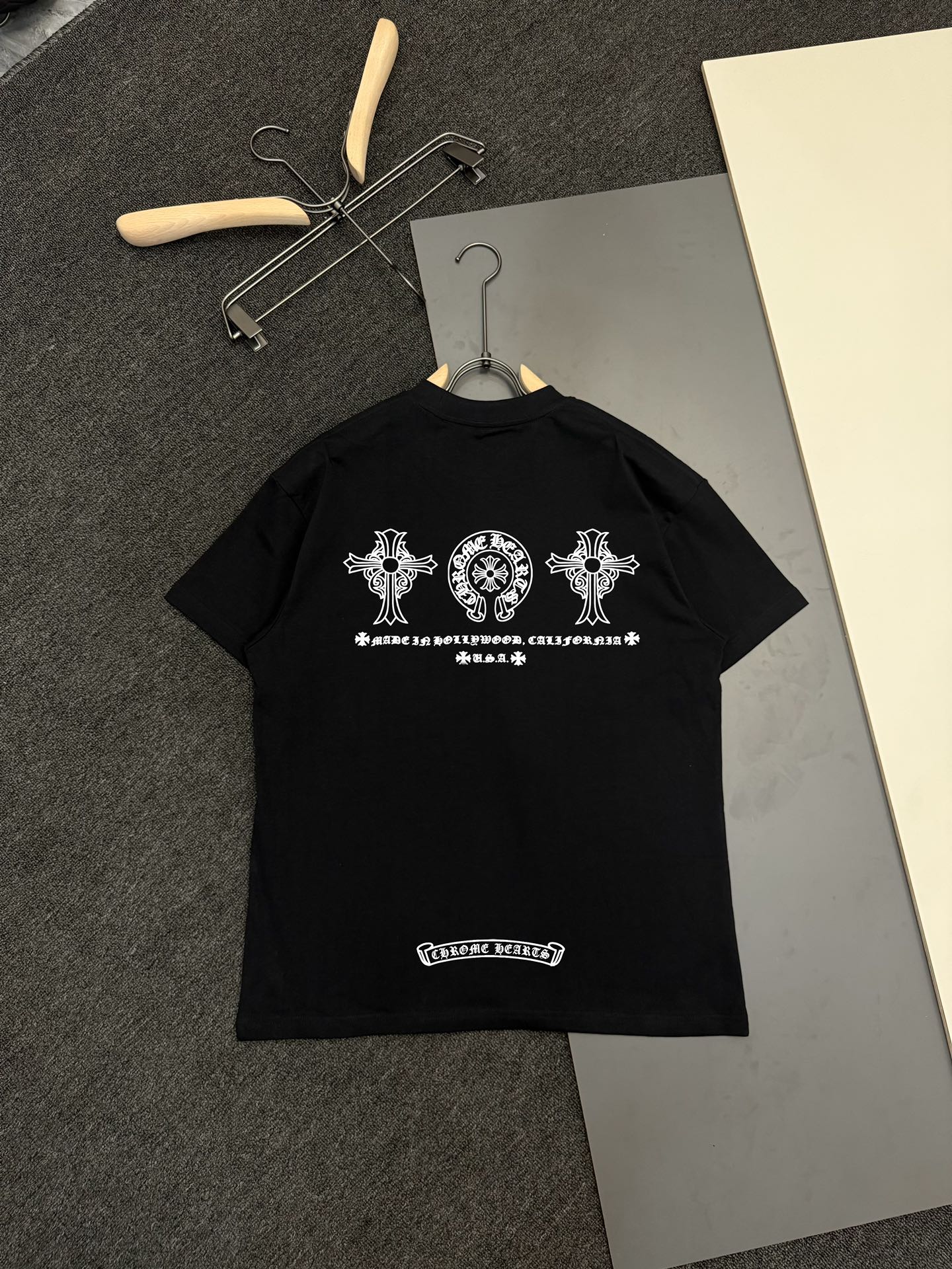 这款衣服是AAAAA 1:1 质量 (非常棒). 使用了和原版一模一样的材料. 商标部分也保持了和克罗心/Chrome Hearts一样. 图片拍摄是实物衣服拍摄, 您所收到的实物保证和我们图片一模一样.