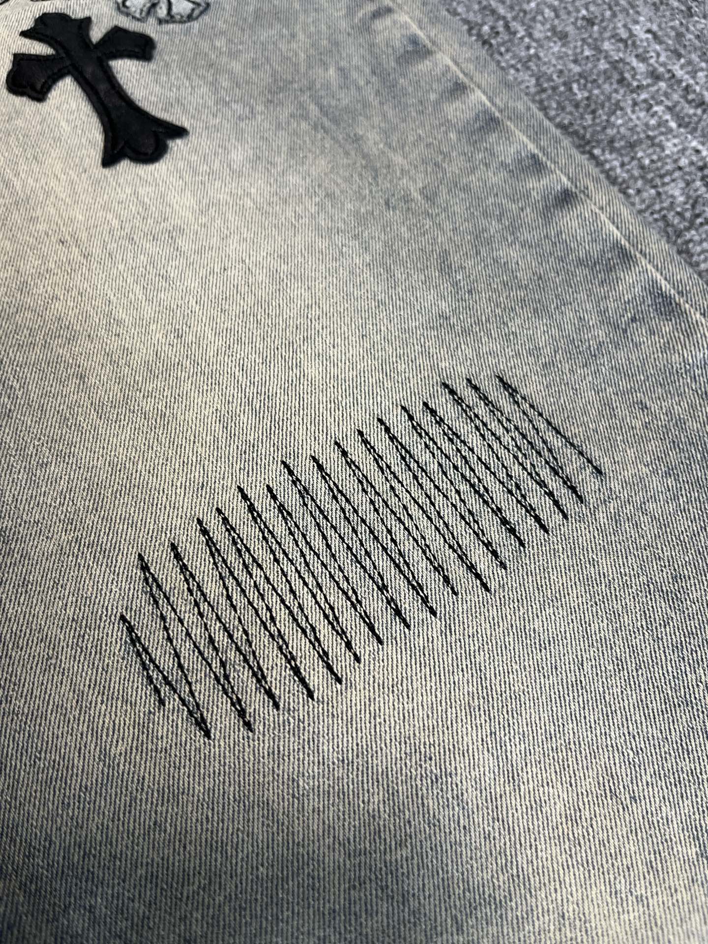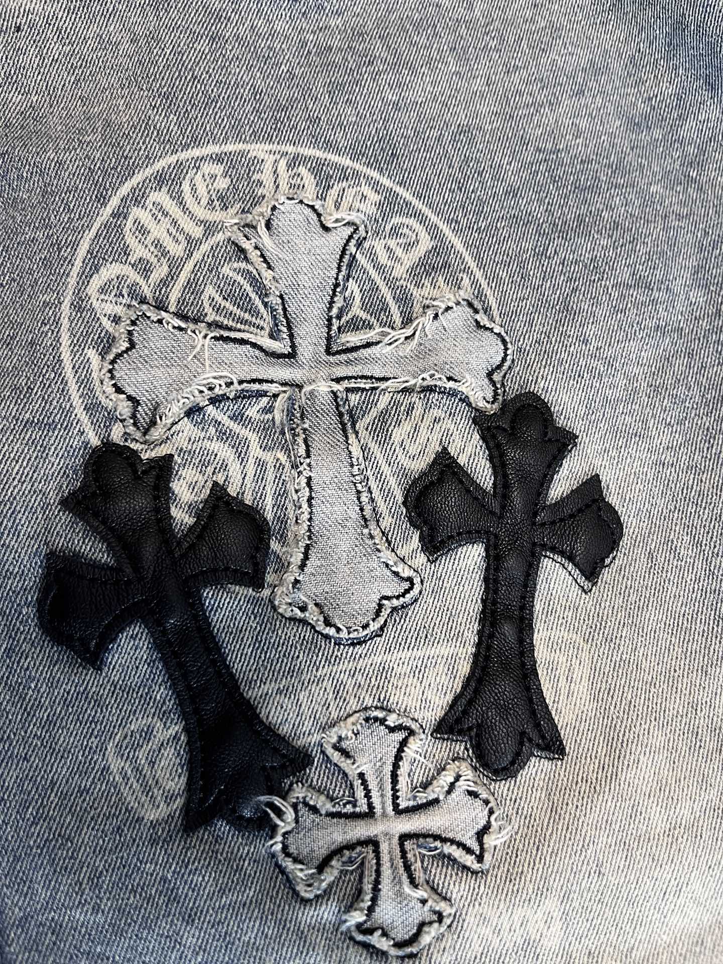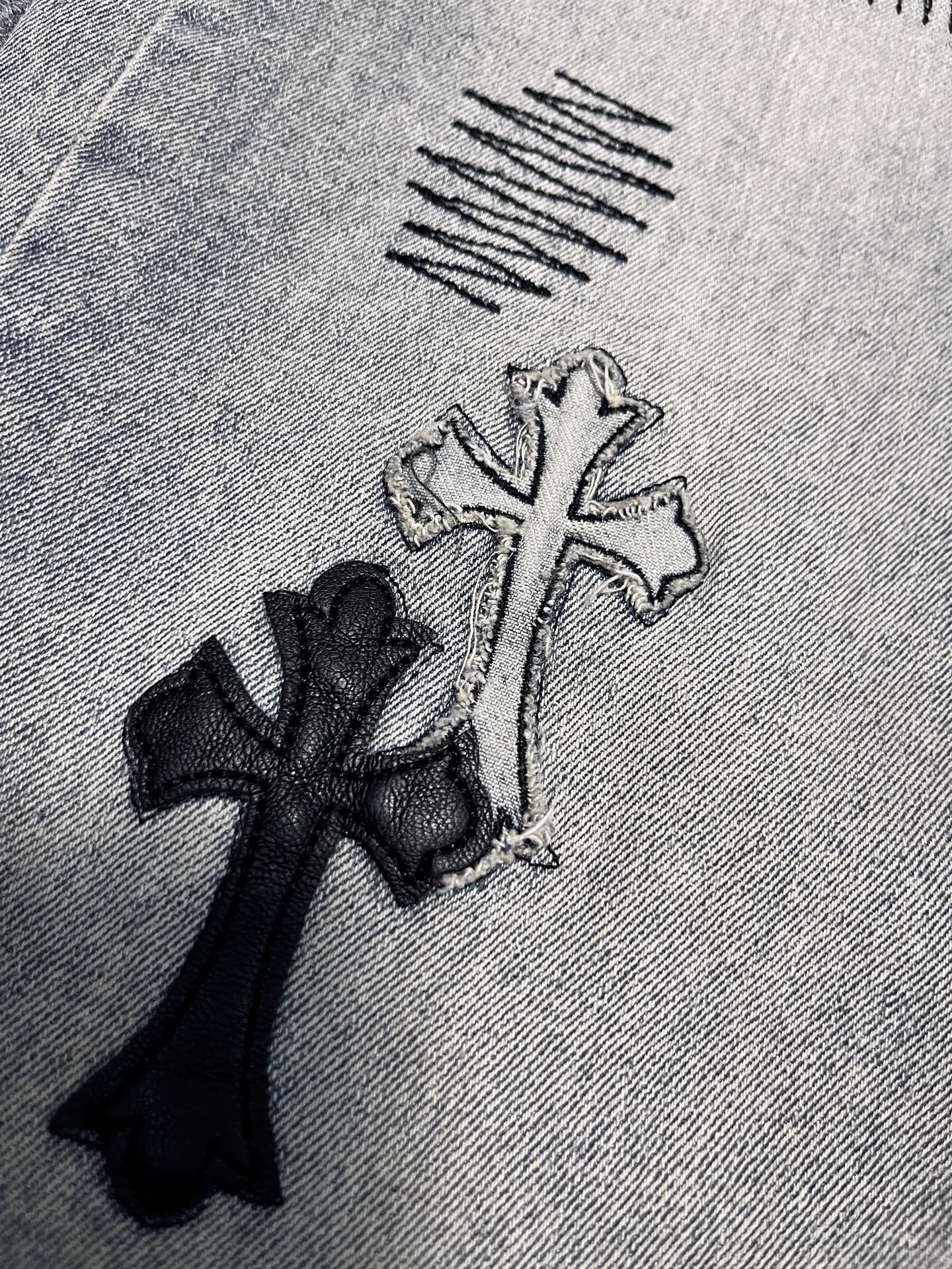 这款衣服是AAAAA 1:1 质量 (非常棒). 使用了和原版一模一样的材料. 商标部分也保持了和克罗心/Chrome Hearts一样. 图片拍摄是实物衣服拍摄, 您所收到的实物保证和我们图片一模一样.