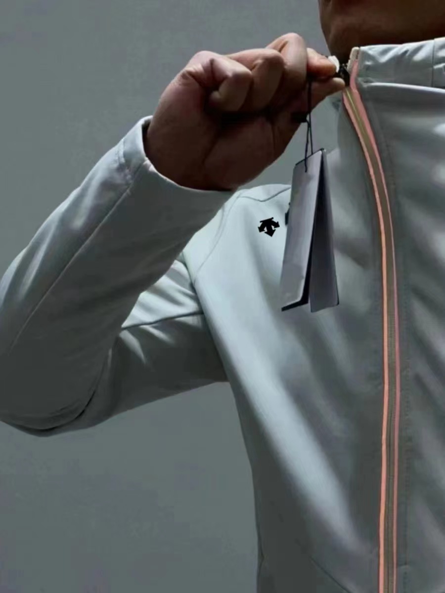 这款衣服是AAAAA 1:1 质量 (非常棒). 使用了和原版一模一样的材料. 商标部分也保持了和Descente一样. 图片拍摄是实物衣服拍摄, 您所收到的实物保证和我们图片一模一样.