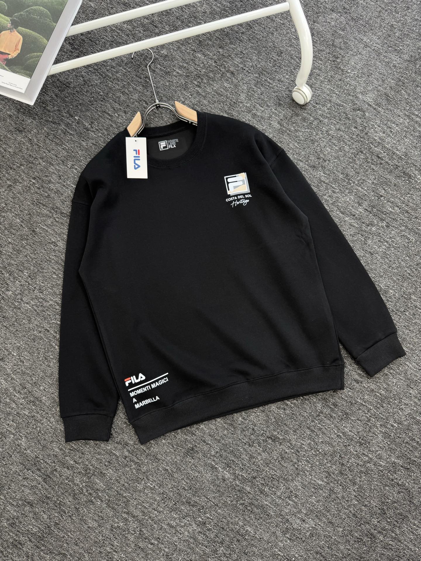这款衣服是AAAAA 1:1 质量 (非常棒). 使用了和原版一模一样的材料. 商标部分也保持了和Fila一样. 图片拍摄是实物衣服拍摄, 您所收到的实物保证和我们图片一模一样.
