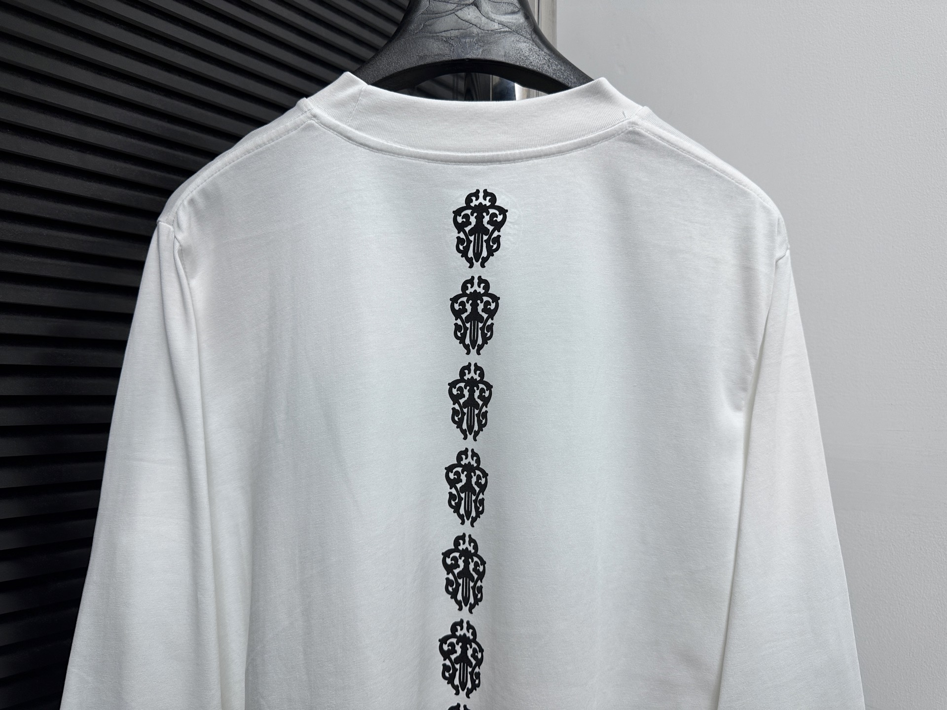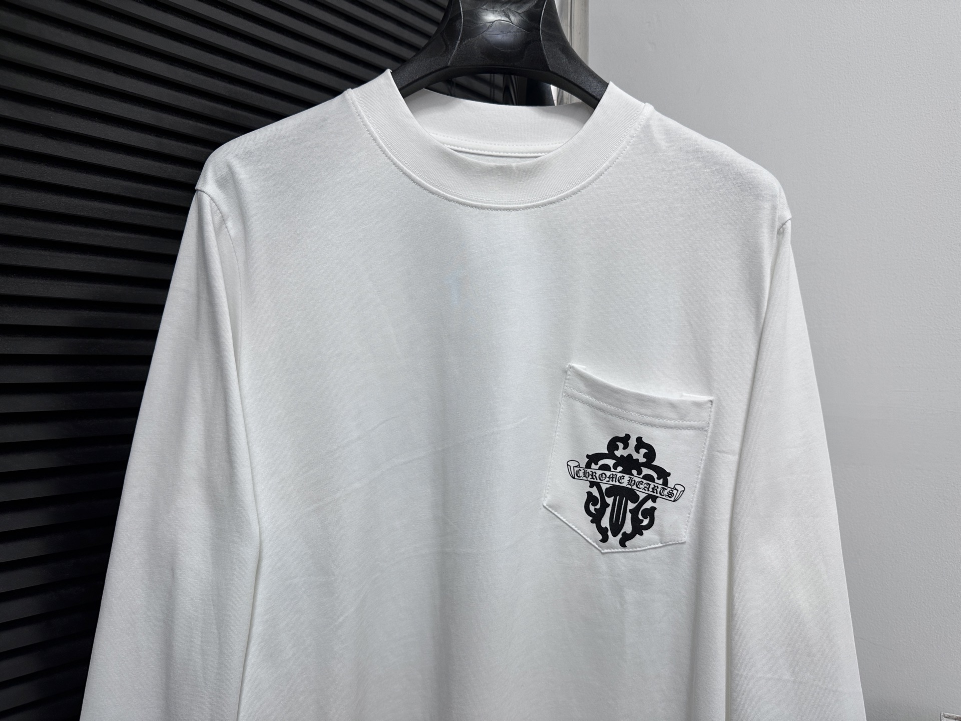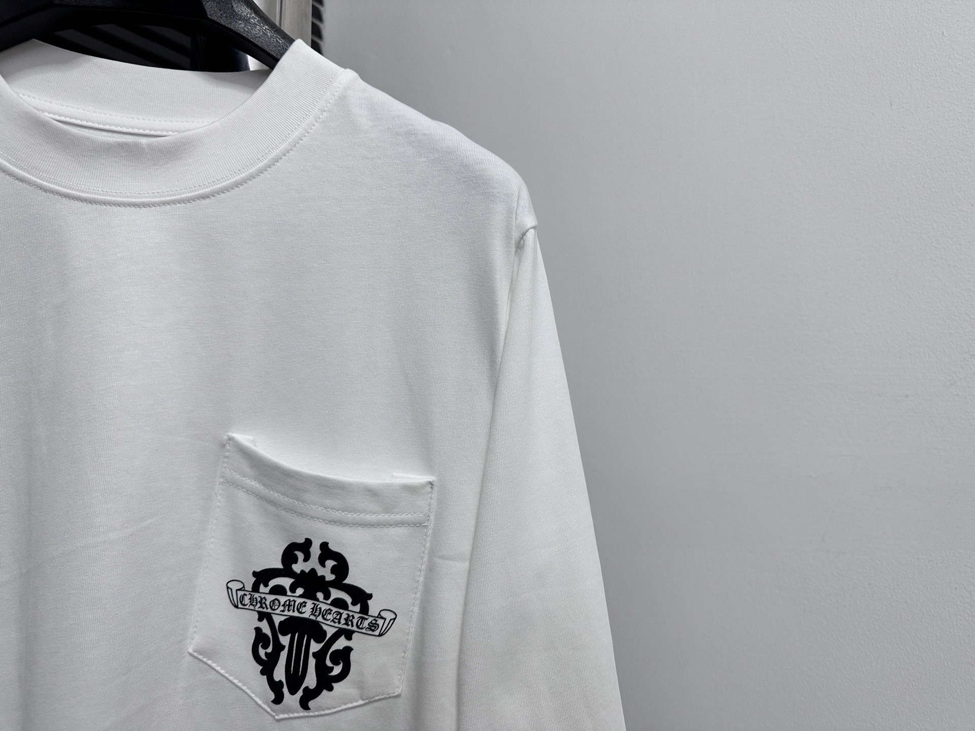 这款衣服是AAAAA 1:1 质量 (非常棒). 使用了和原版一模一样的材料. 商标部分也保持了和克罗心/Chrome Hearts一样. 图片拍摄是实物衣服拍摄, 您所收到的实物保证和我们图片一模一样.