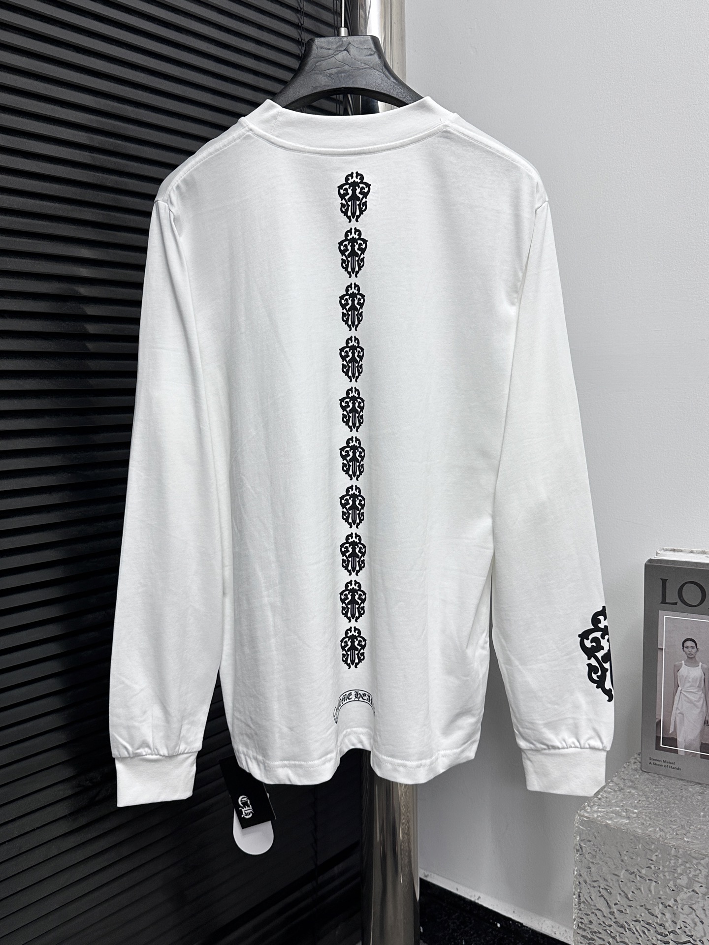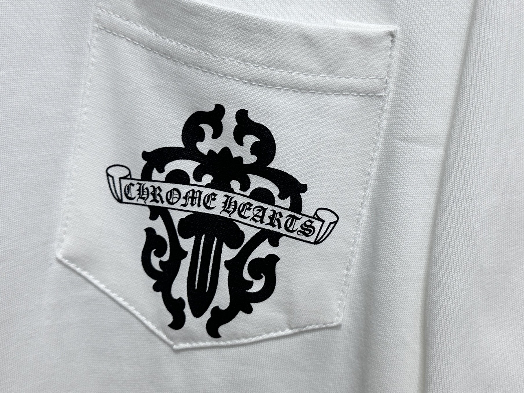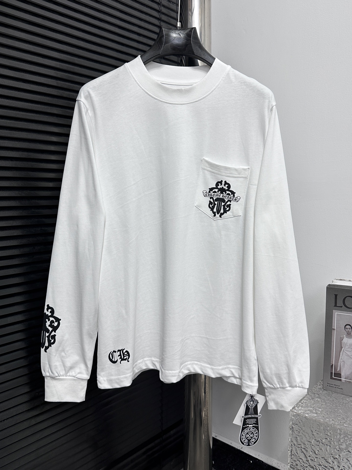 这款衣服是AAAAA 1:1 质量 (非常棒). 使用了和原版一模一样的材料. 商标部分也保持了和克罗心/Chrome Hearts一样. 图片拍摄是实物衣服拍摄, 您所收到的实物保证和我们图片一模一样.
