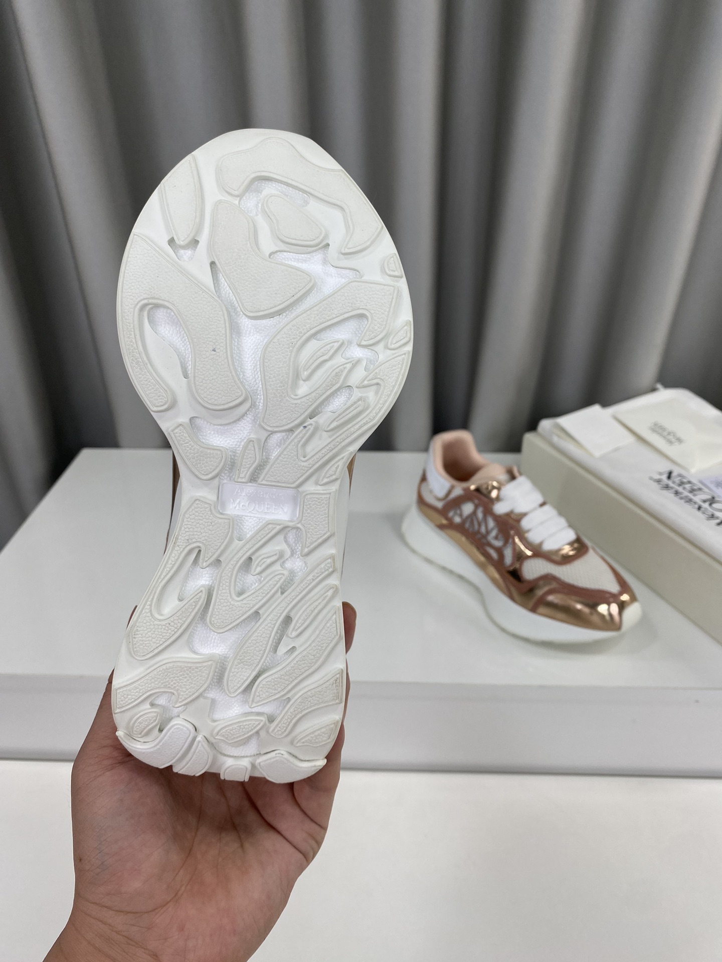 这款鞋子是AAAAA 1:1 质量 (非常棒). 使用了和原版一模一样的材料. 商标部分也保持了和亚历山大·麦昆/McQueen一样. 图片拍摄是实物鞋子拍摄, 您所收到的实物保证和我们图片一模一样.