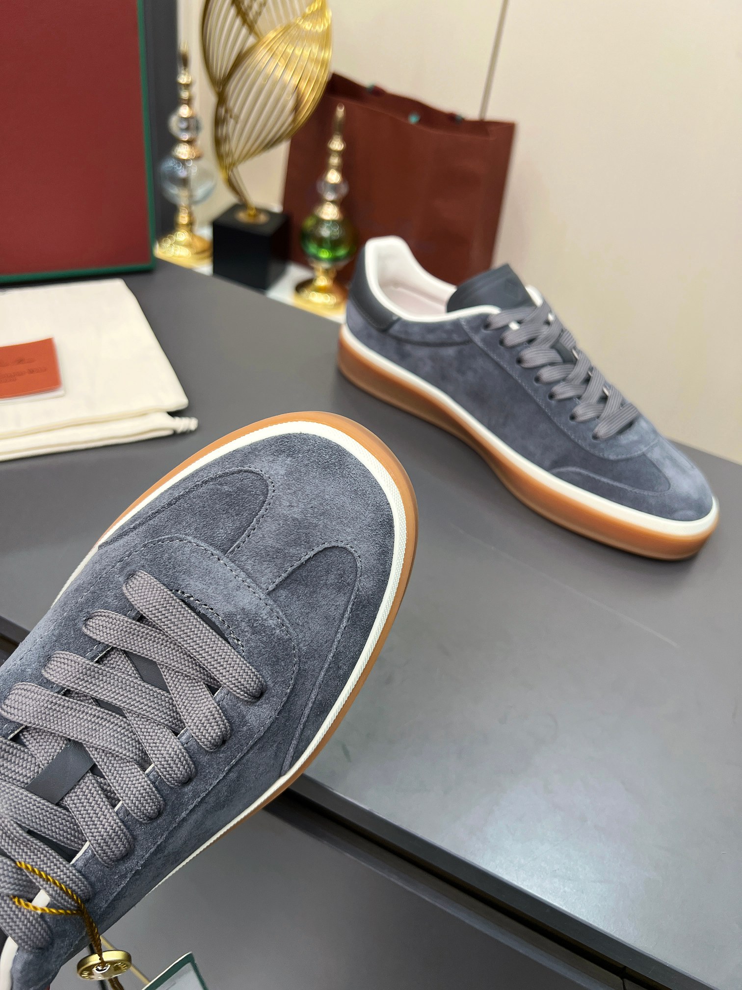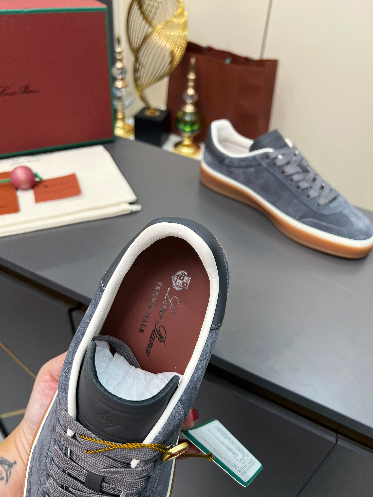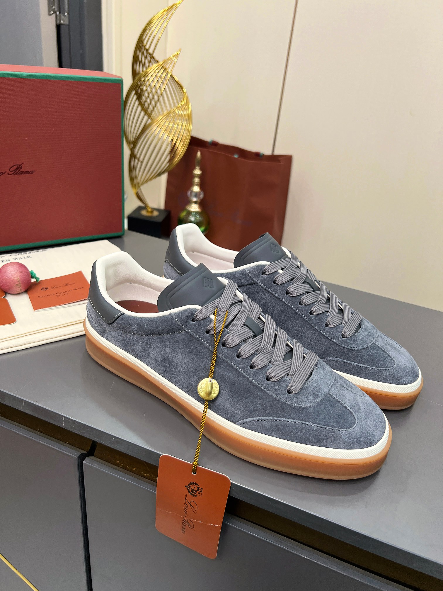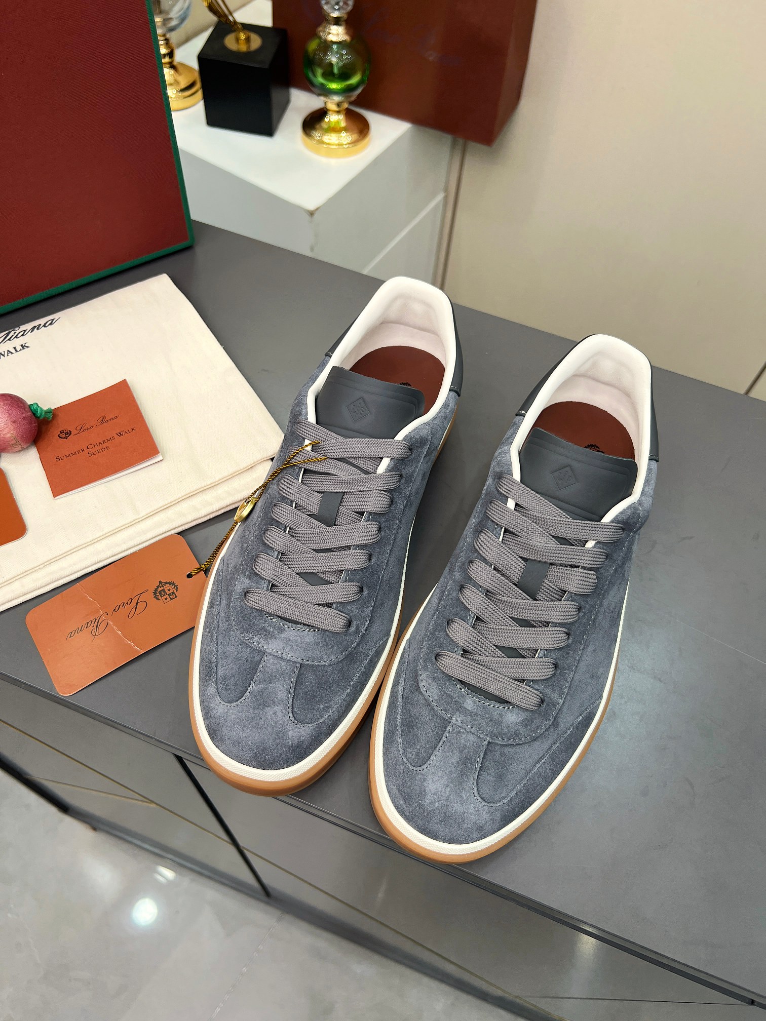 这款鞋子是AAAAA 1:1 质量 (非常棒). 使用了和原版一模一样的材料. 商标部分也保持了和洛罗皮亚纳/Loro Piana一样. 图片拍摄是实物鞋子拍摄, 您所收到的实物保证和我们图片一模一样.