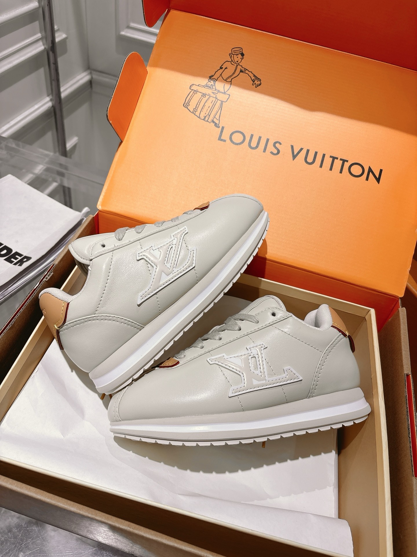 这款鞋子是AAAAA 1:1 质量 (非常棒). 使用了和原版一模一样的材料. 商标部分也保持了和路易威登/Louis Vuitton一样. 图片拍摄是实物鞋子拍摄, 您所收到的实物保证和我们图片一模一样.