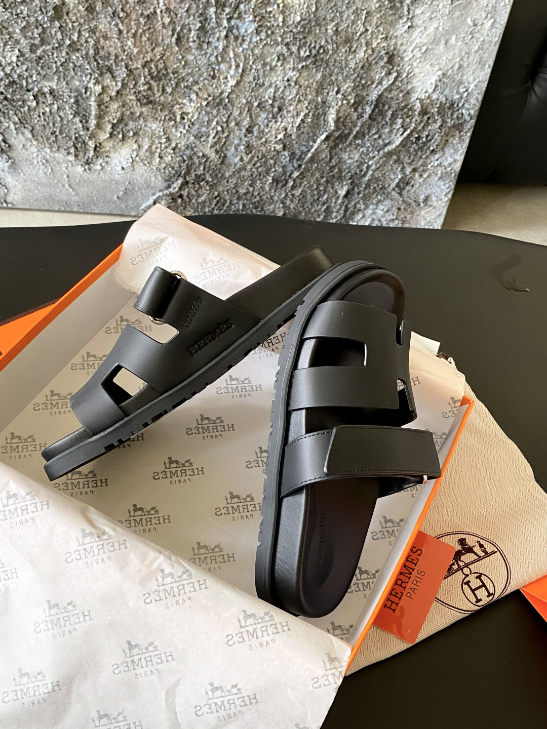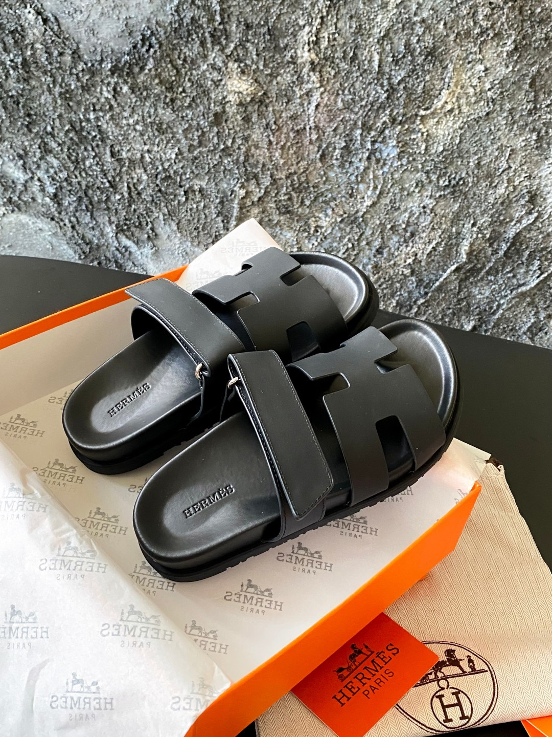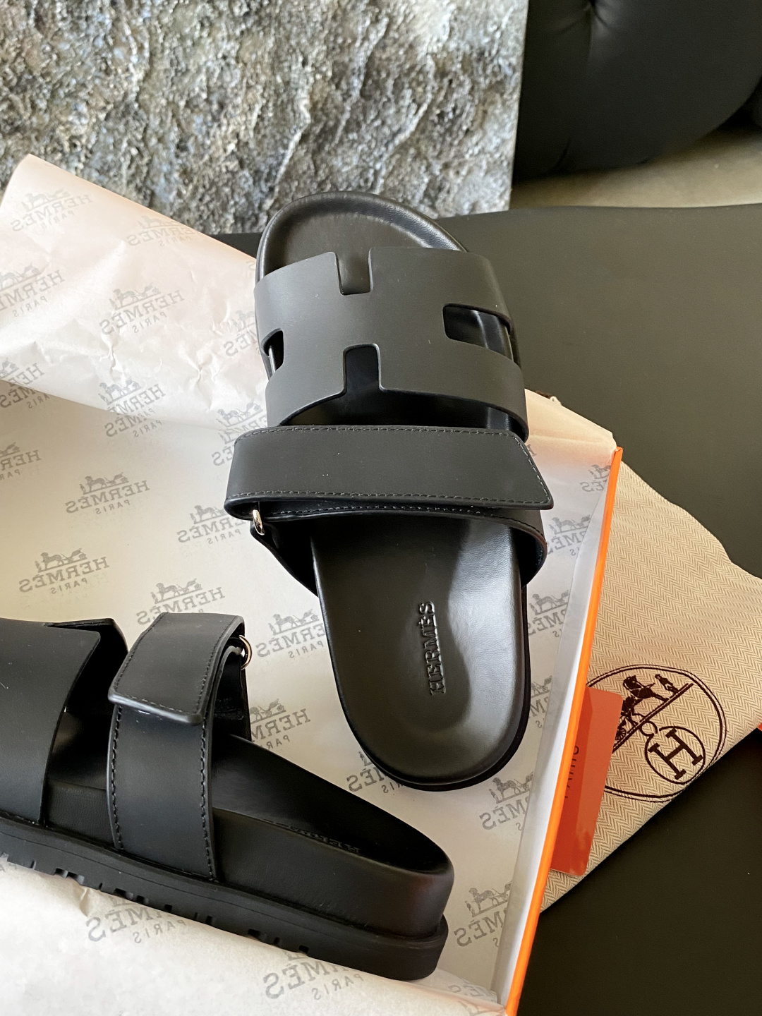 这款鞋子是AAAAA 1:1 质量 (非常棒). 使用了和原版一模一样的材料. 商标部分也保持了和爱马仕/Hermes一样. 图片拍摄是实物鞋子拍摄, 您所收到的实物保证和我们图片一模一样.