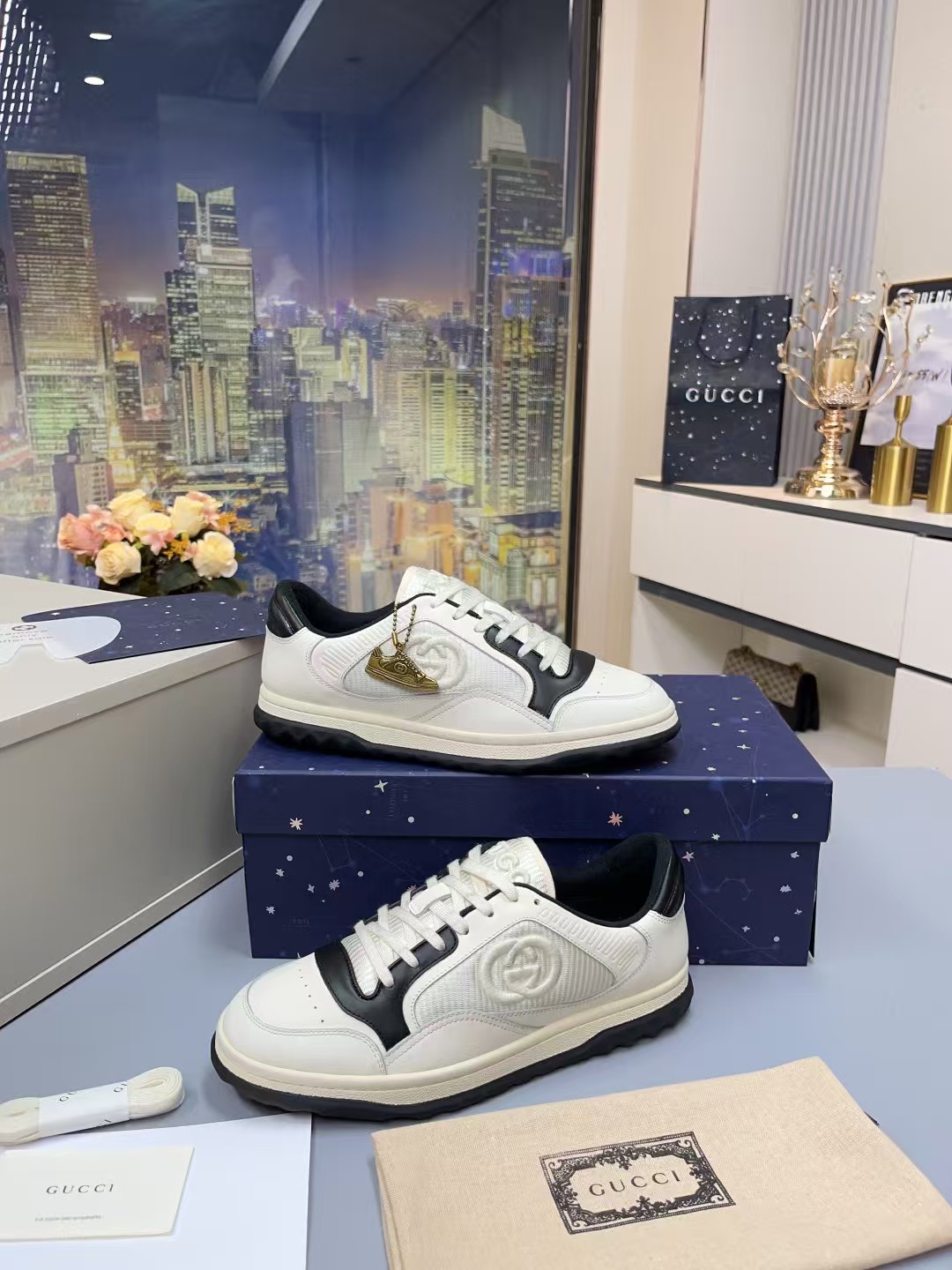 这款鞋子是AAAAA 1:1 质量 (非常棒). 使用了和原版一模一样的材料. 商标部分也保持了和古奇/Gucci一样. 图片拍摄是实物鞋子拍摄, 您所收到的实物保证和我们图片一模一样.