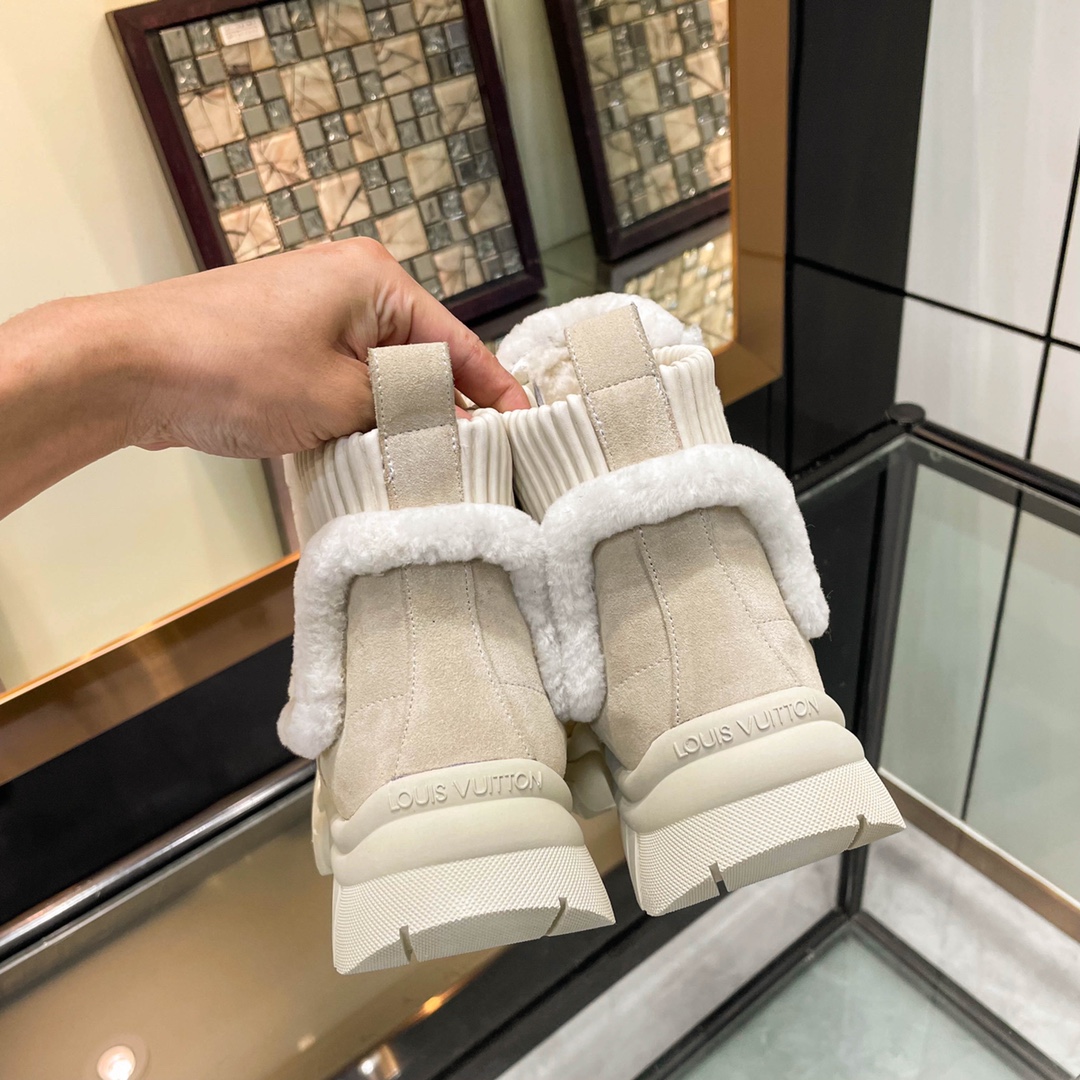 这款鞋子是AAAAA 1:1 质量 (非常棒). 使用了和原版一模一样的材料. 商标部分也保持了和路易威登/Louis Vuitton一样. 图片拍摄是实物鞋子拍摄, 您所收到的实物保证和我们图片一模一样.