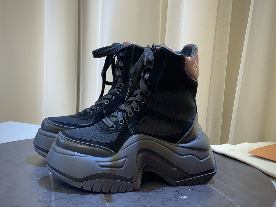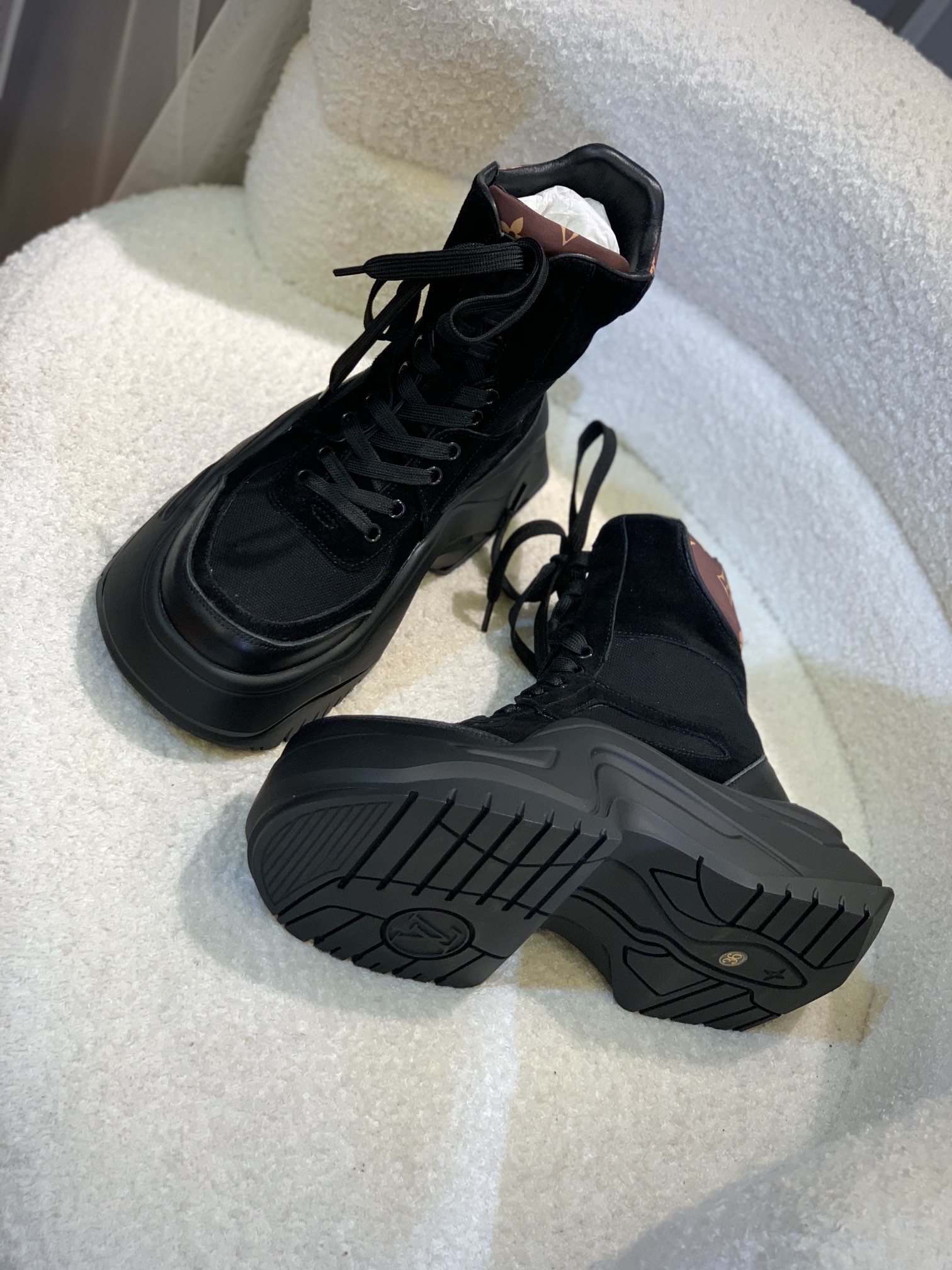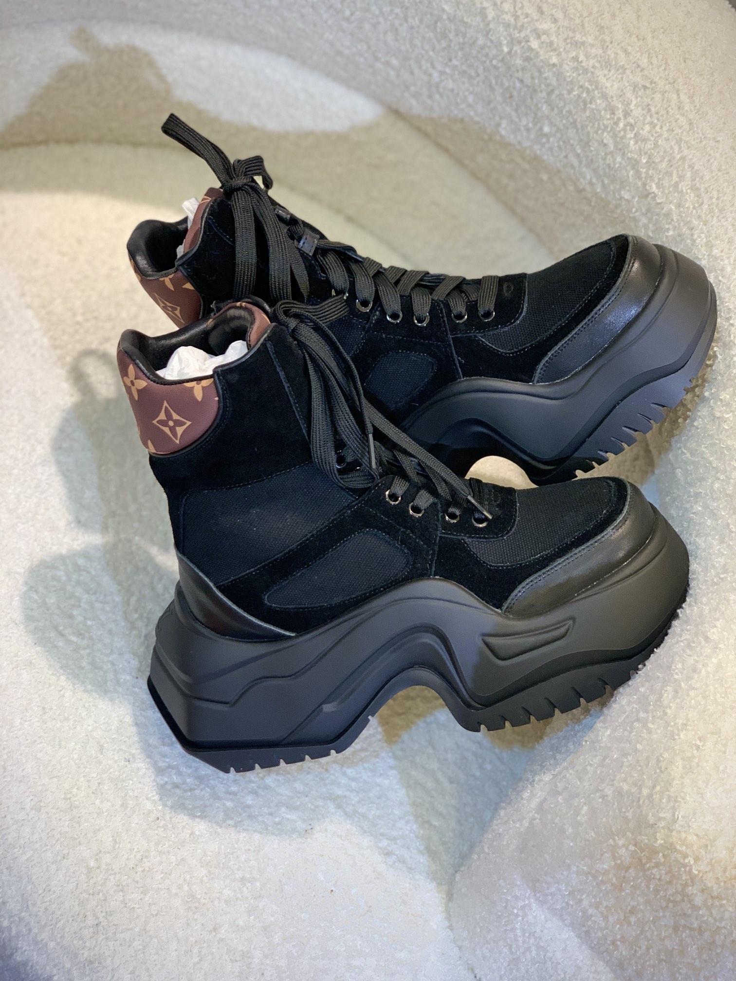 这款鞋子是AAAAA 1:1 质量 (非常棒). 使用了和原版一模一样的材料. 商标部分也保持了和路易威登/Louis Vuitton一样. 图片拍摄是实物鞋子拍摄, 您所收到的实物保证和我们图片一模一样.