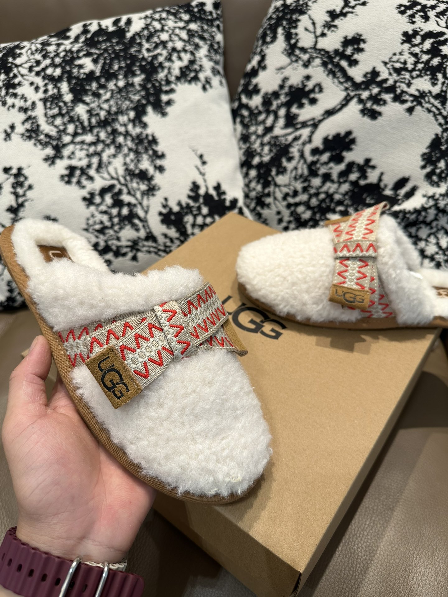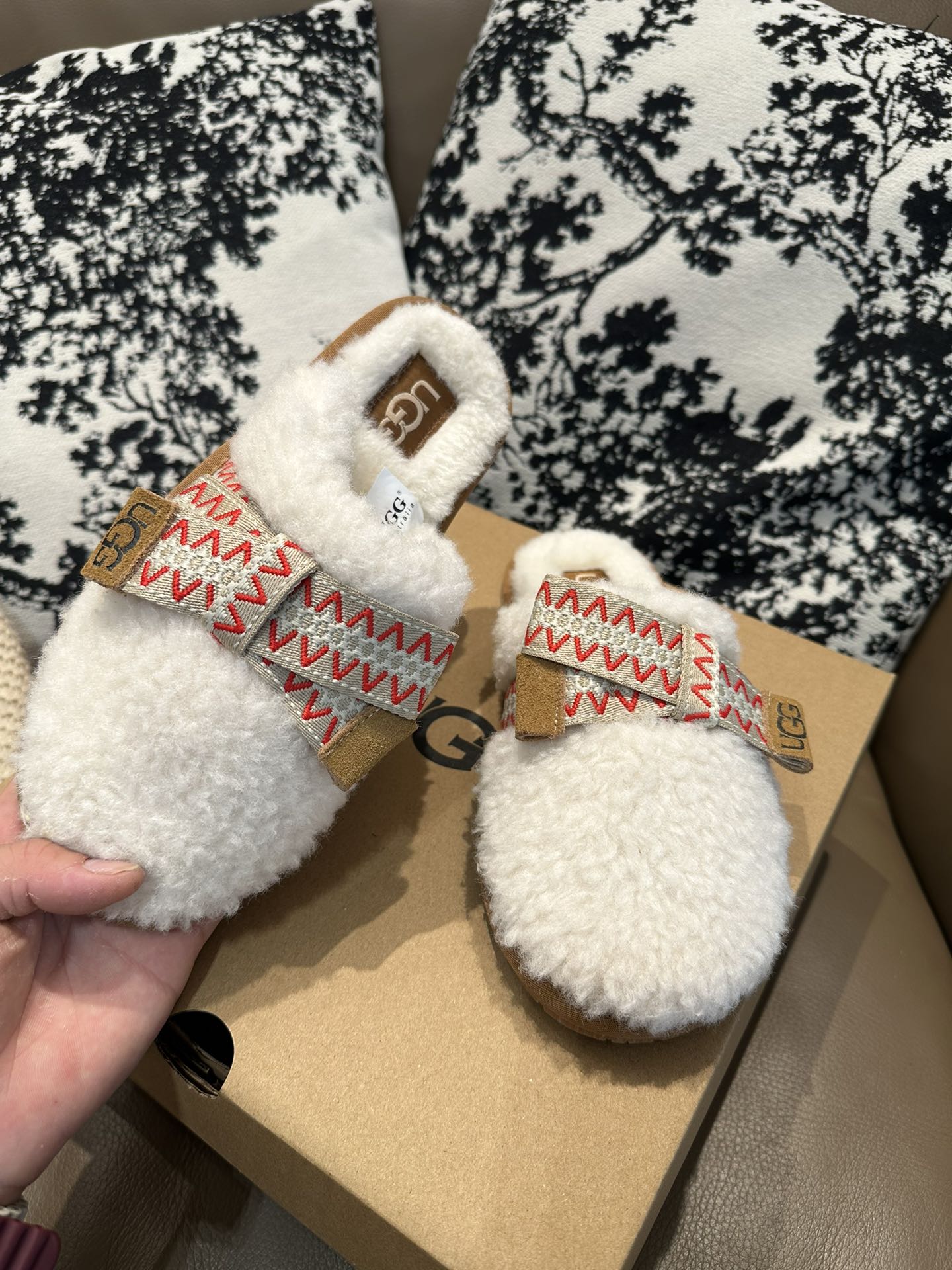 这款鞋子是AAAAA 1:1 质量 (非常棒). 使用了和原版一模一样的材料. 商标部分也保持了和UGG雪地靴一样. 图片拍摄是实物鞋子拍摄, 您所收到的实物保证和我们图片一模一样.