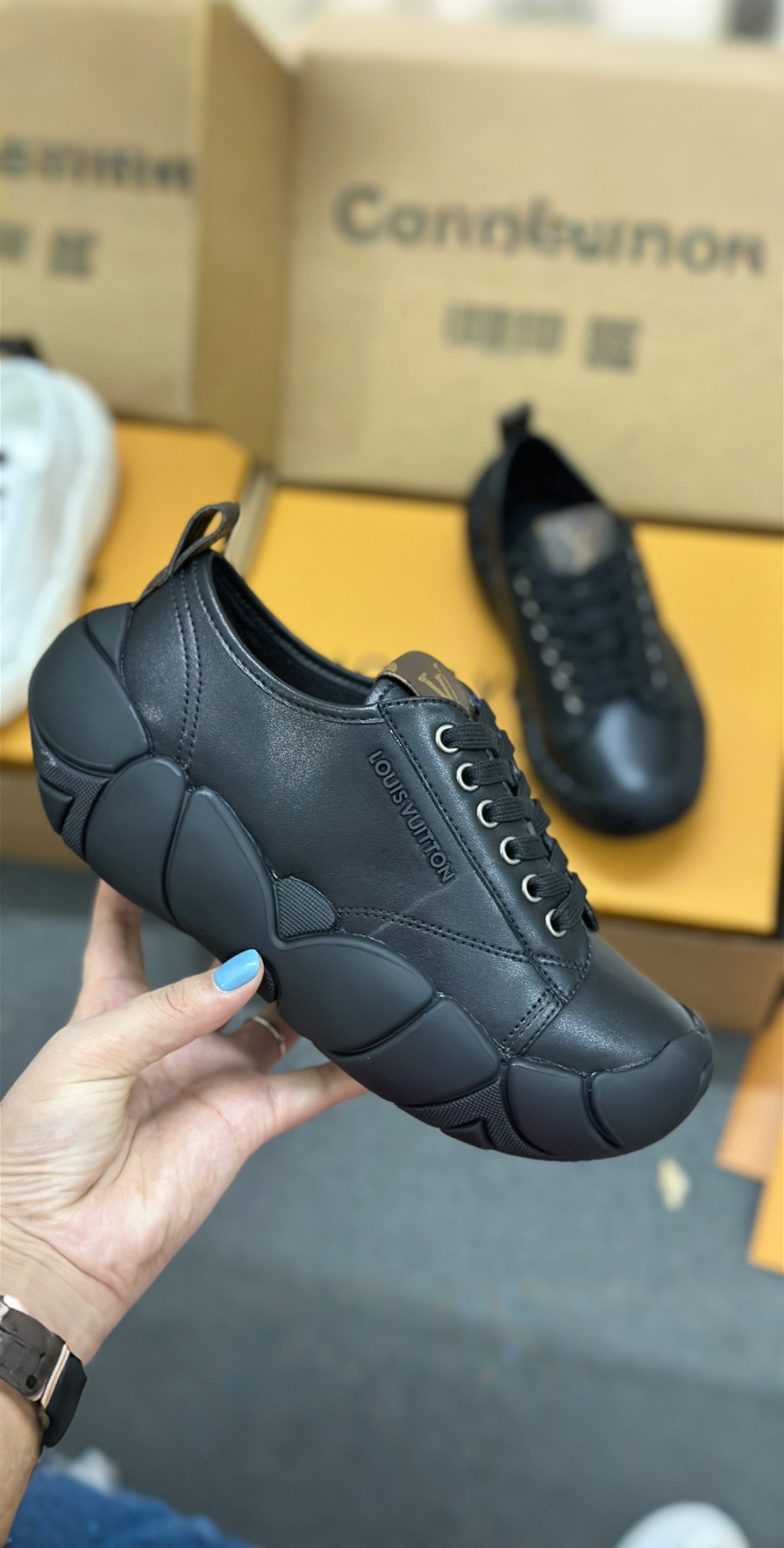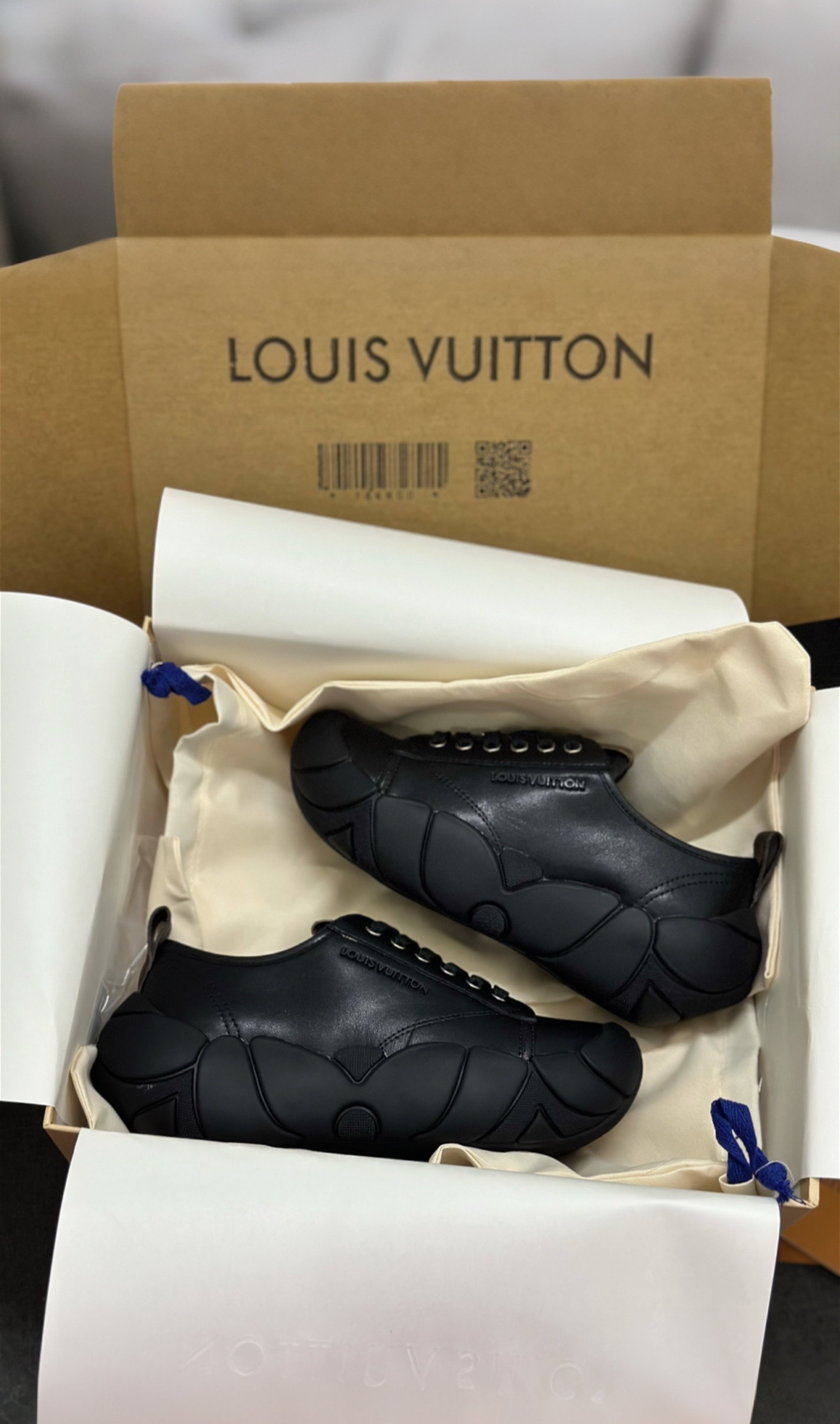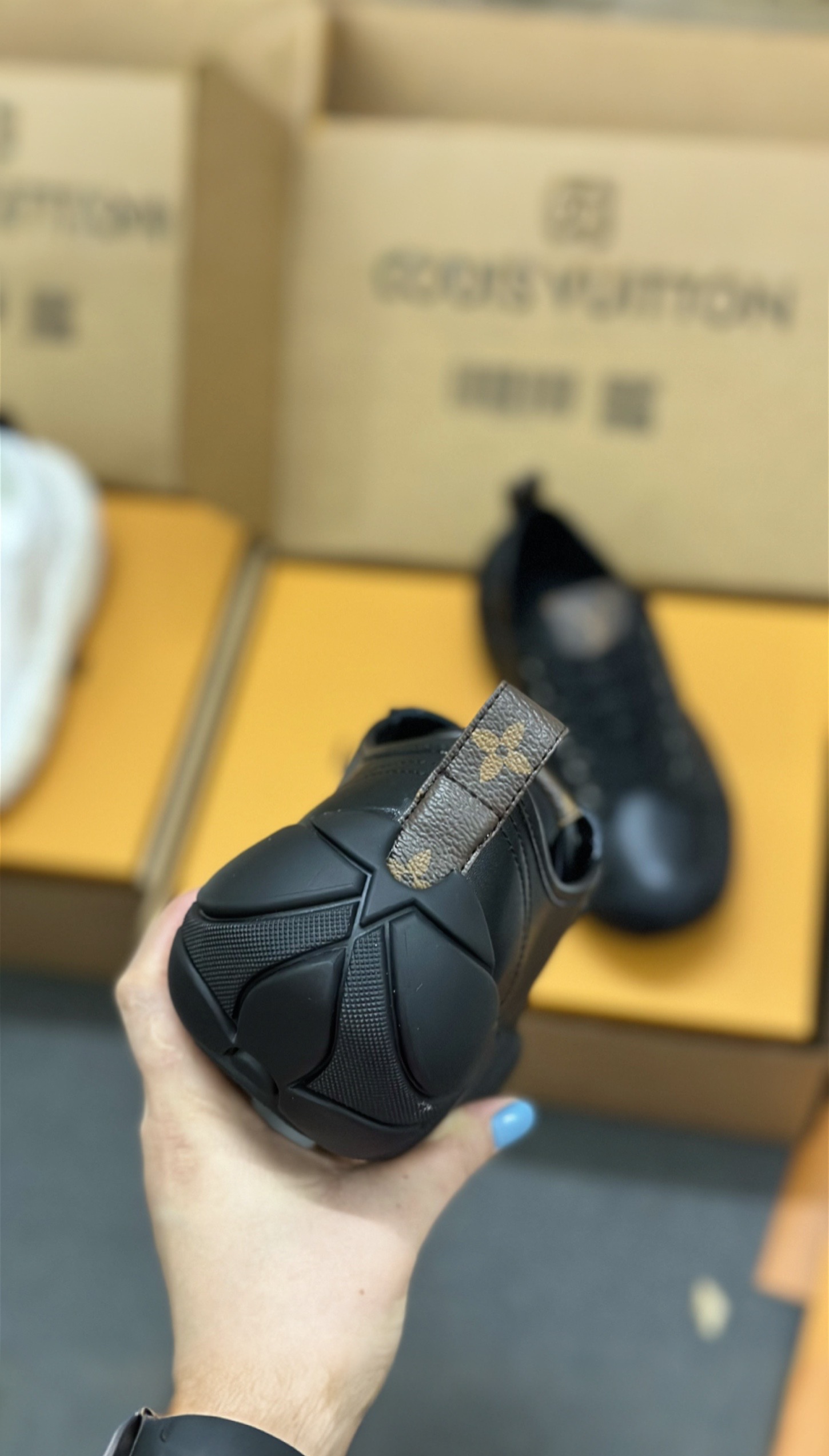 这款鞋子是AAAAA 1:1 质量 (非常棒). 使用了和原版一模一样的材料. 商标部分也保持了和路易威登/Louis Vuitton一样. 图片拍摄是实物鞋子拍摄, 您所收到的实物保证和我们图片一模一样.