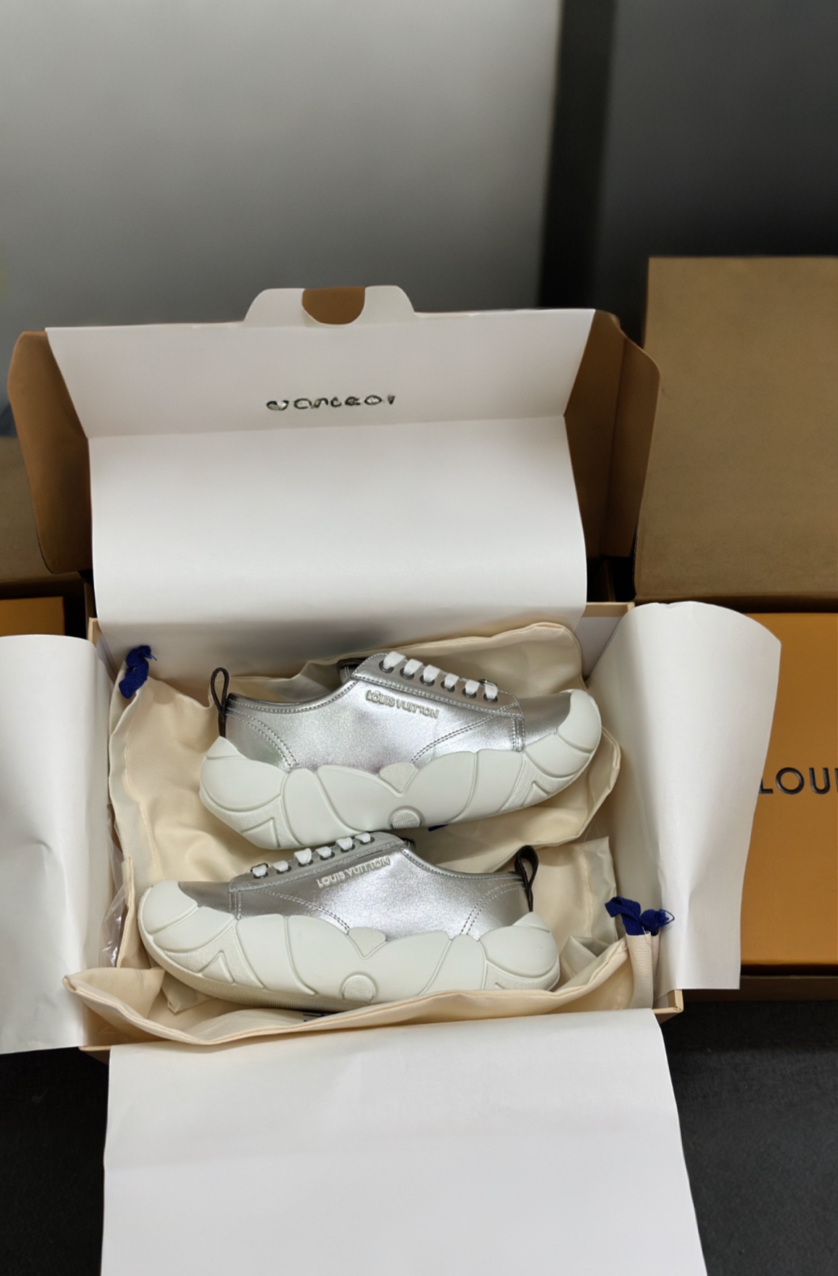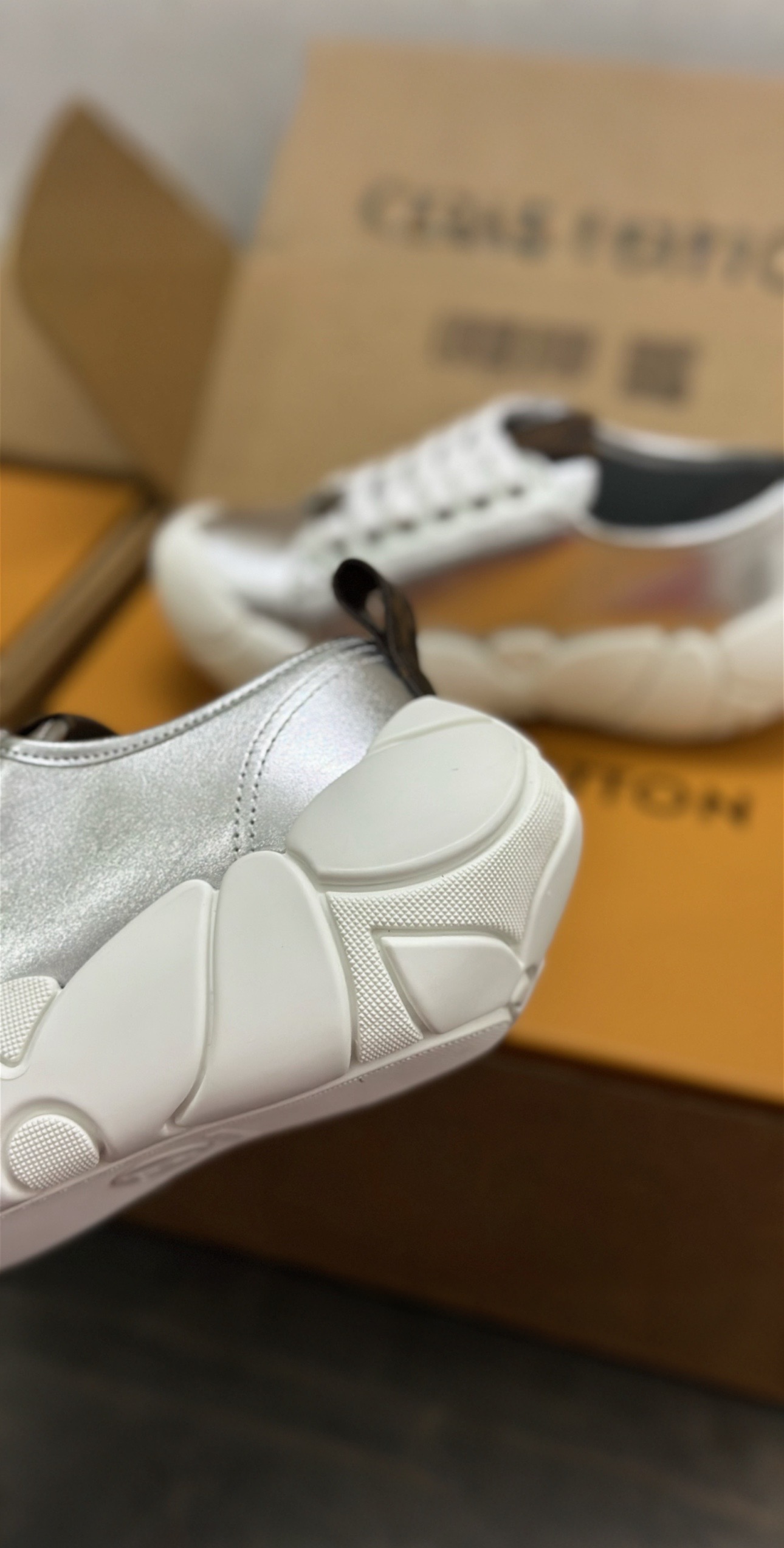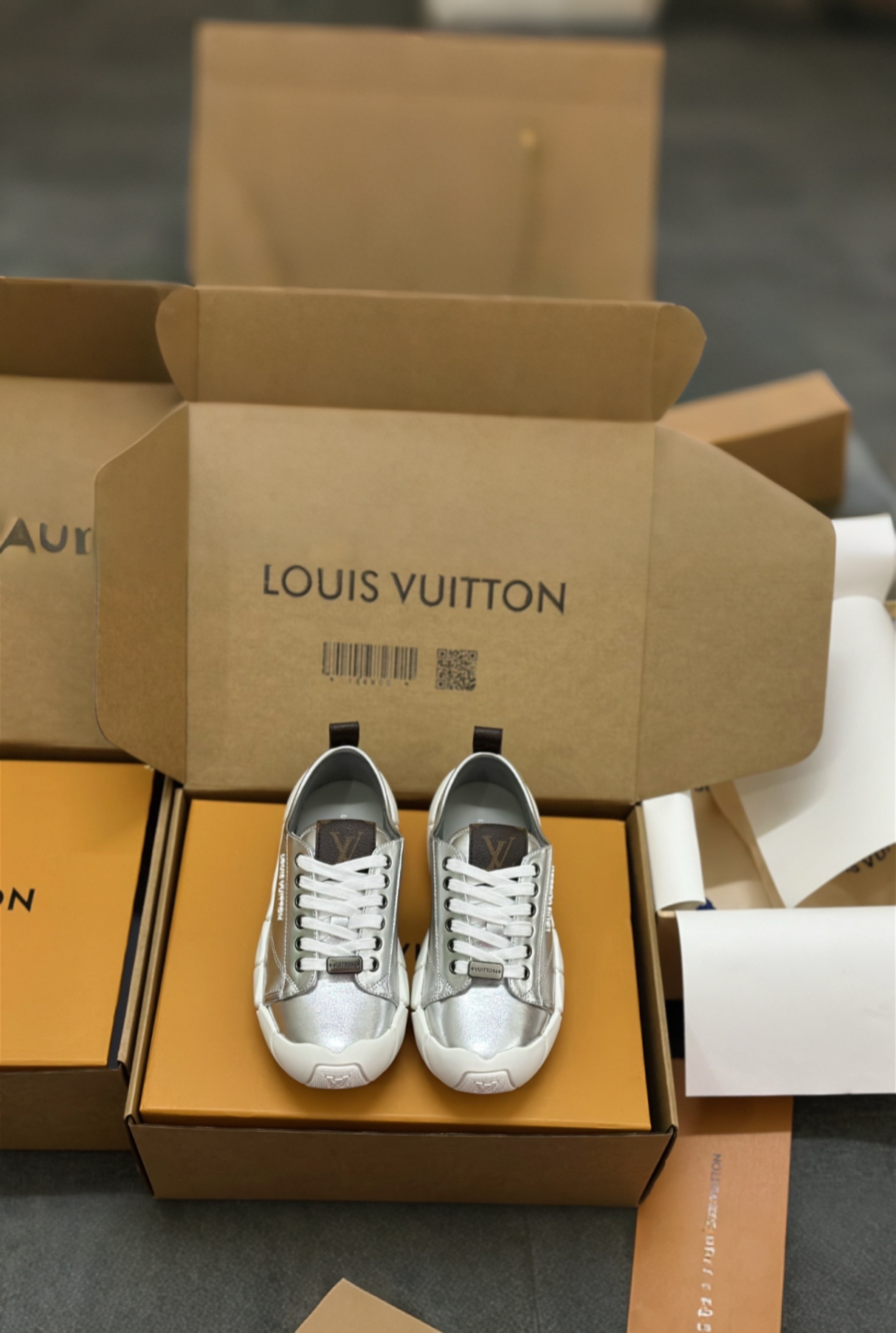 这款鞋子是AAAAA 1:1 质量 (非常棒). 使用了和原版一模一样的材料. 商标部分也保持了和路易威登/Louis Vuitton一样. 图片拍摄是实物鞋子拍摄, 您所收到的实物保证和我们图片一模一样.