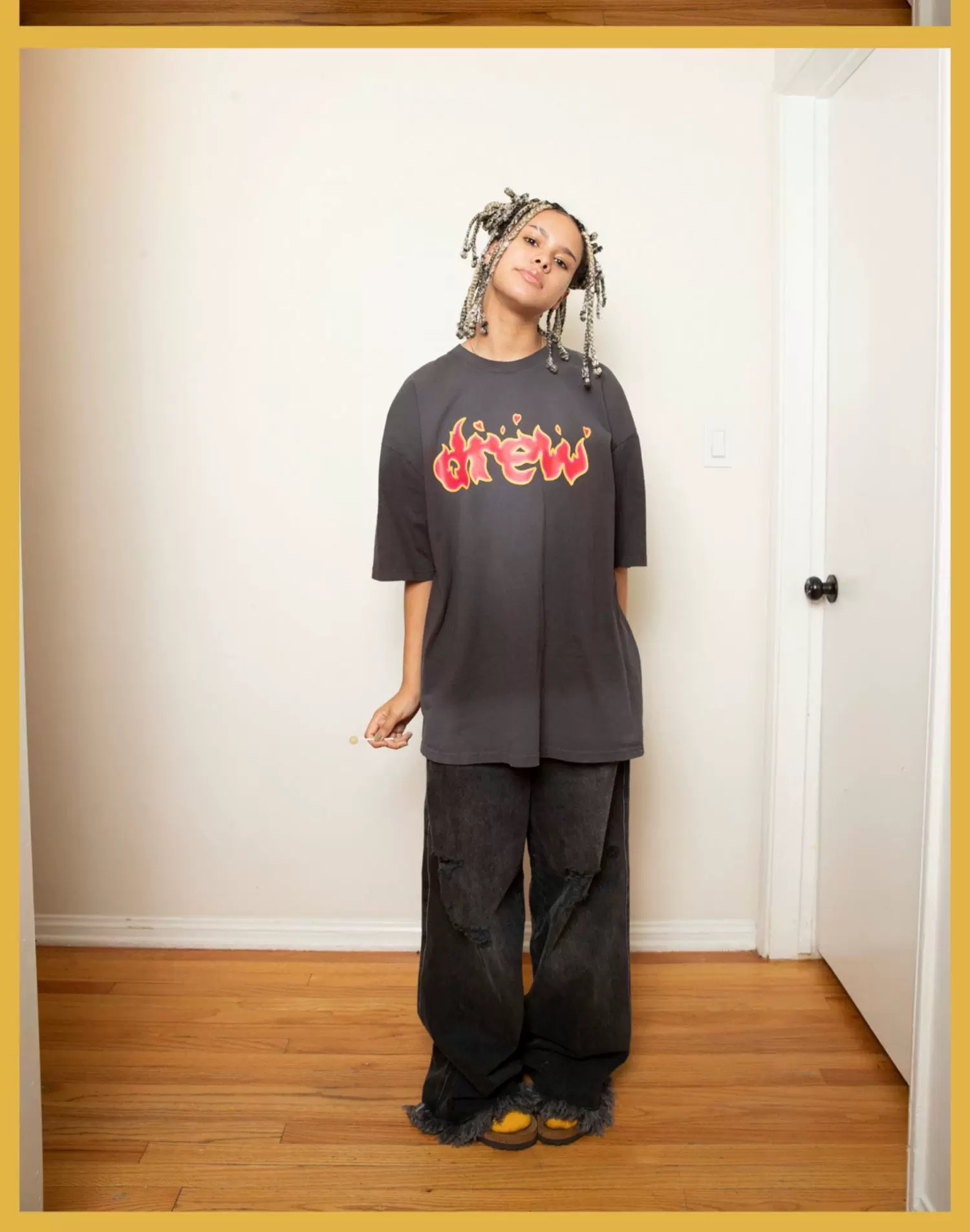 这款衣服是AAAAA 1:1 质量 (非常棒). 使用了和原版一模一样的材料. 商标部分也保持了和Drew House一样. 图片拍摄是实物衣服拍摄, 您所收到的实物保证和我们图片一模一样.